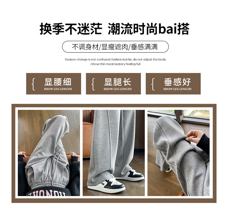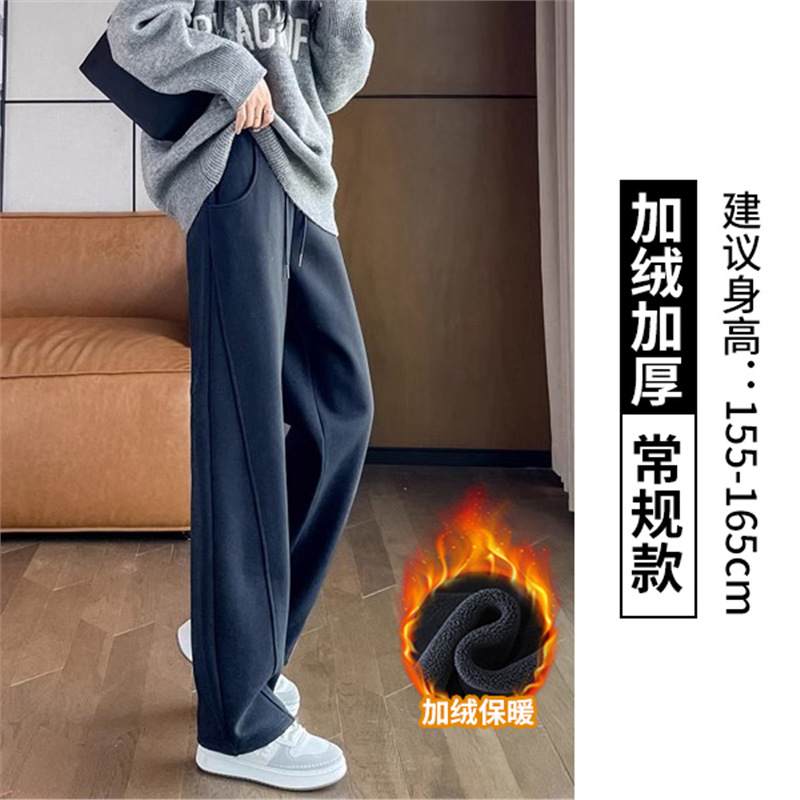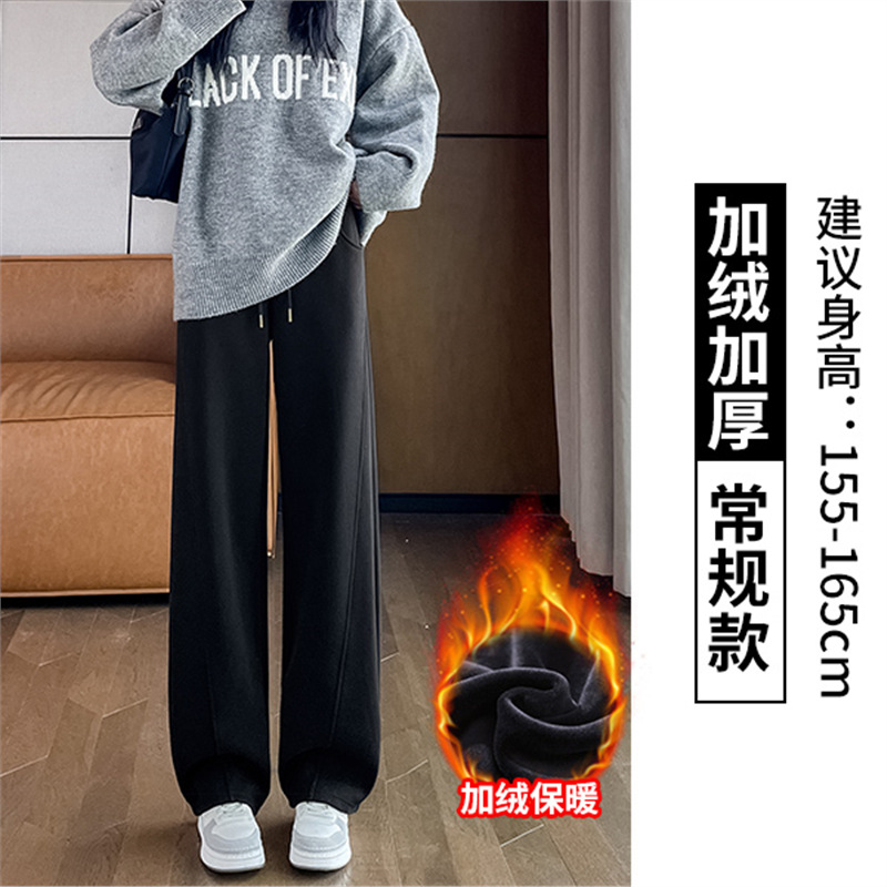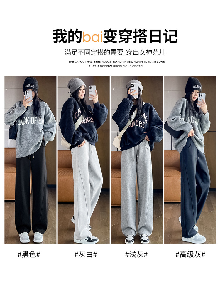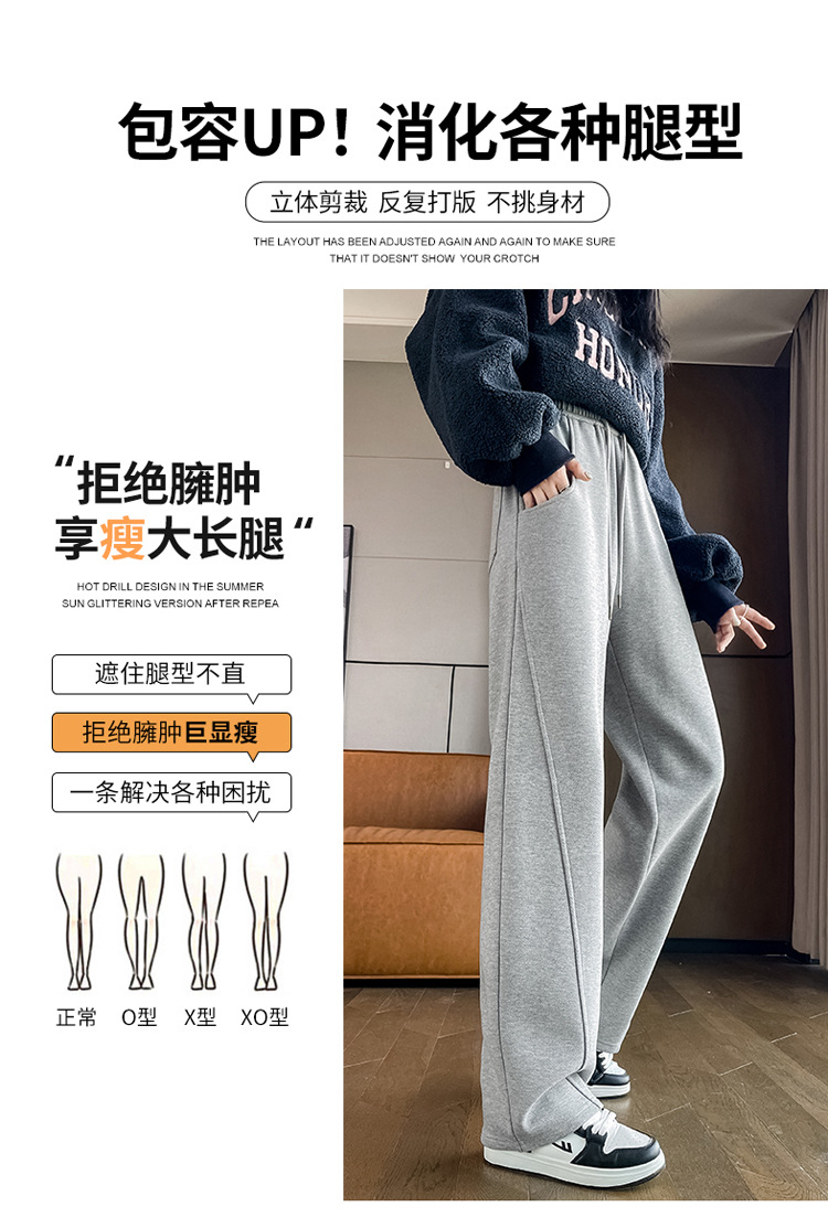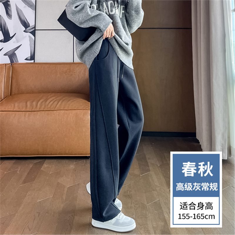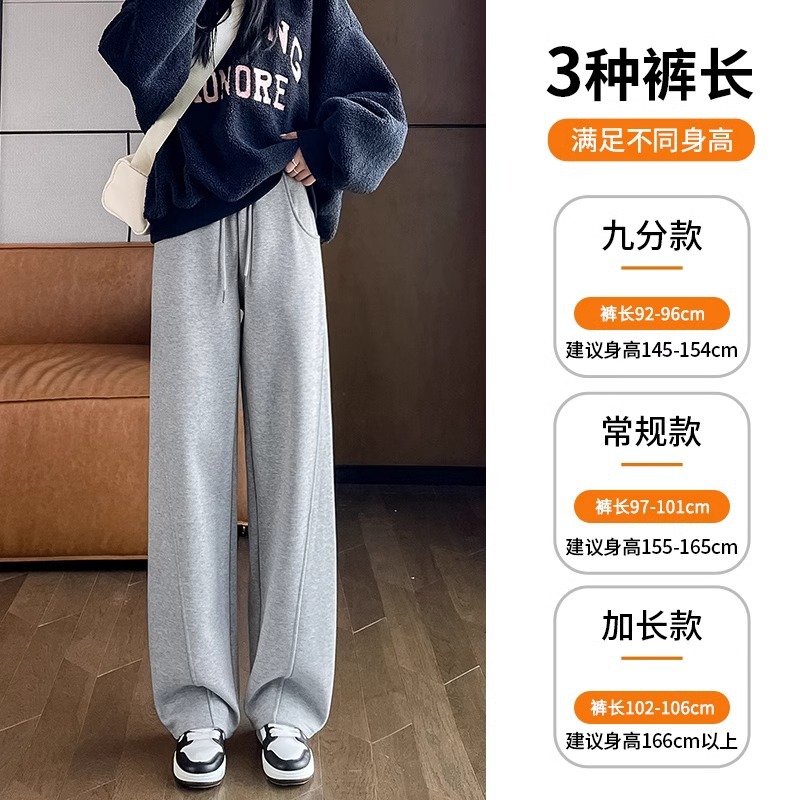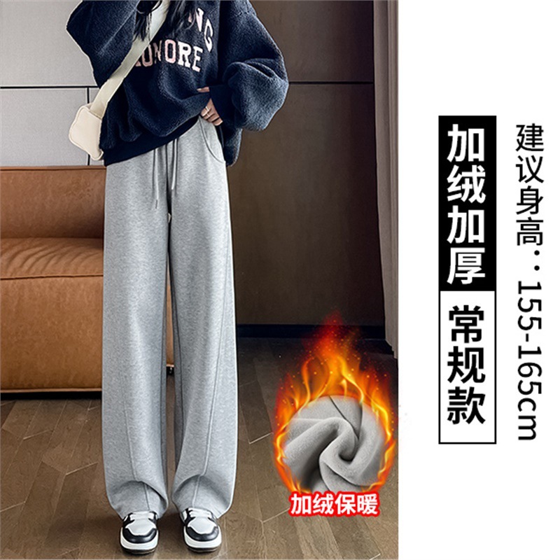 窄版香蕉裤女春秋2024新款加绒休闲直筒秋冬灰色卫裤阔腿运动裤子