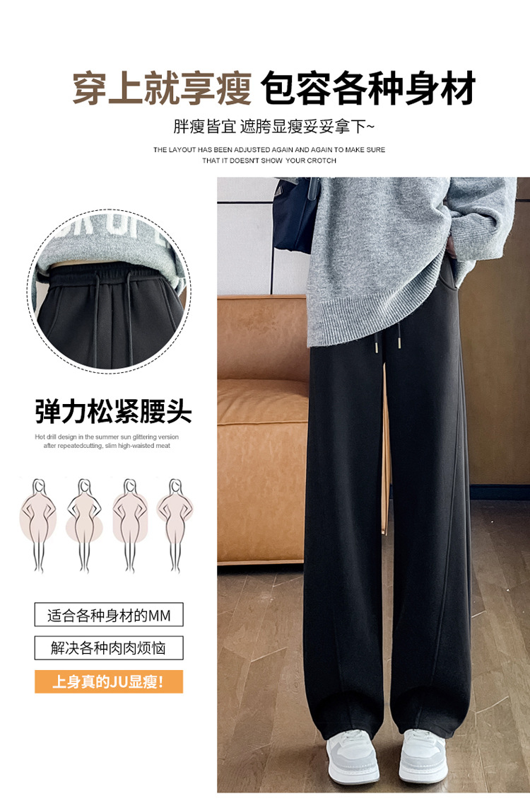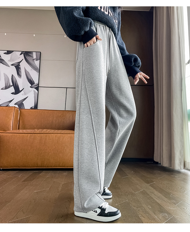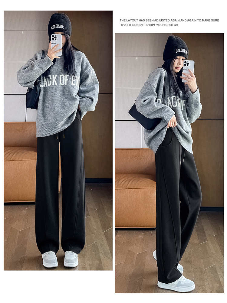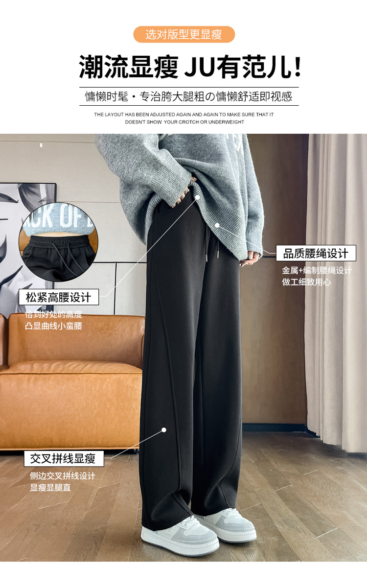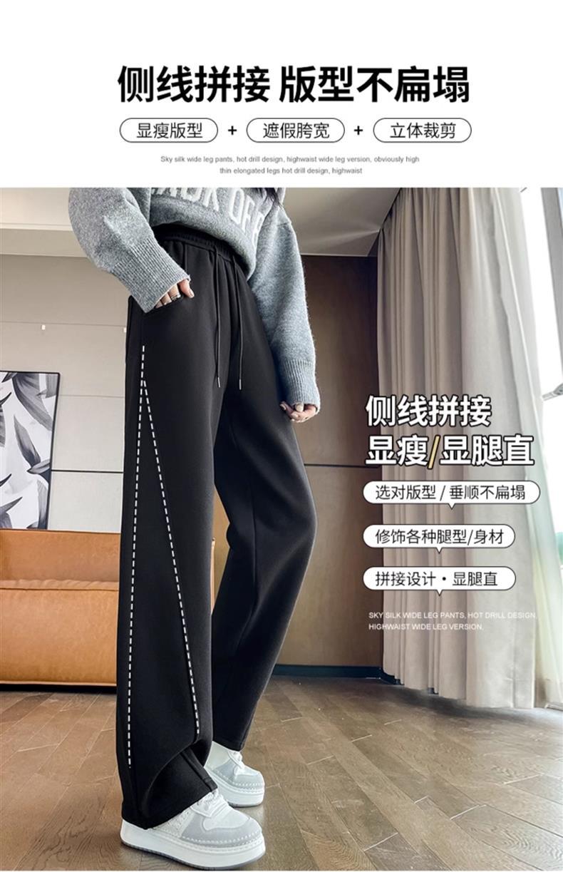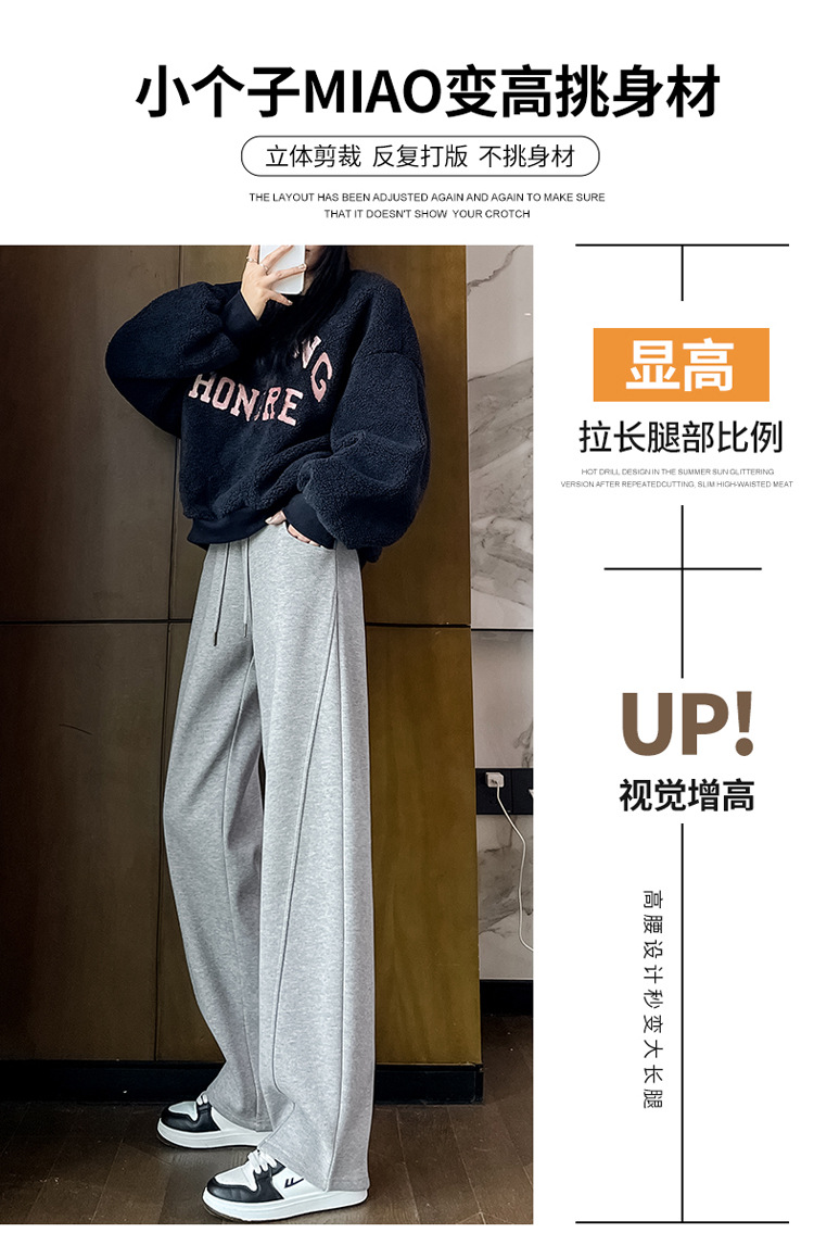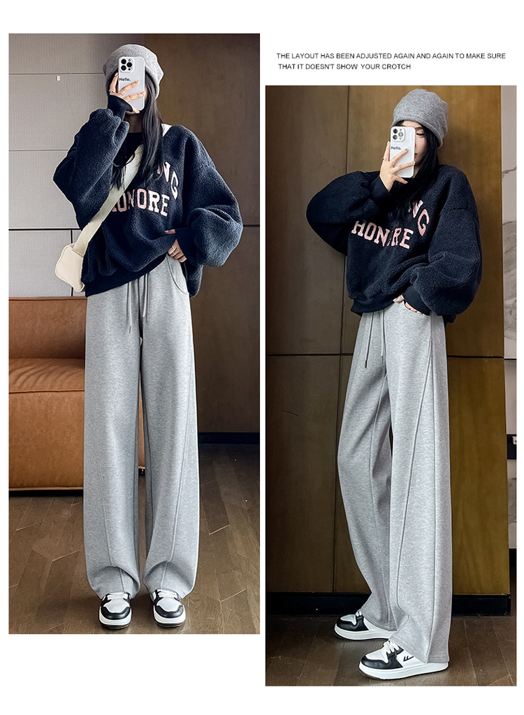 窄版香蕉裤女春秋2024新款加绒休闲直筒秋冬灰色卫裤阔腿运动裤子