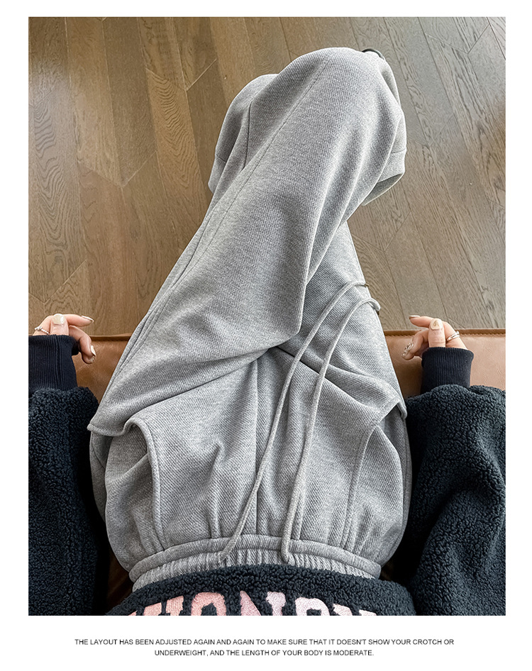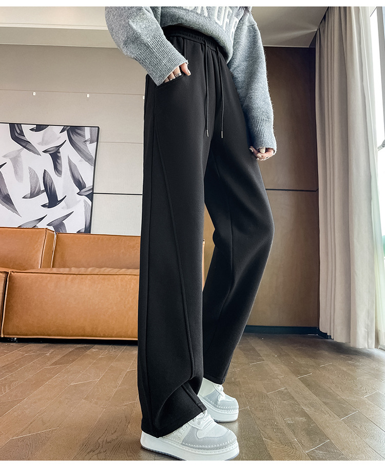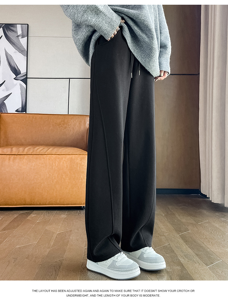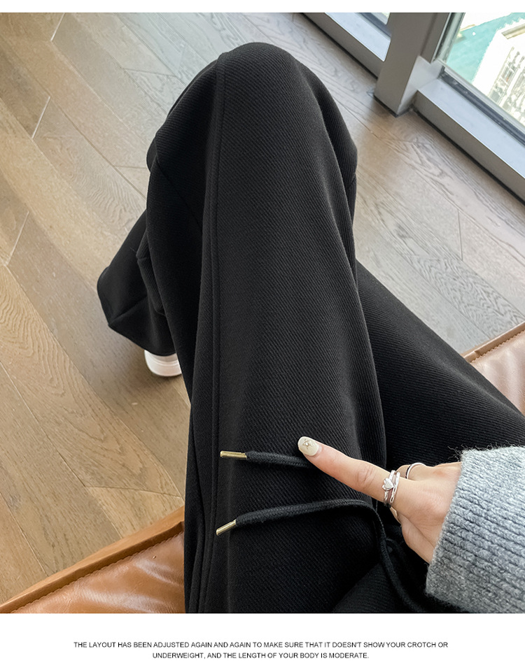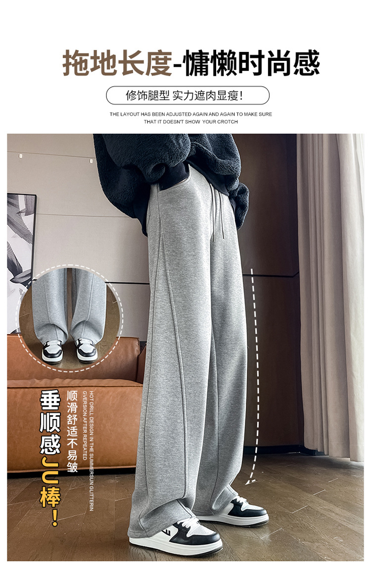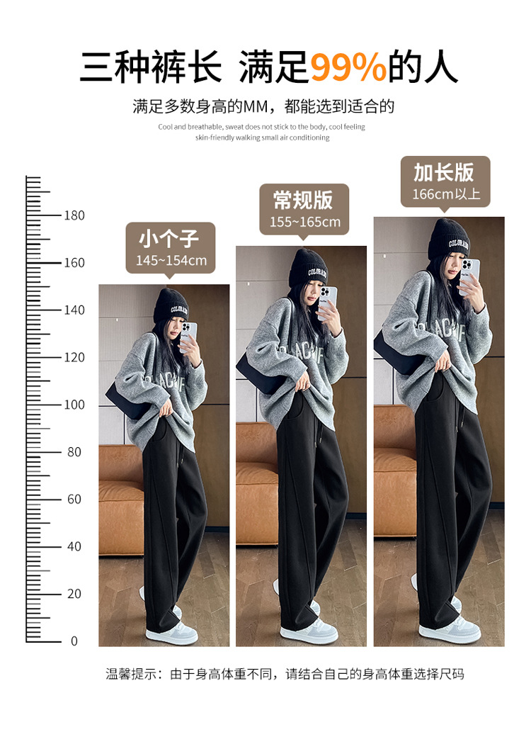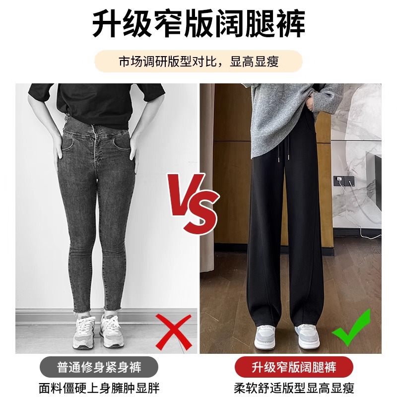 窄版香蕉裤女春秋2024新款加绒休闲直筒秋冬灰色卫裤阔腿运动裤子