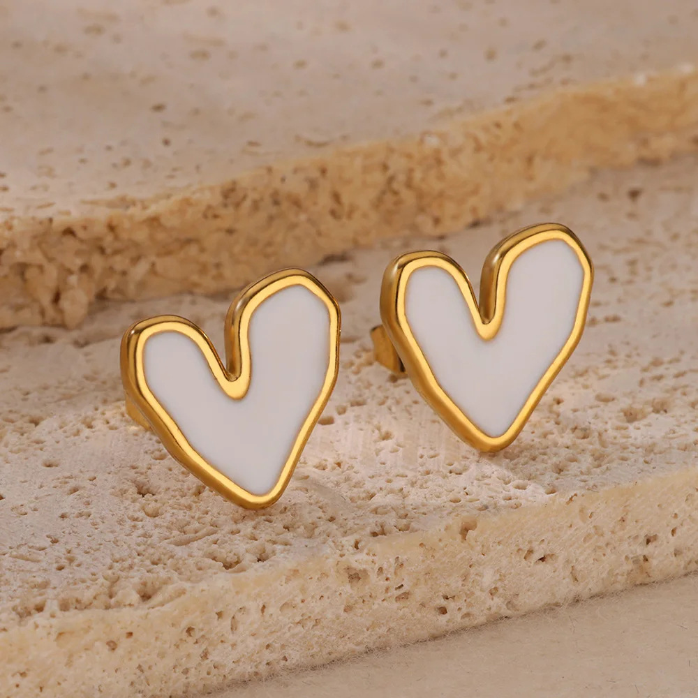 简约锆石爱心18K耳扣女时尚钛钢耳钉高级感气质耳环小众跨境热销