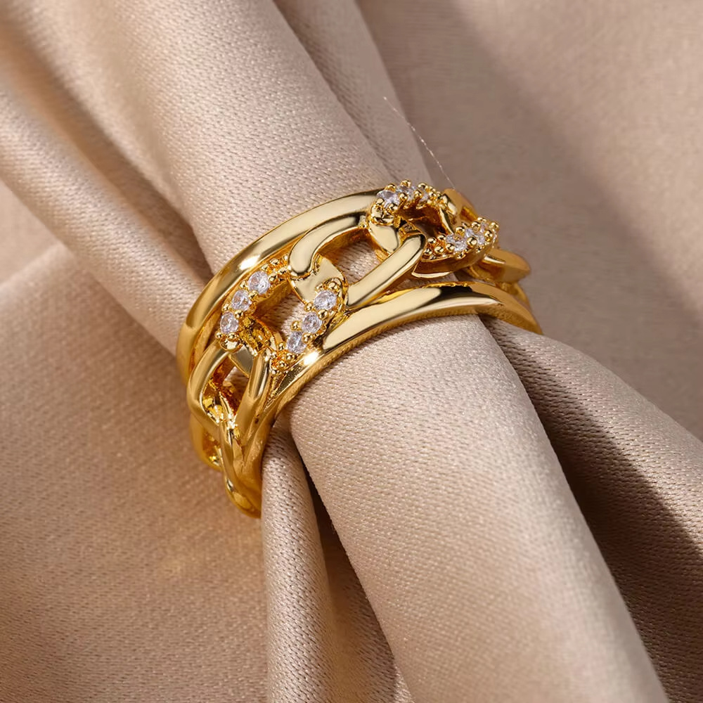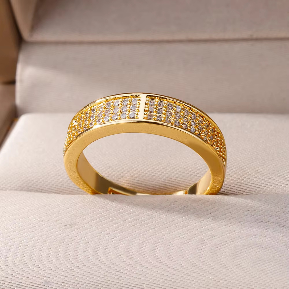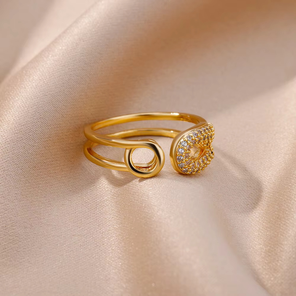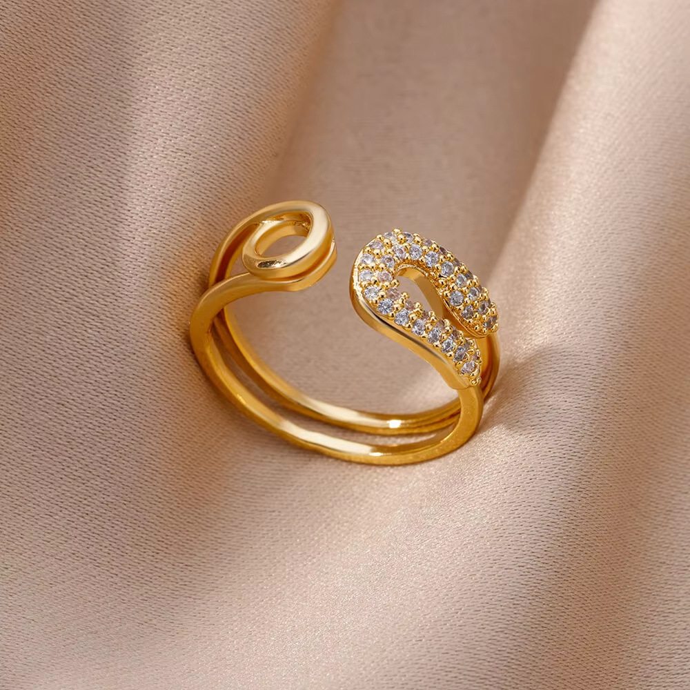高级感满钻锆石多层绳结几何戒指女轻奢百搭开口食指指环跨境热销