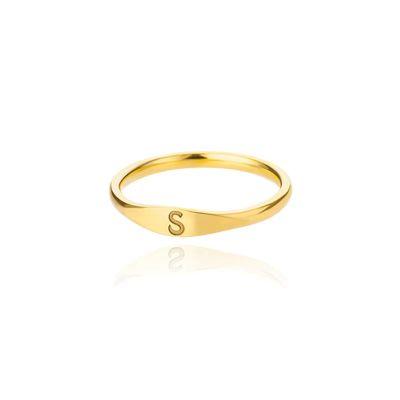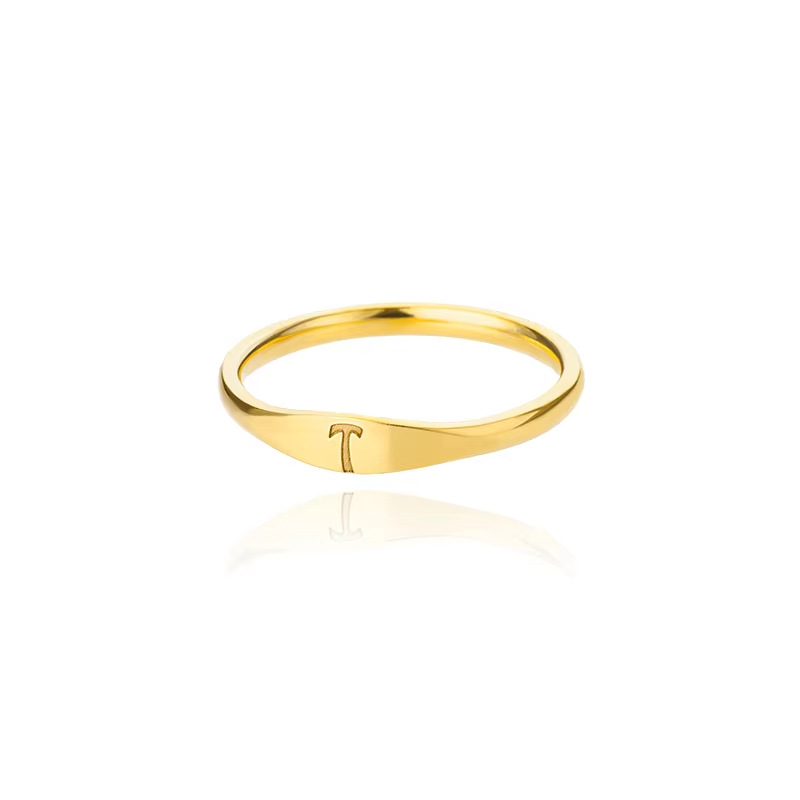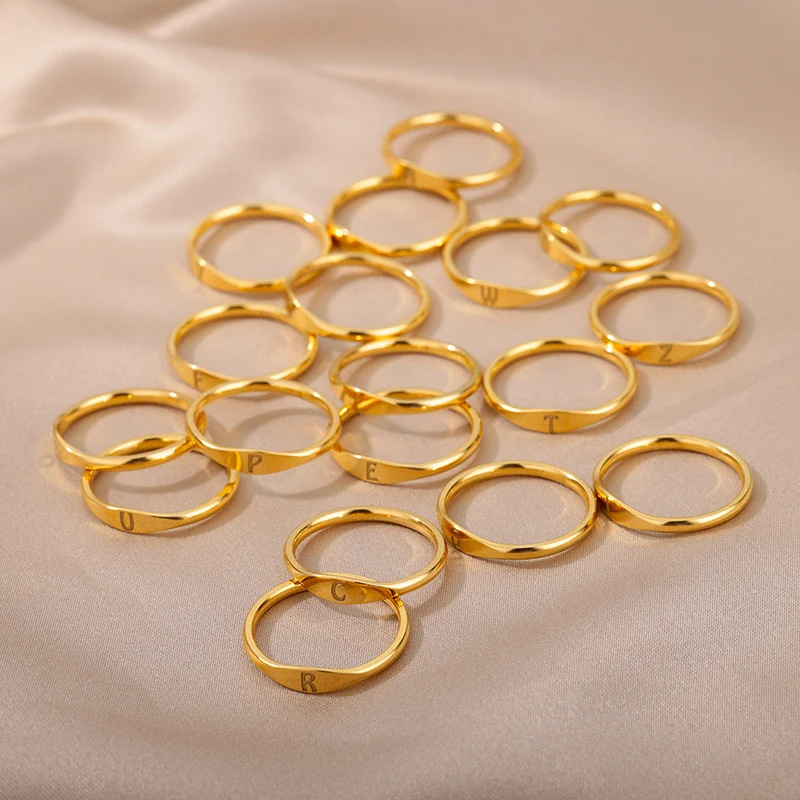 跨境26个英文字母戒指不锈钢高品质小众设计感轻奢开口女戒食指环