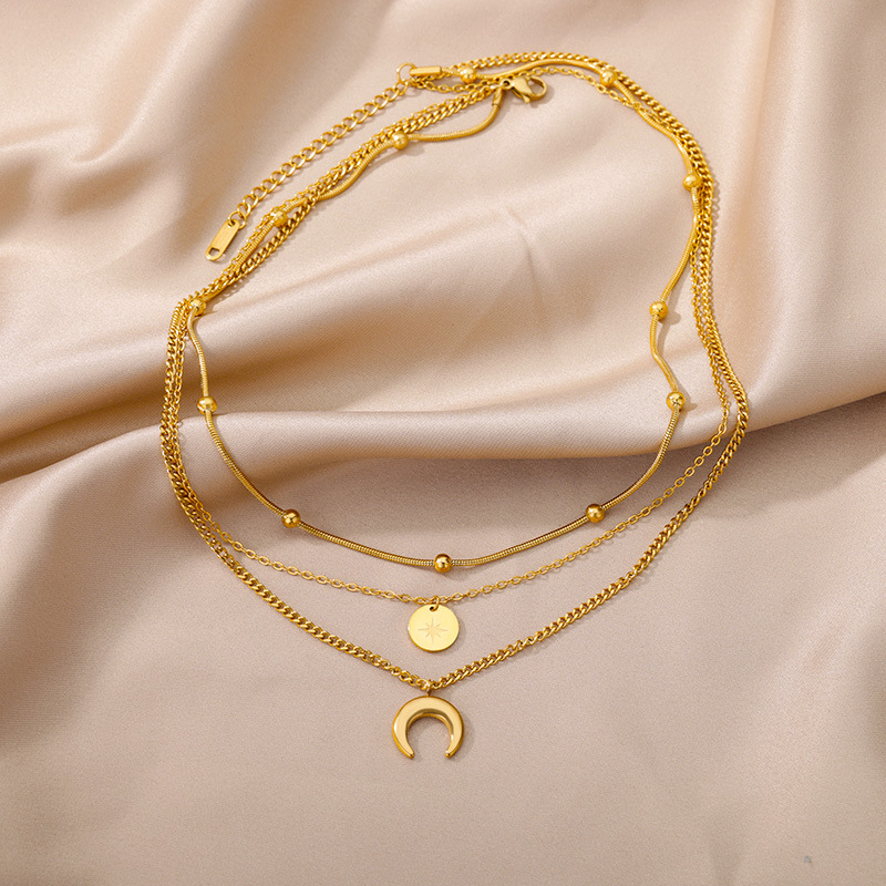 跨境欧美轻奢爱心月亮多层叠链女锁骨链时尚气质颈链项链饰品批发