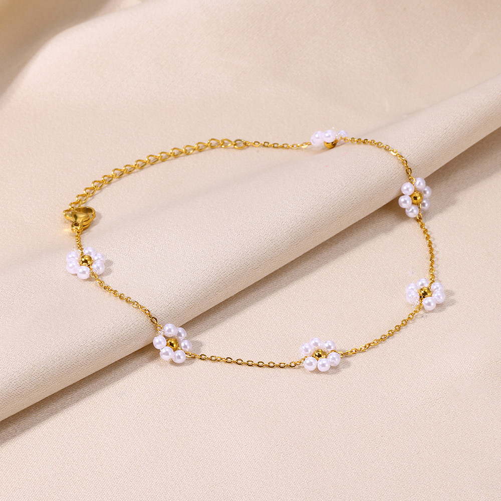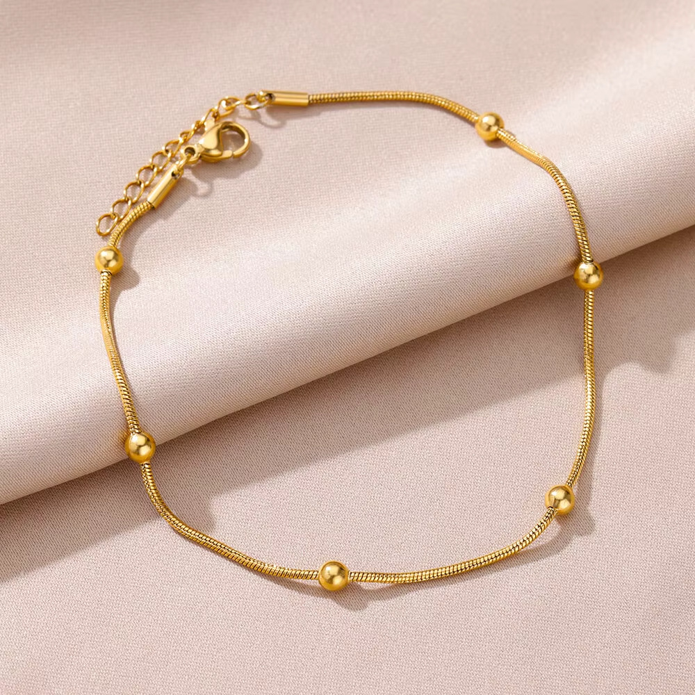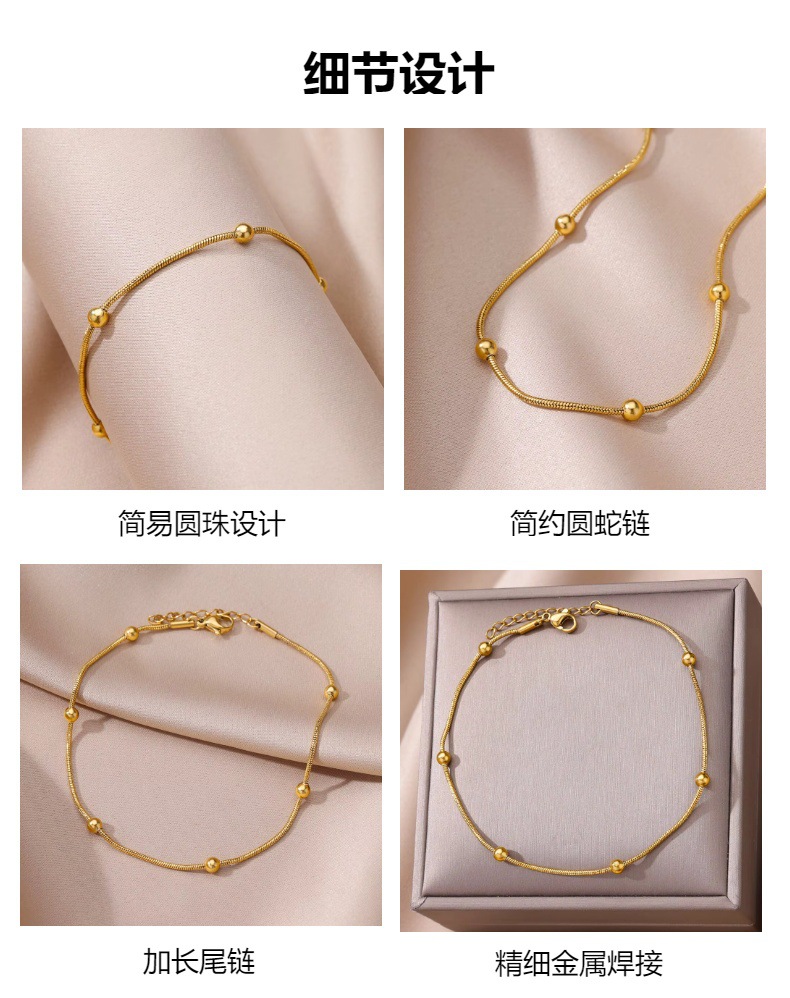 欧美简约圆蛇珠链珍珠女脚链钛钢镀18k不锈钢脚踝链夏季跨境新款