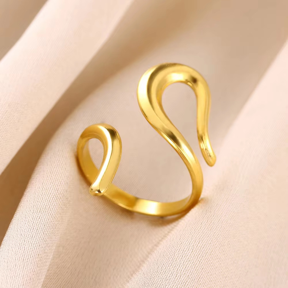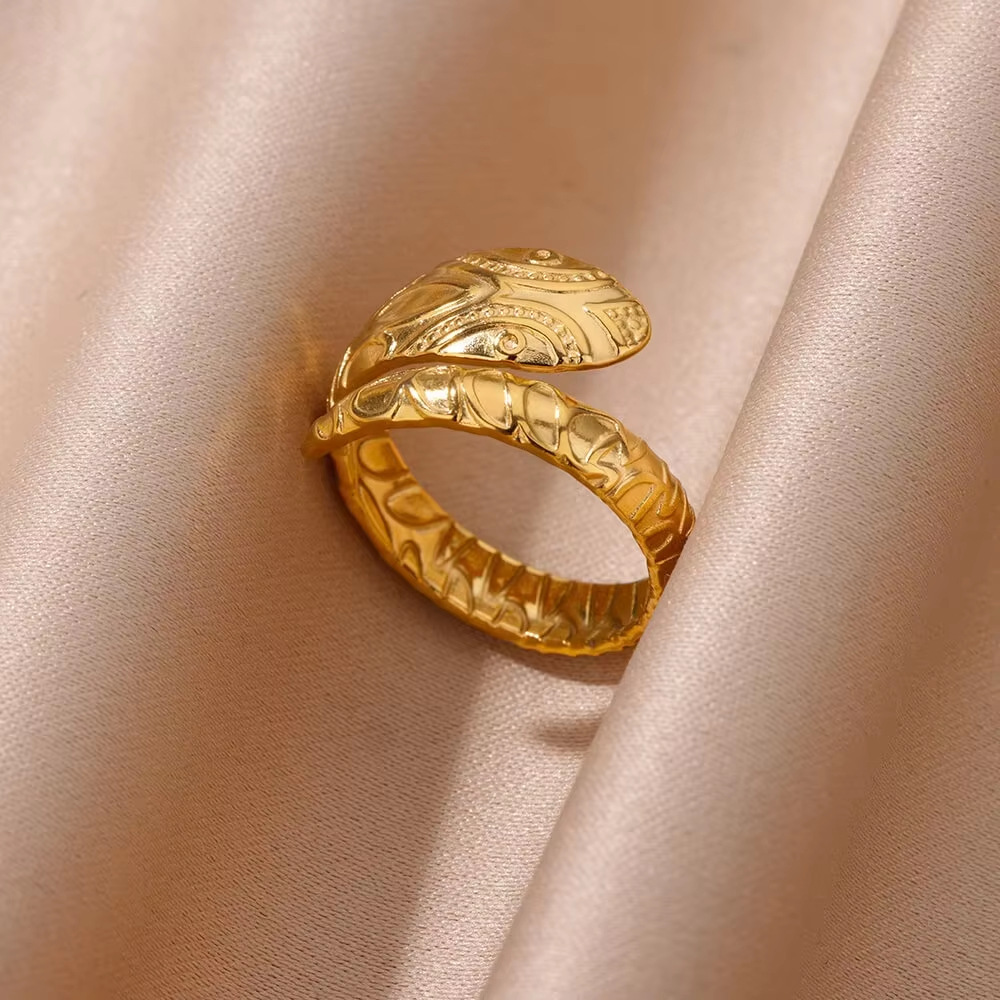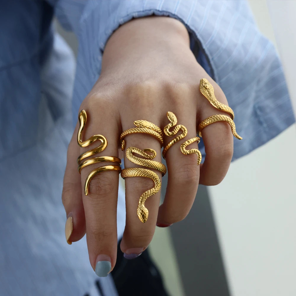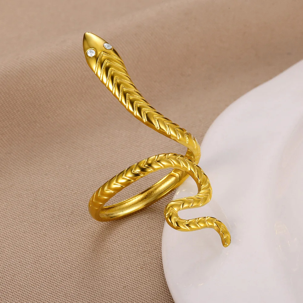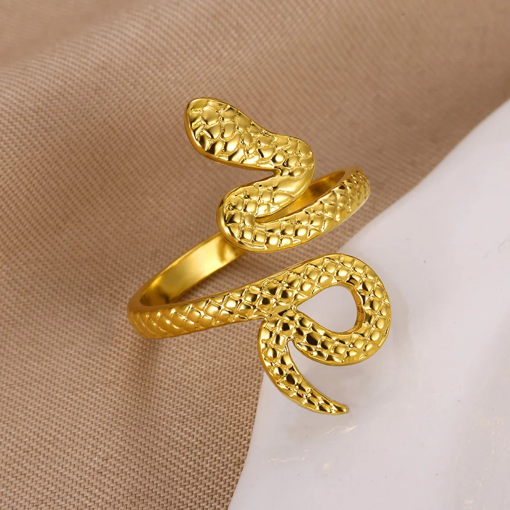 复古钛钢戒指女金色蛇百搭简约嘻哈个性开口蛇年欧美热销潮流
