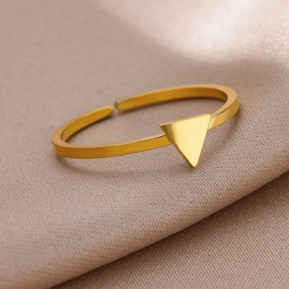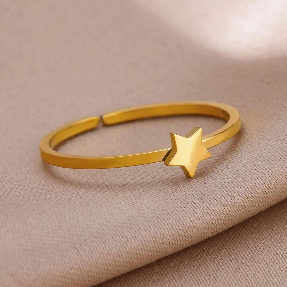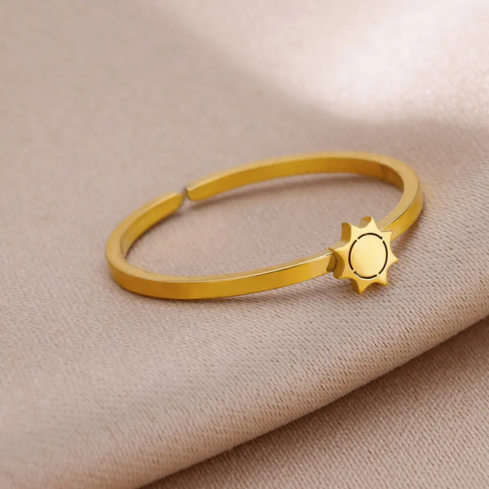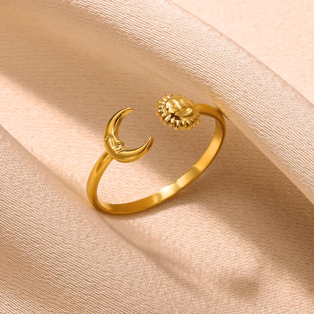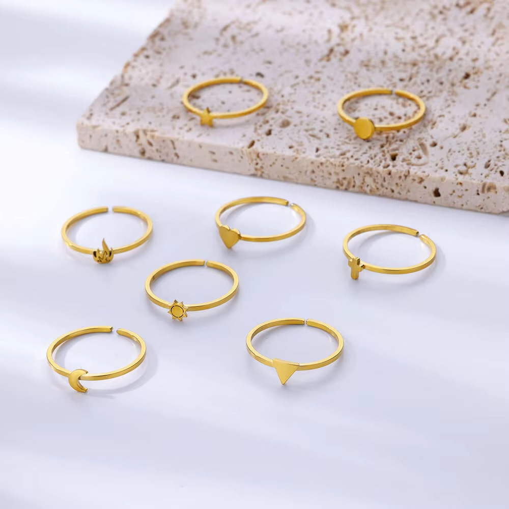 跨境镀金不锈钢戒指女十字架月亮几何素圈情侣指环心形几何图案