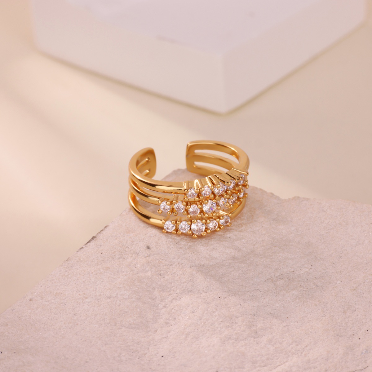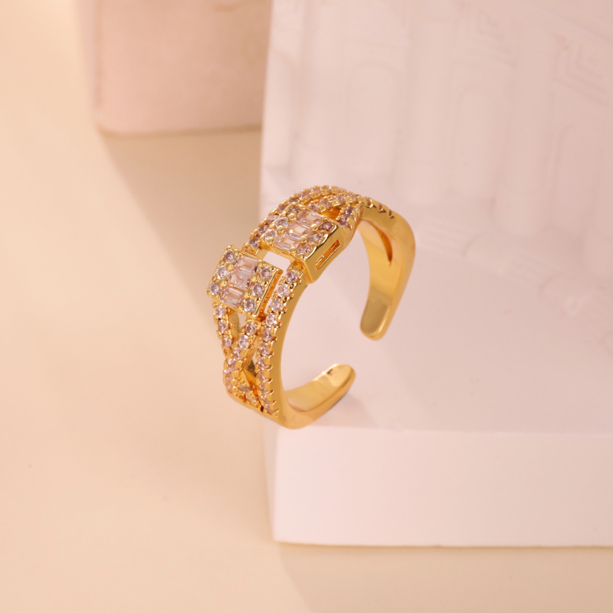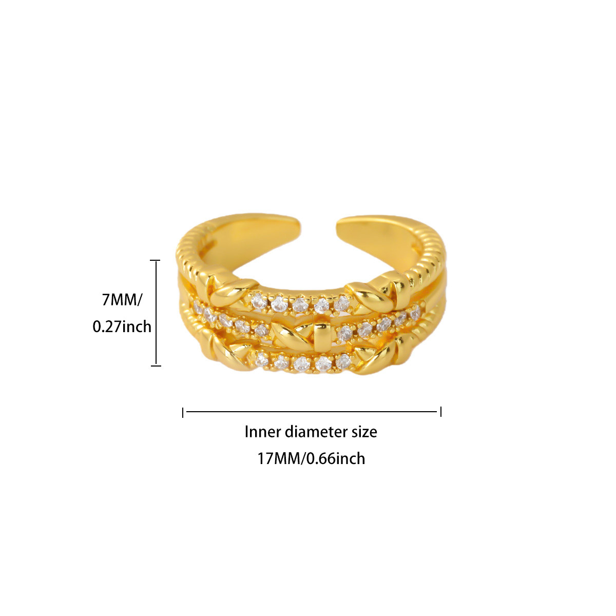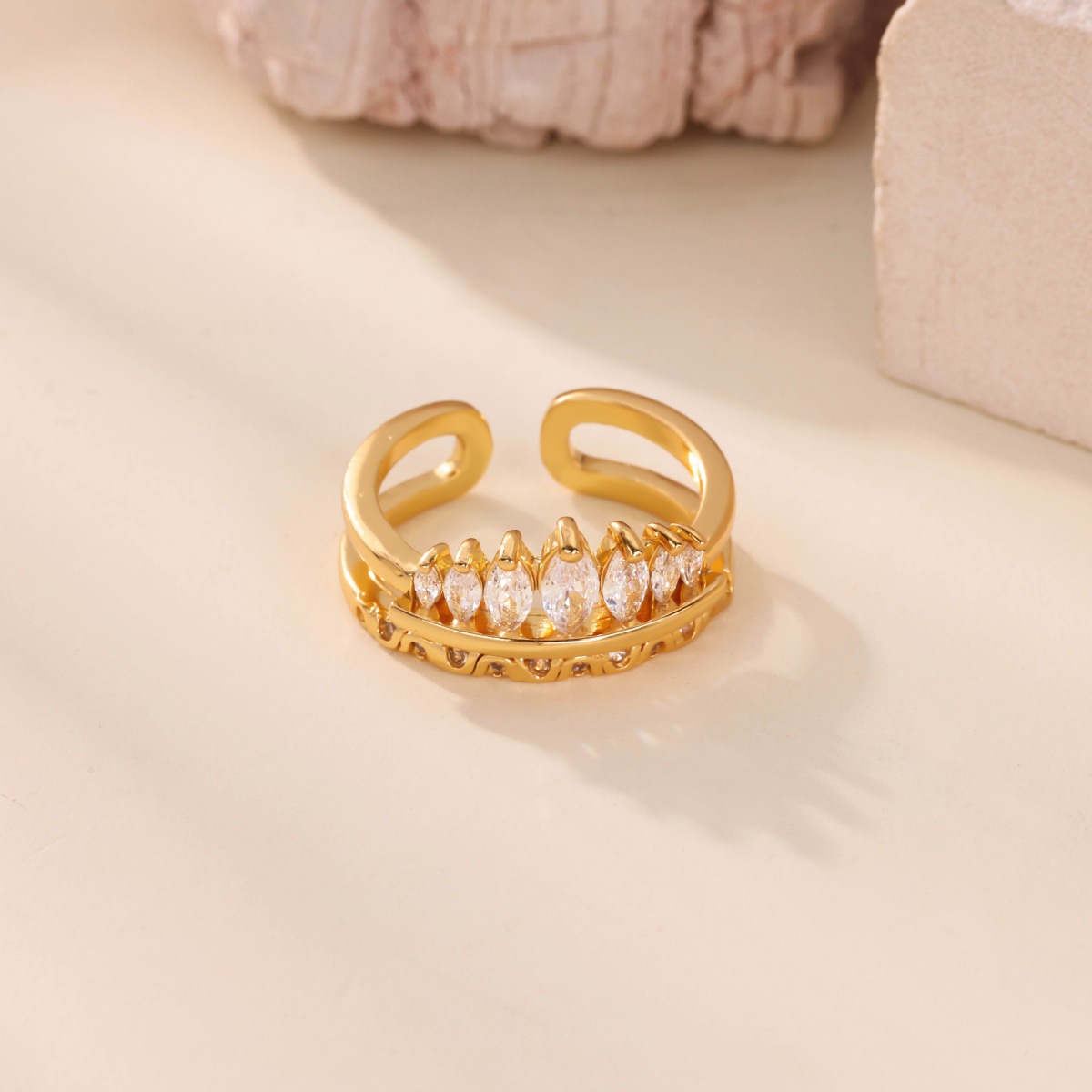 满钻铜镀18K真金个性开口戒指女时尚精致双层戒指轻奢食指戒新款