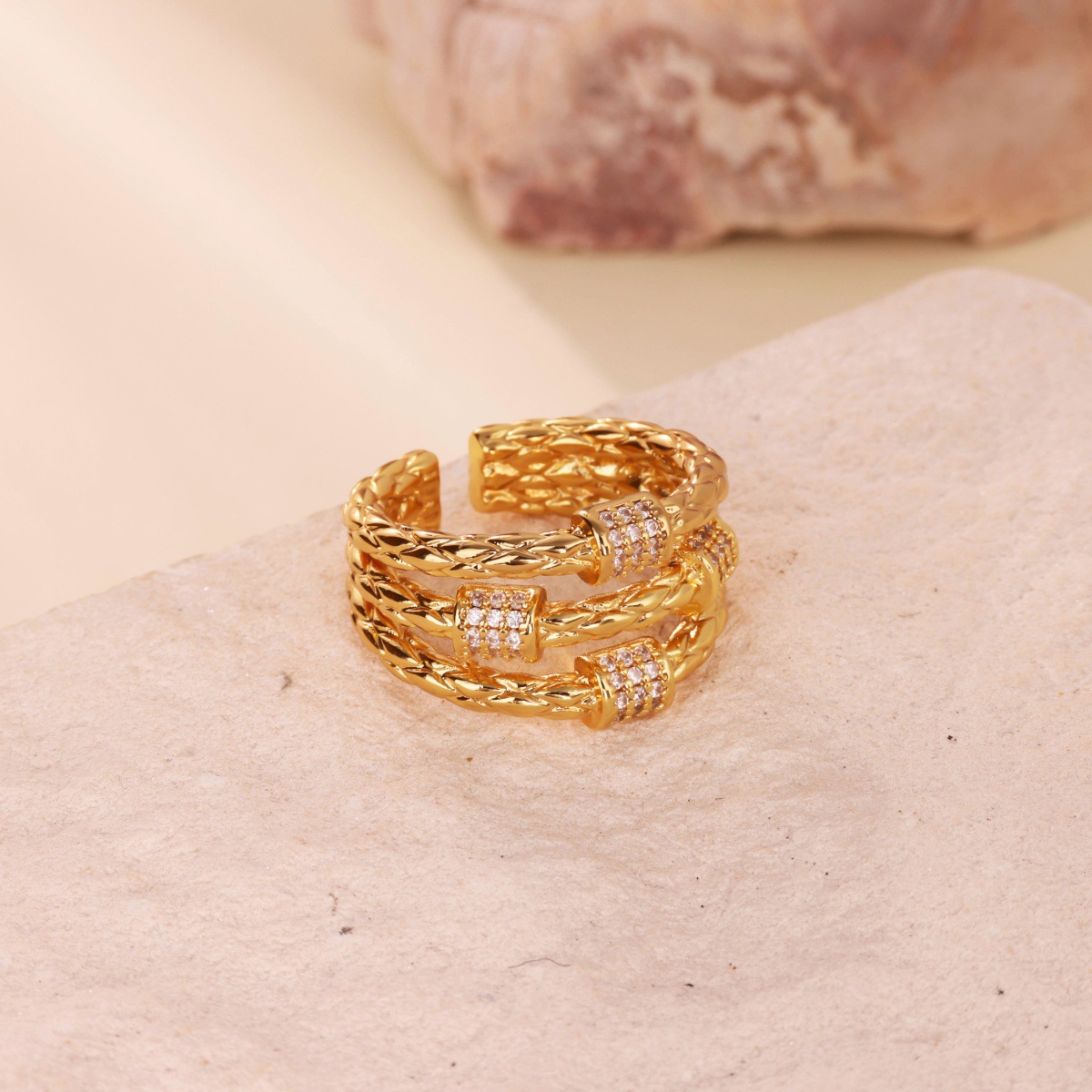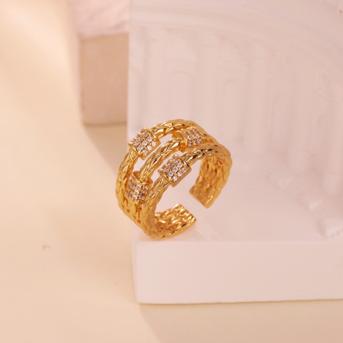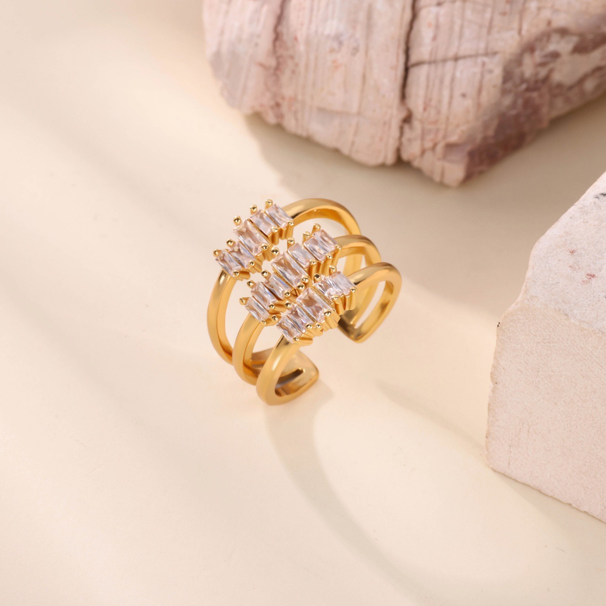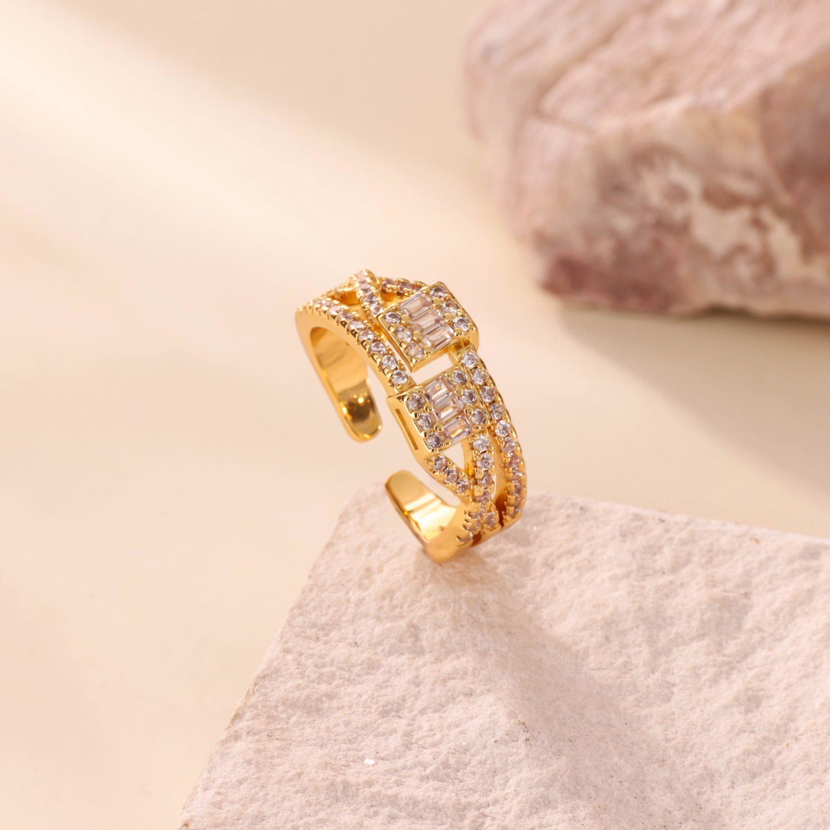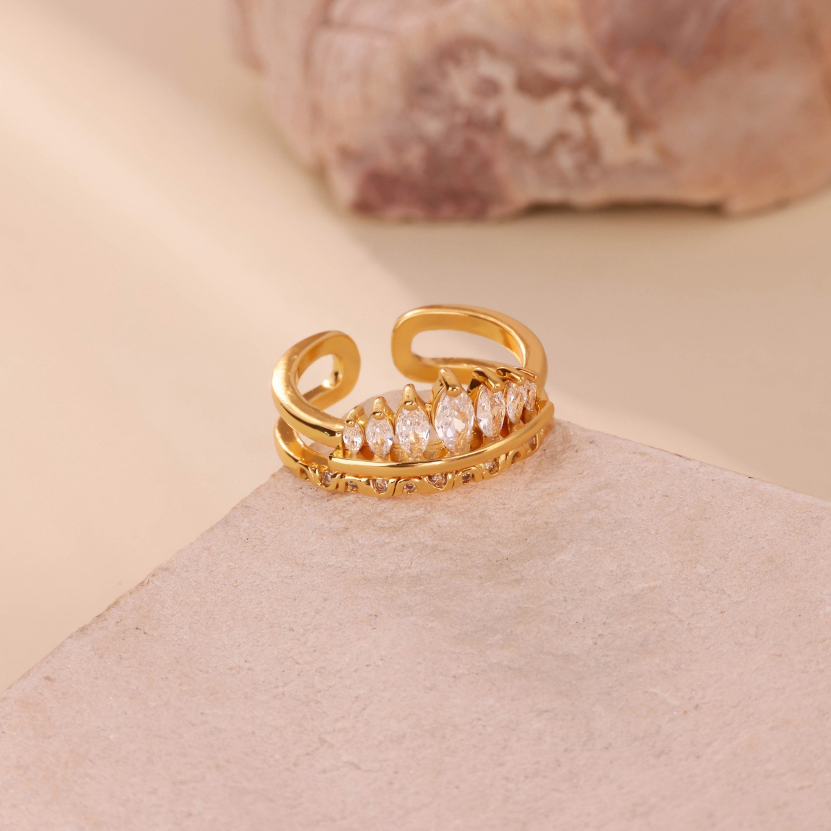 满钻铜镀18K真金个性开口戒指女时尚精致双层戒指轻奢食指戒新款
