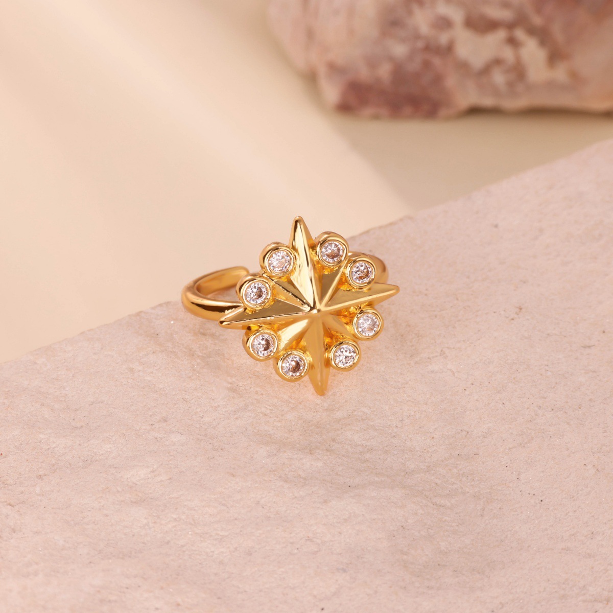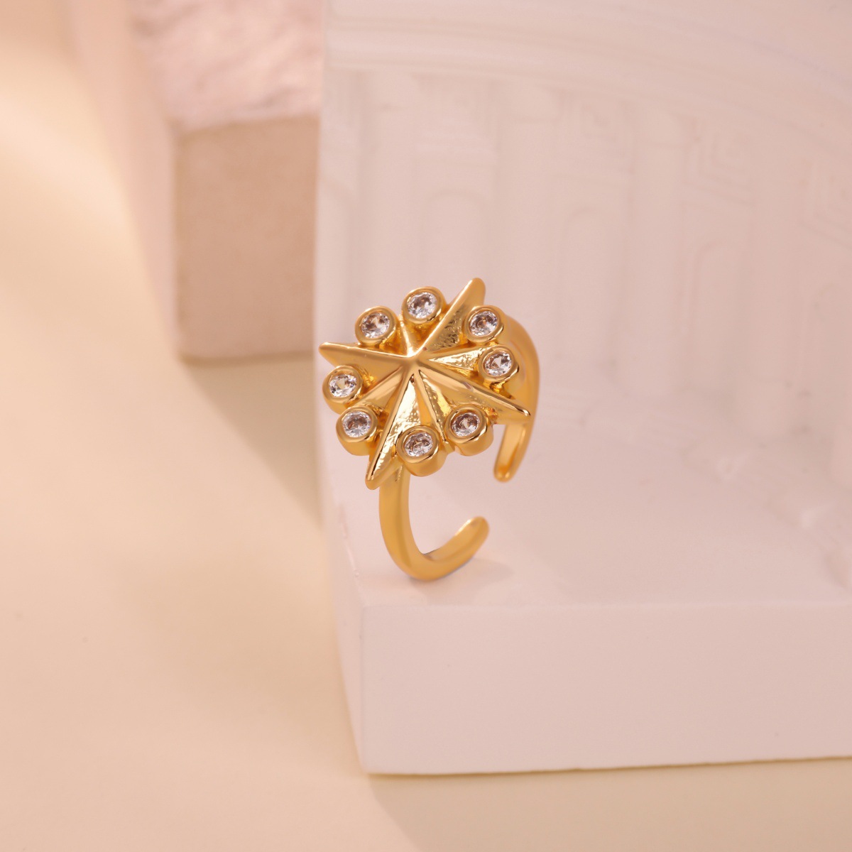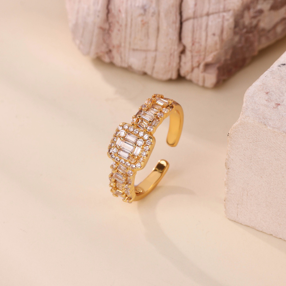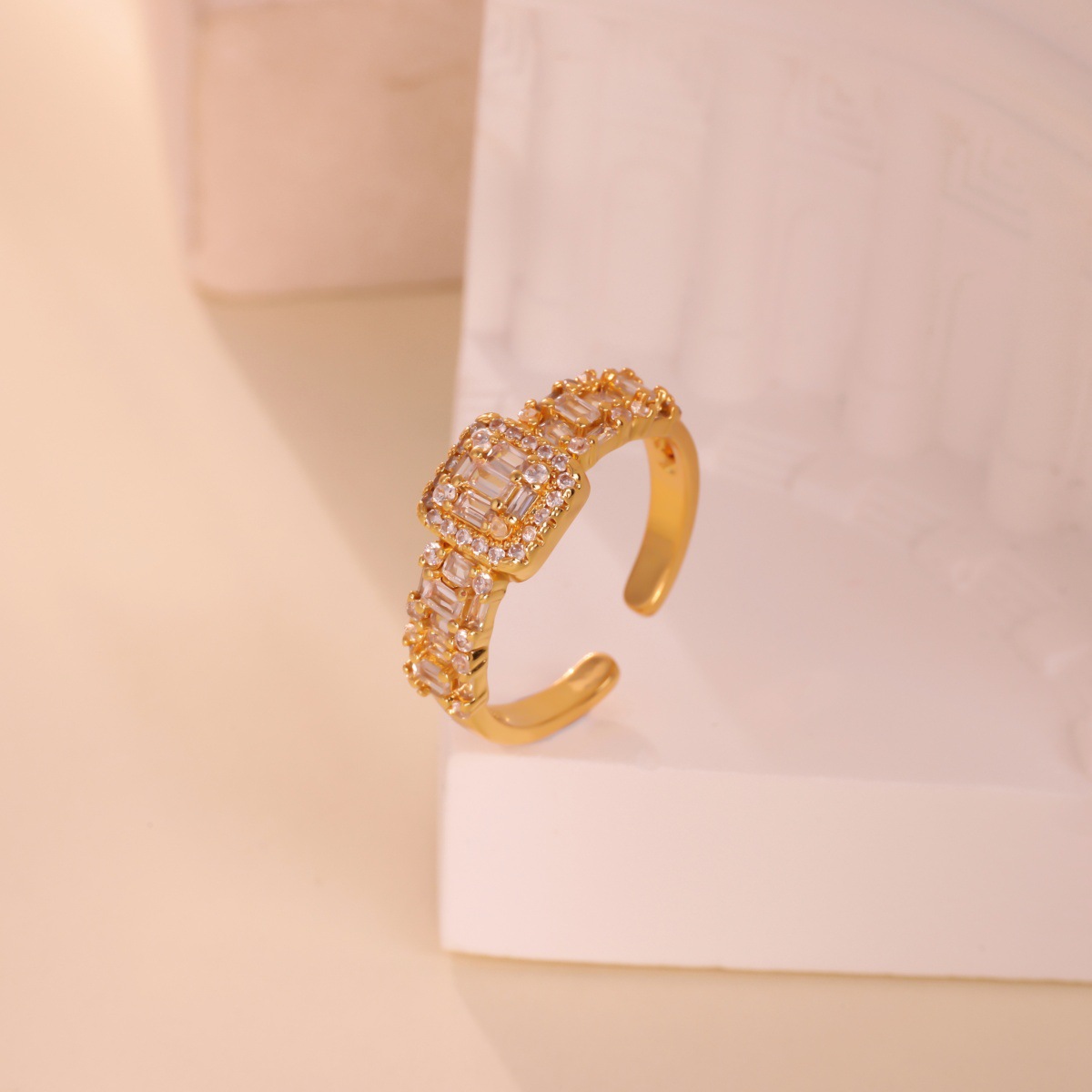 满钻铜镀18K真金个性开口戒指女时尚精致双层戒指轻奢食指戒新款