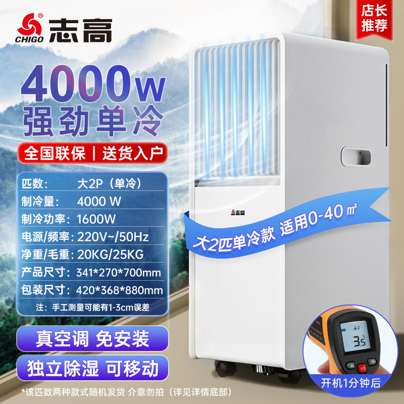 志高可移动空调单冷冷暖一体机免安装户外便携式制冷小空调无外机