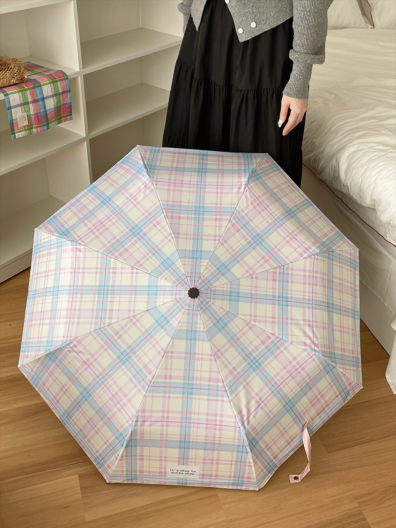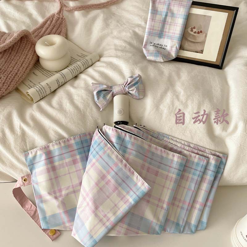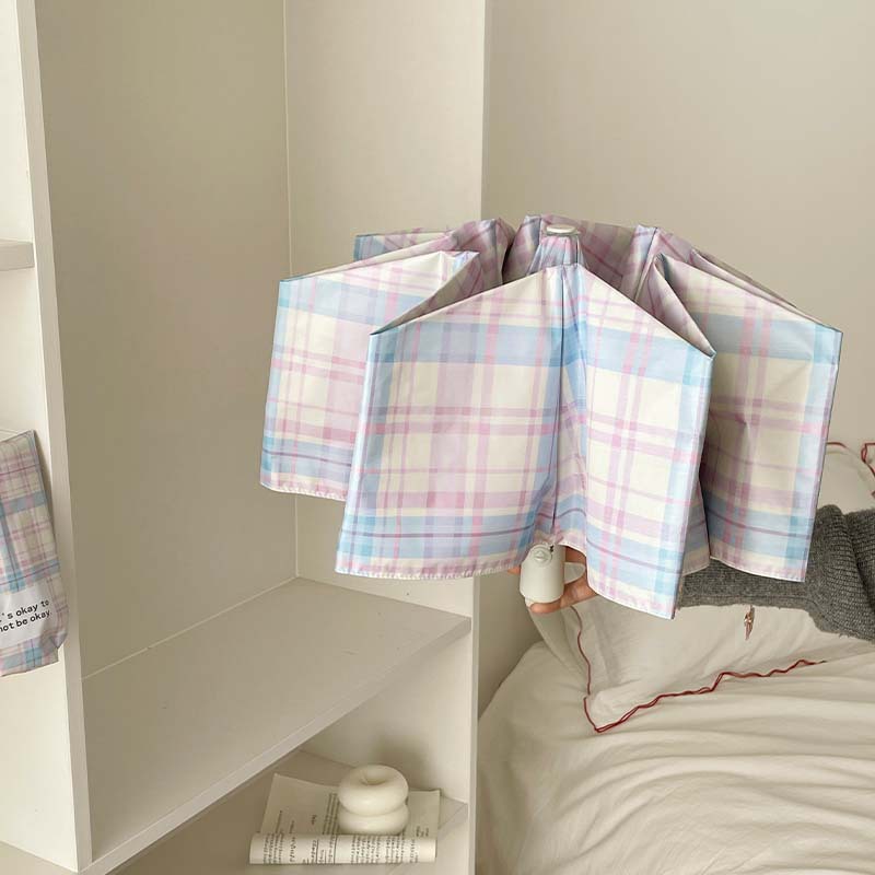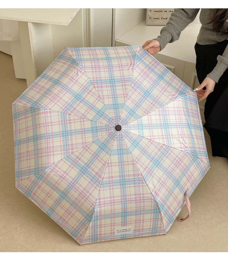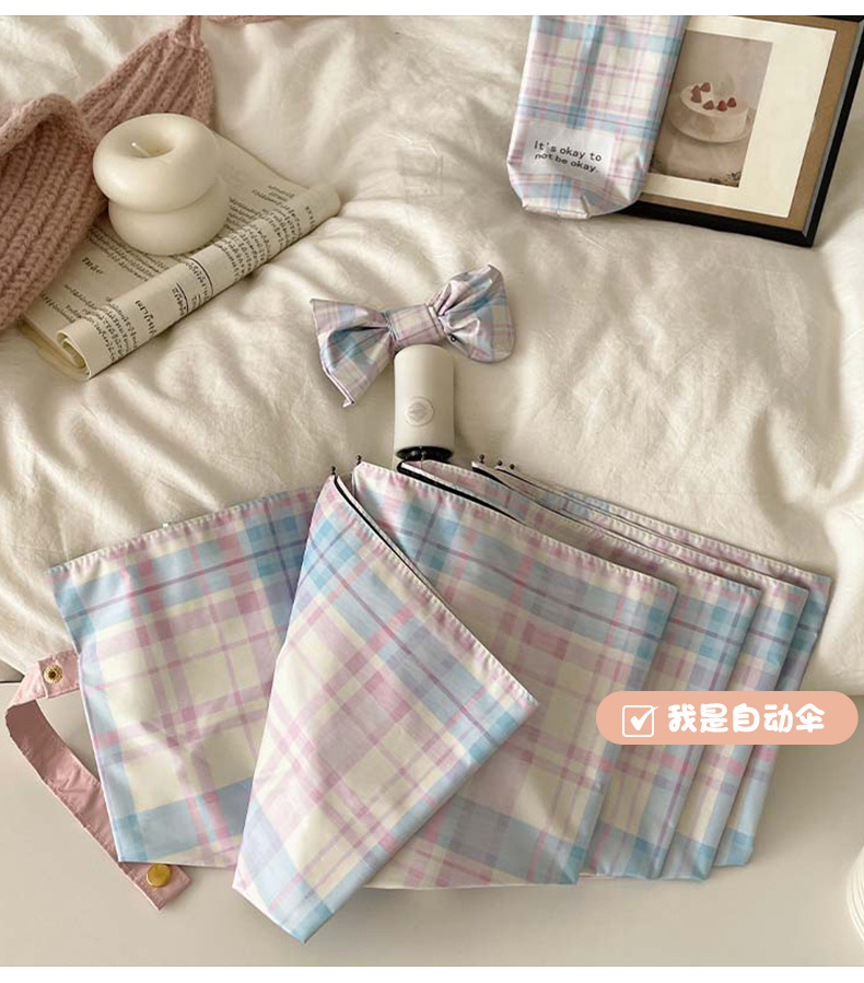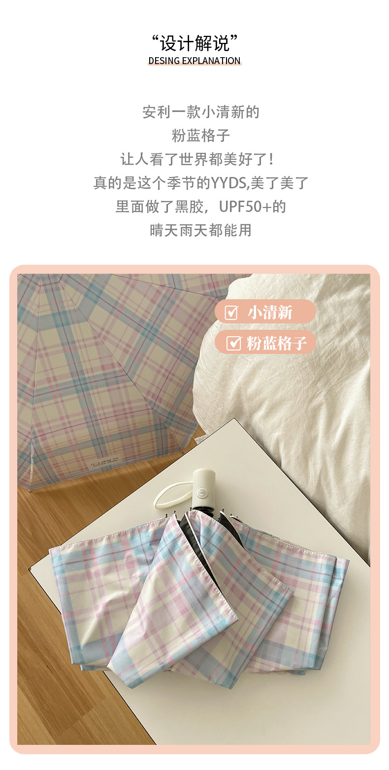 蓝粉色格子雨伞加大自动晴雨两用高颜值防晒防紫外线折叠女遮阳伞