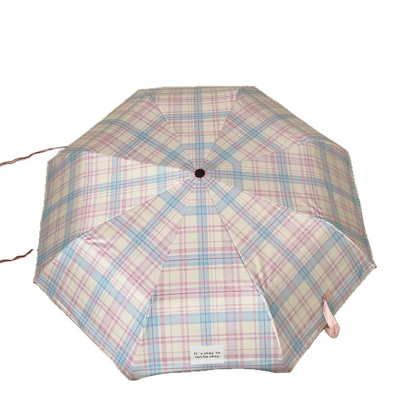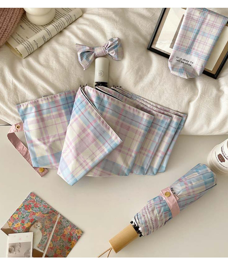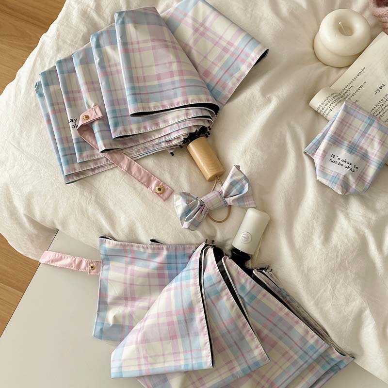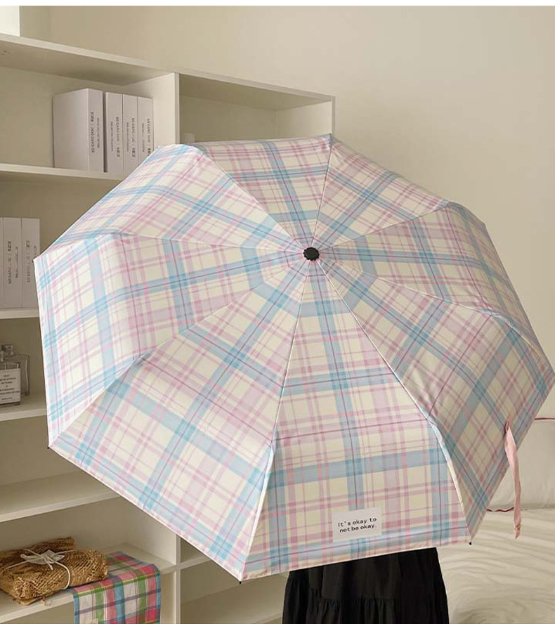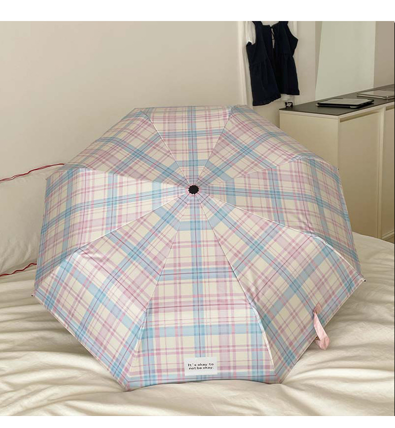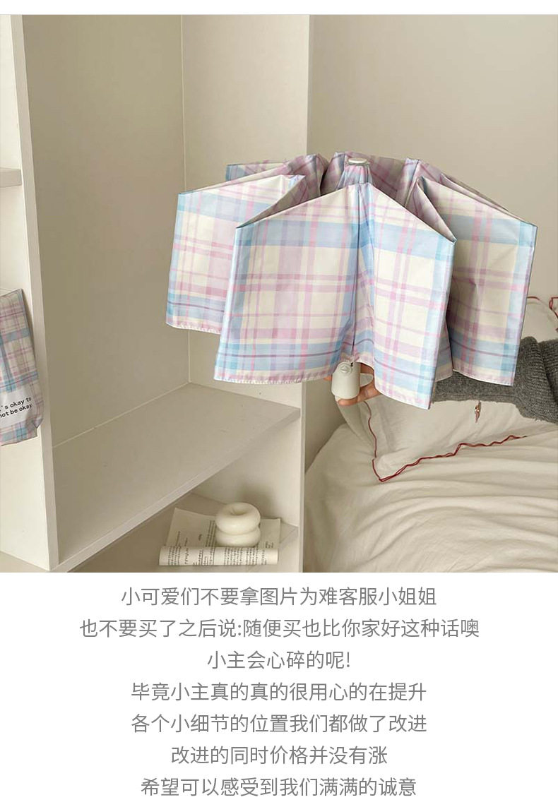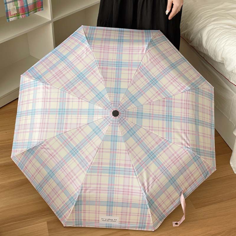 蓝粉色格子雨伞加大自动晴雨两用高颜值防晒防紫外线折叠女遮阳伞