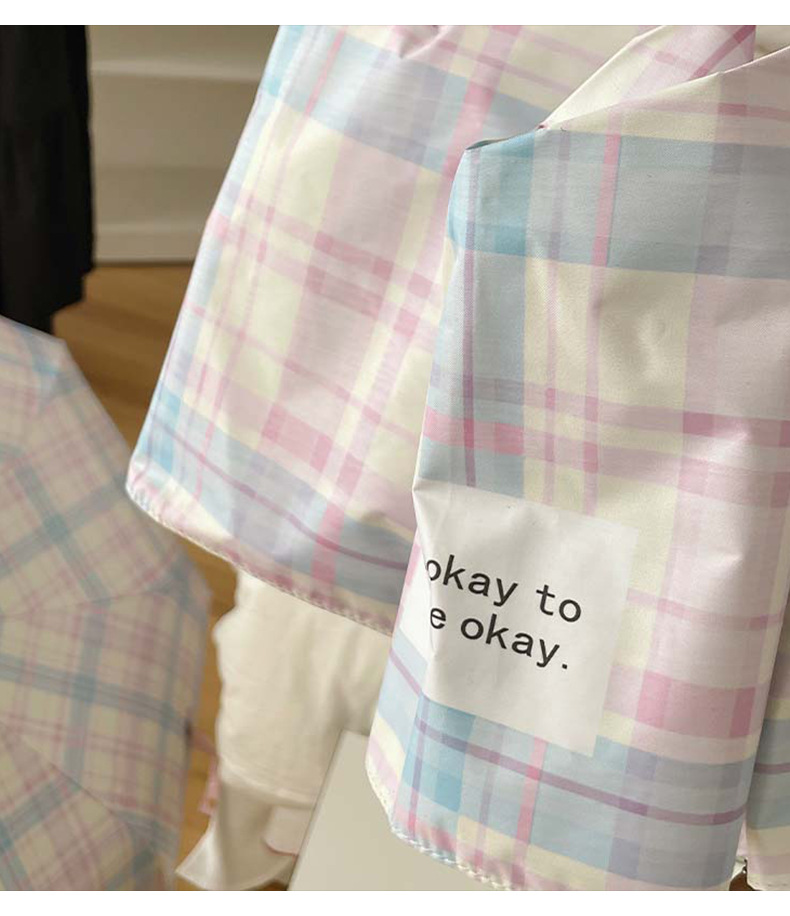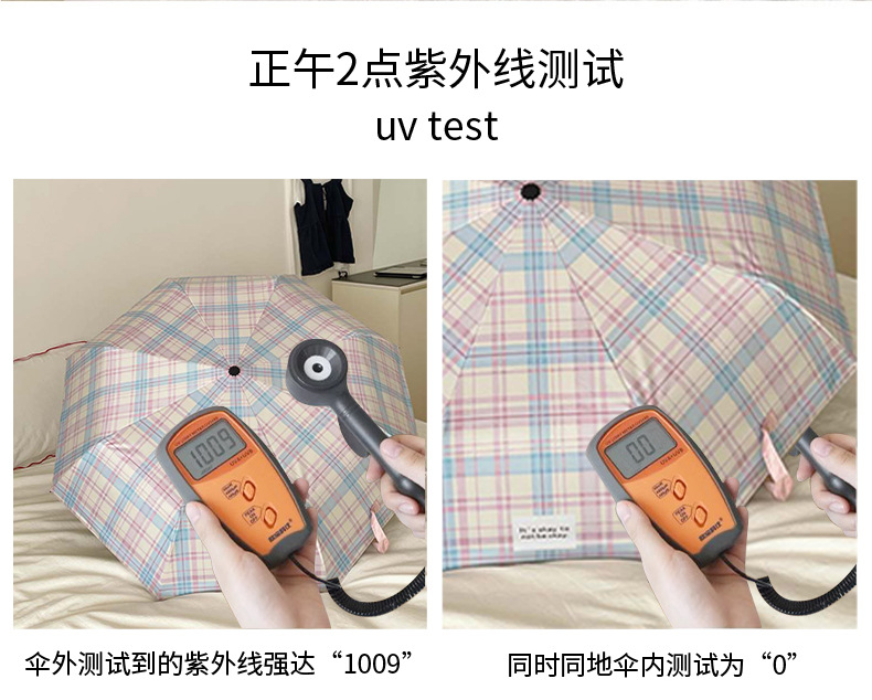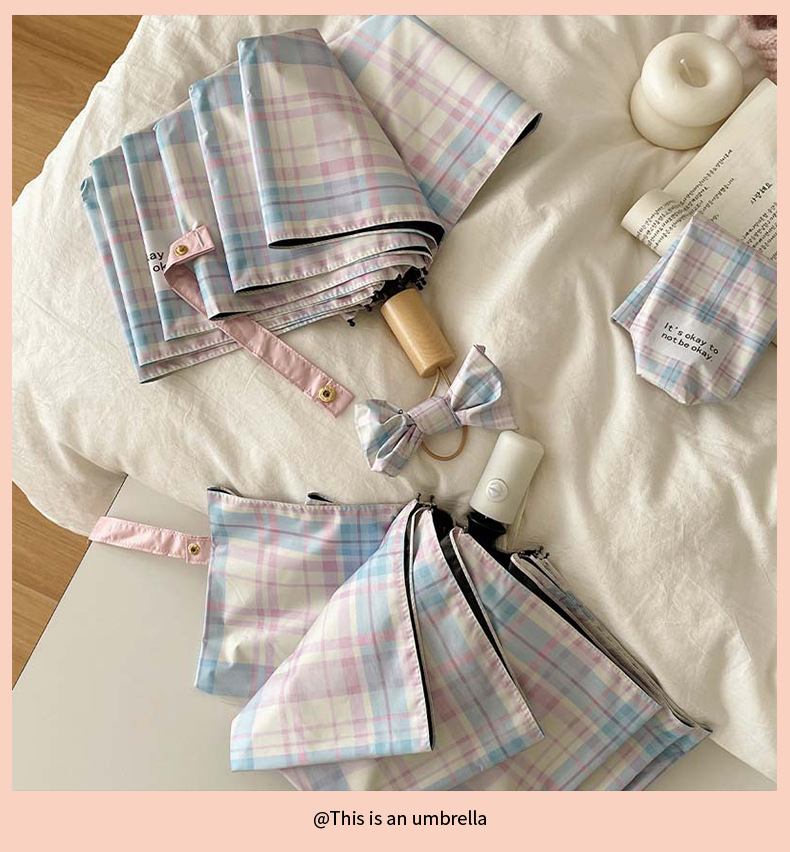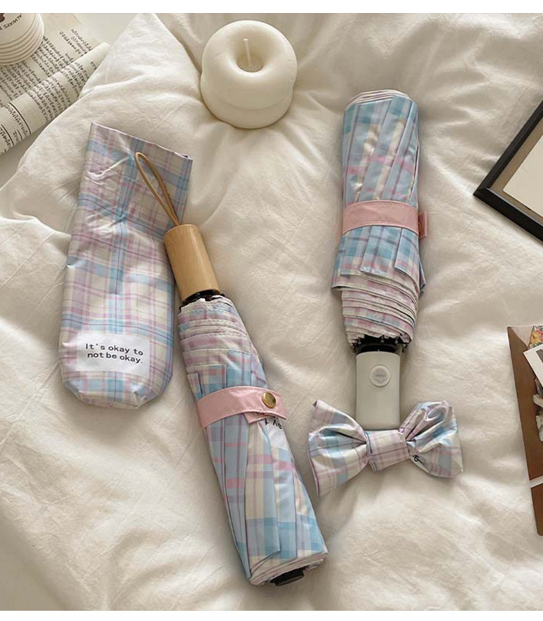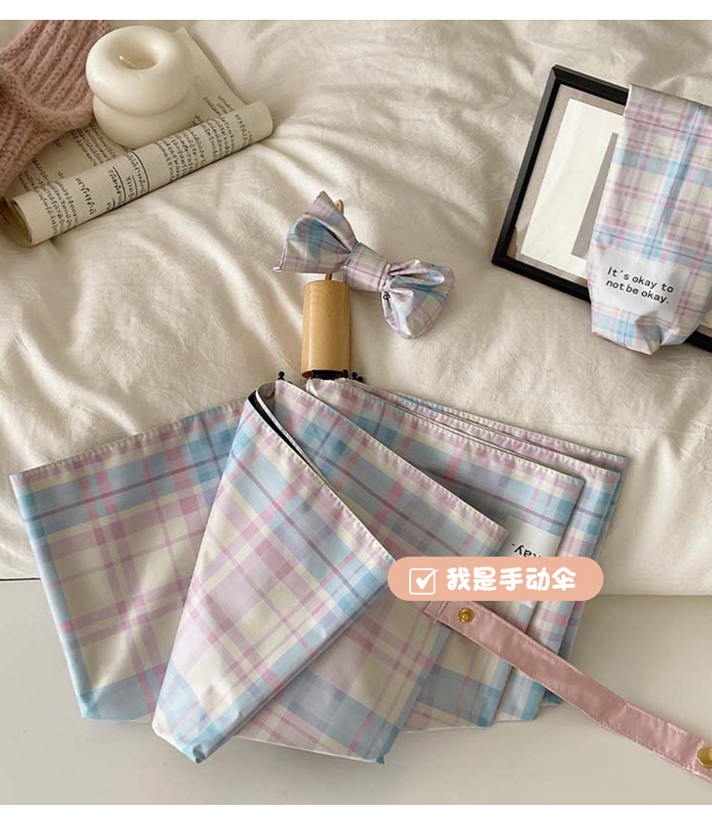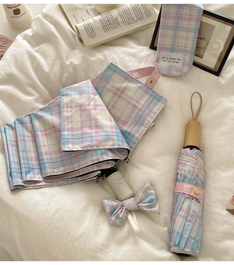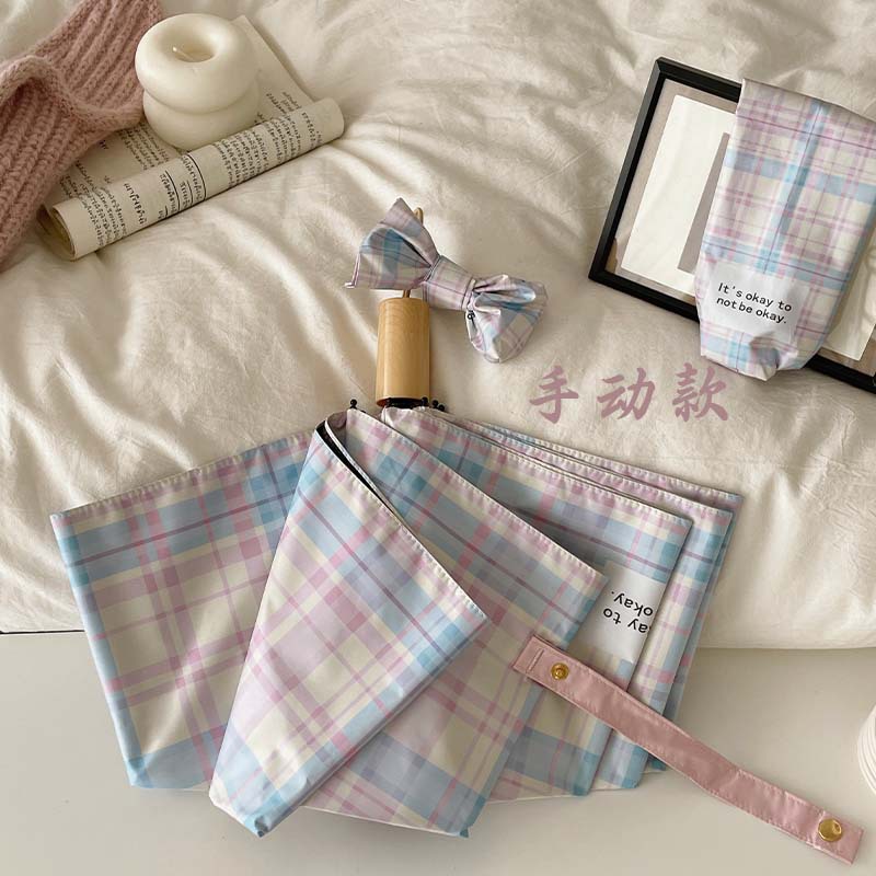 蓝粉色格子雨伞加大自动晴雨两用高颜值防晒防紫外线折叠女遮阳伞