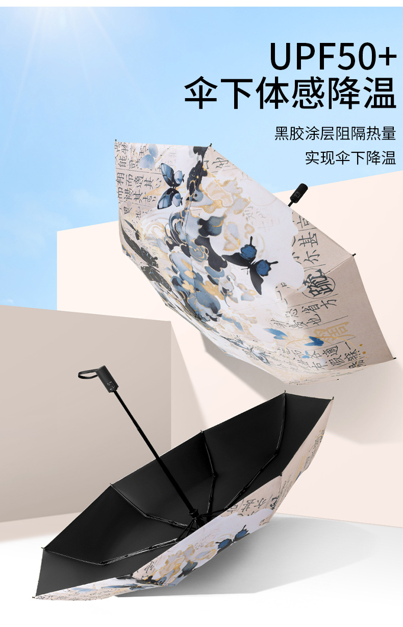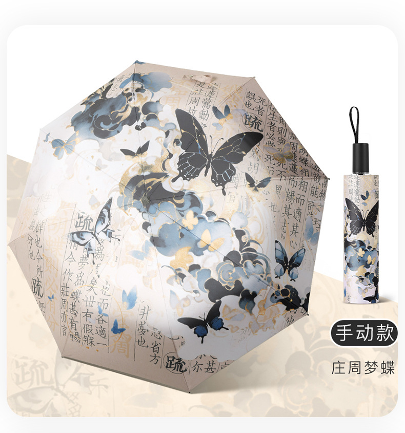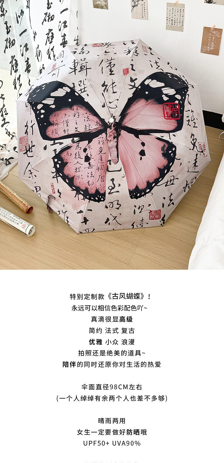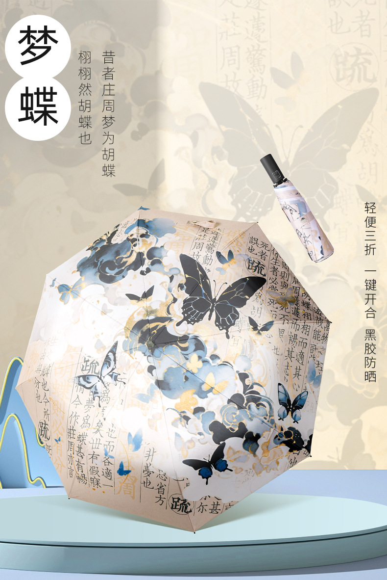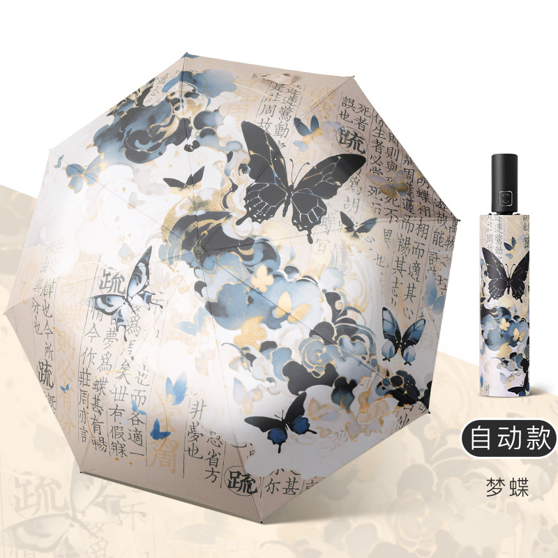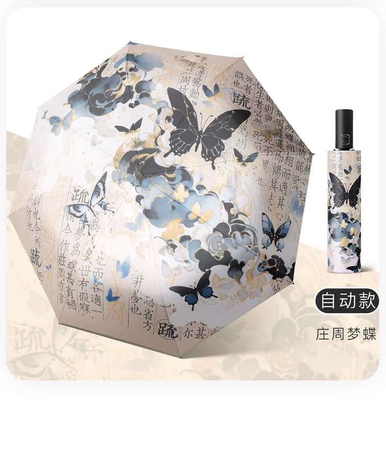 新国风蝴蝶雨伞女防晒防紫外线晴雨两用全自动学生折叠便携太阳伞
