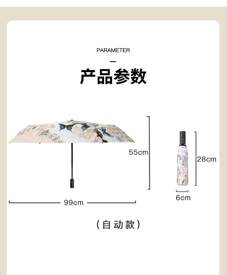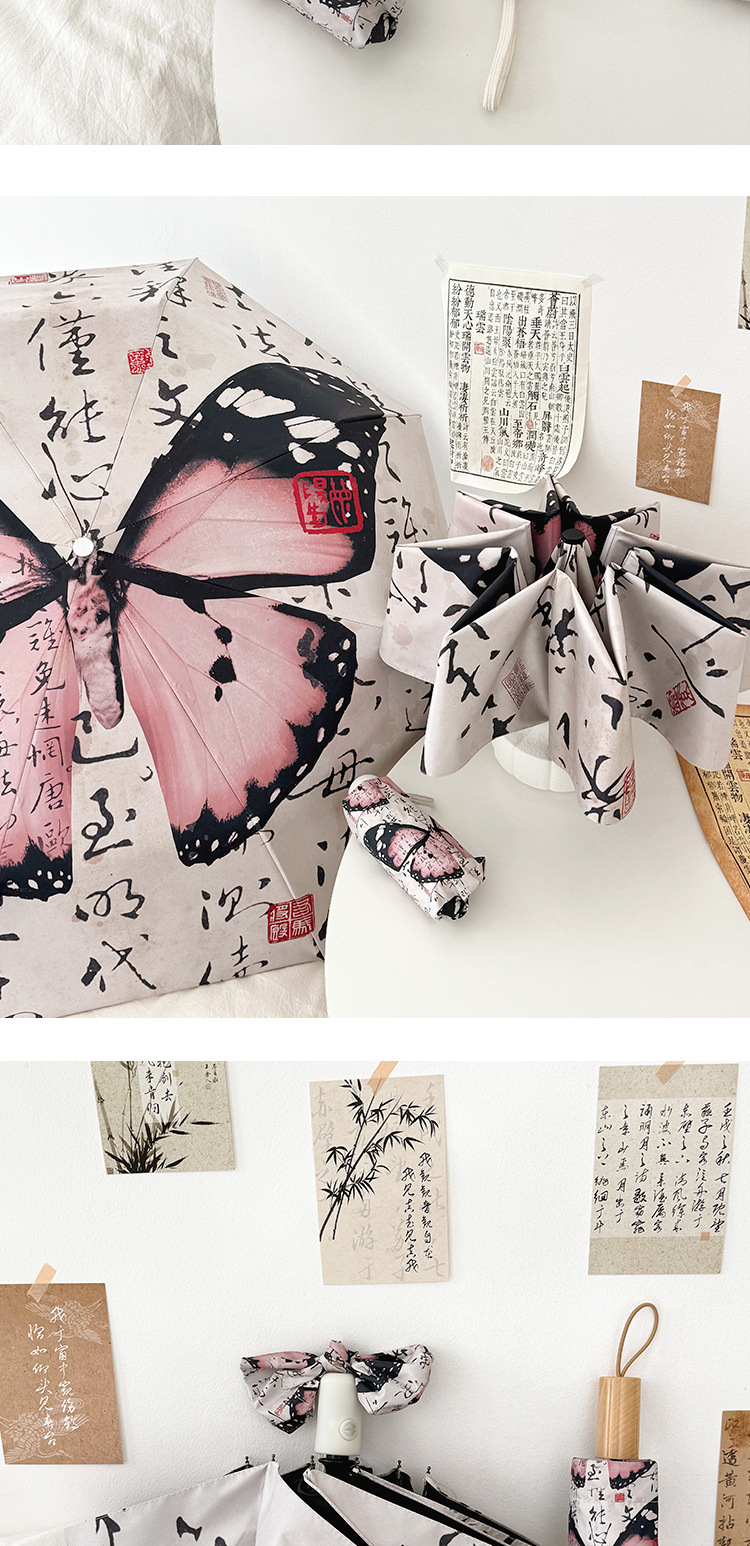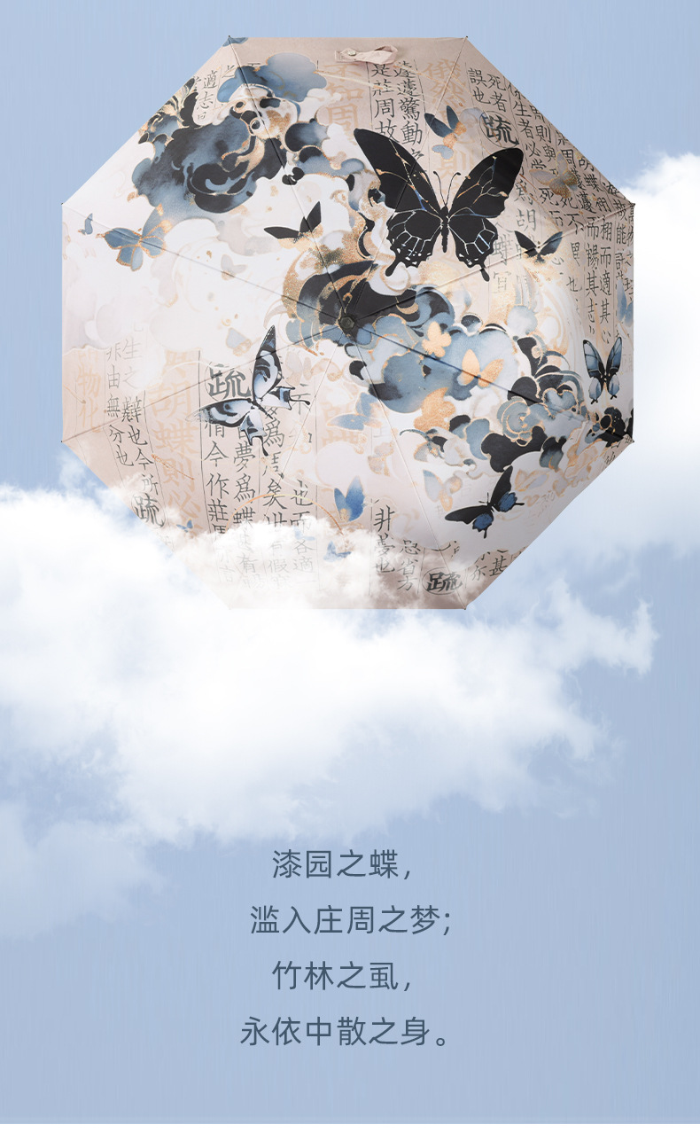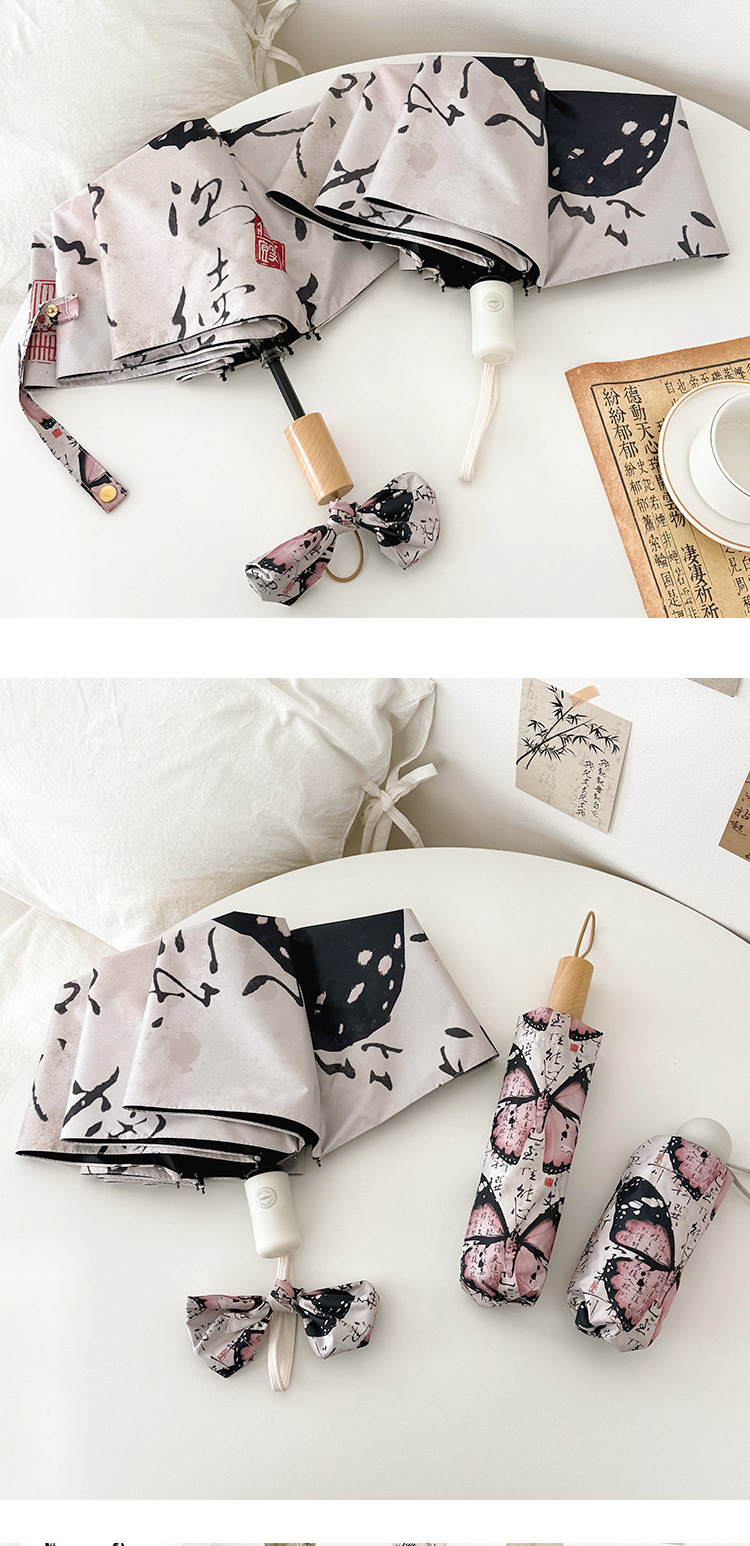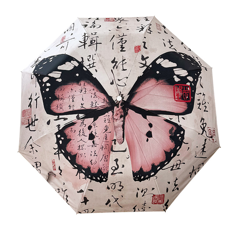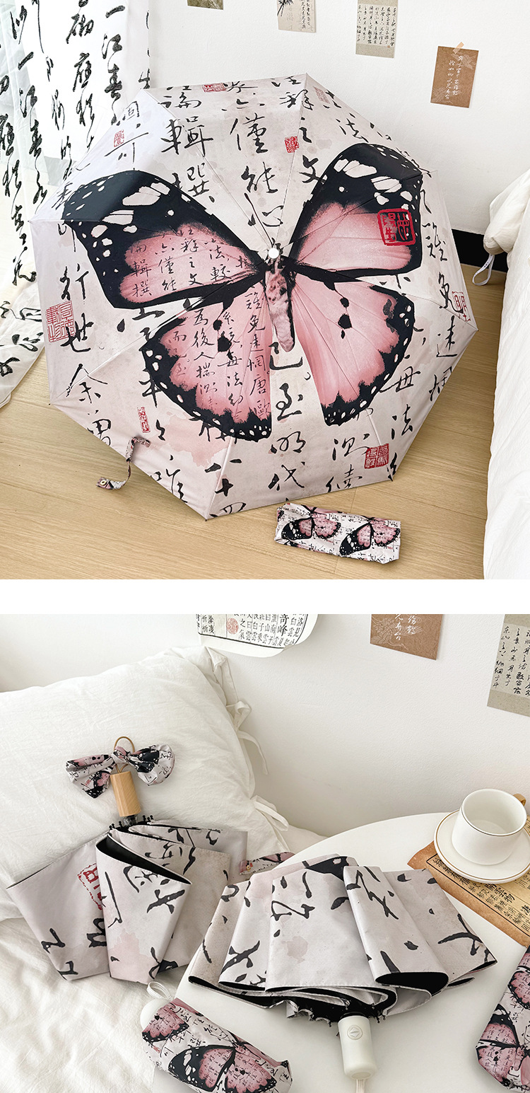 新国风蝴蝶雨伞女防晒防紫外线晴雨两用全自动学生折叠便携太阳伞