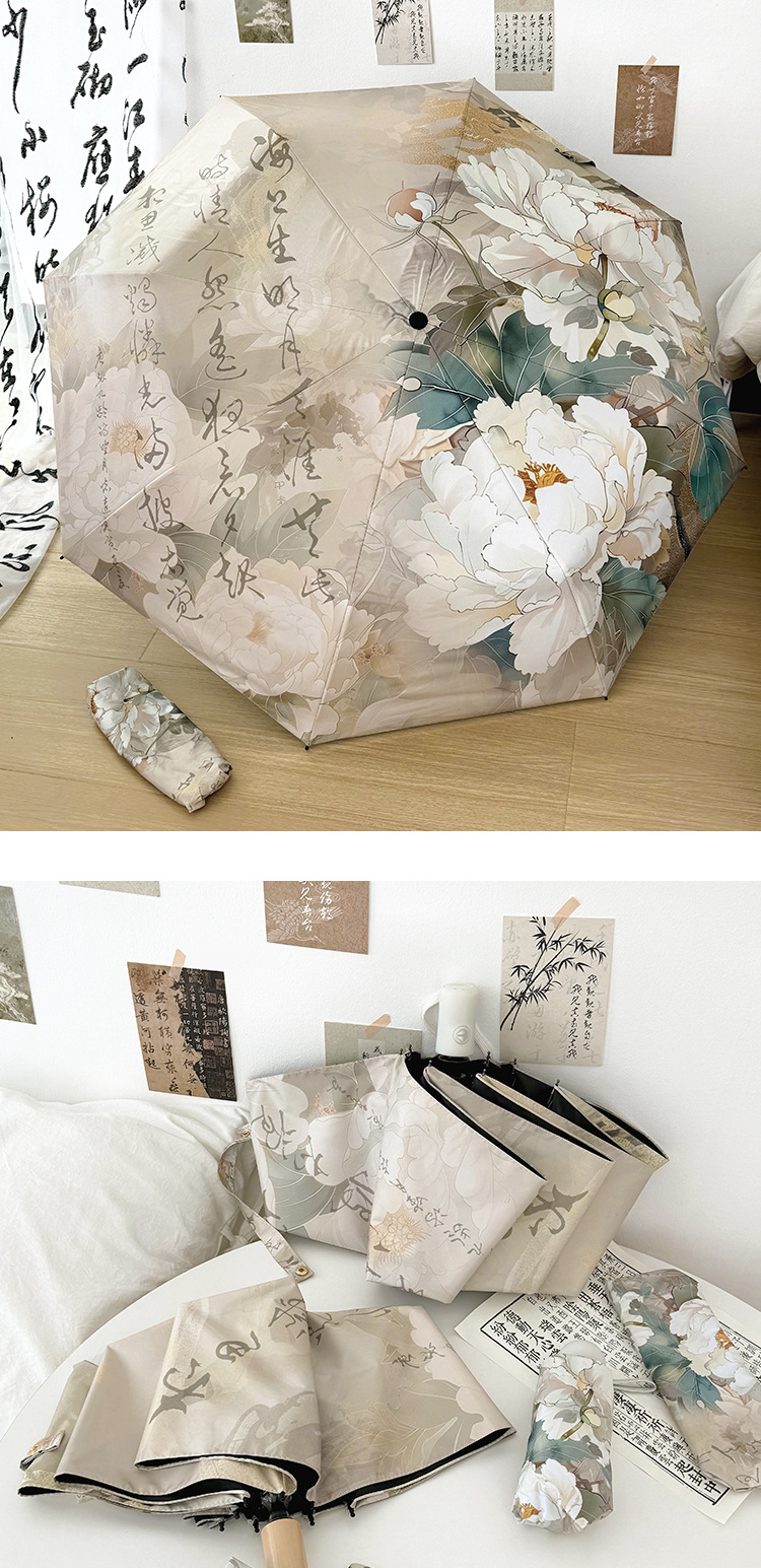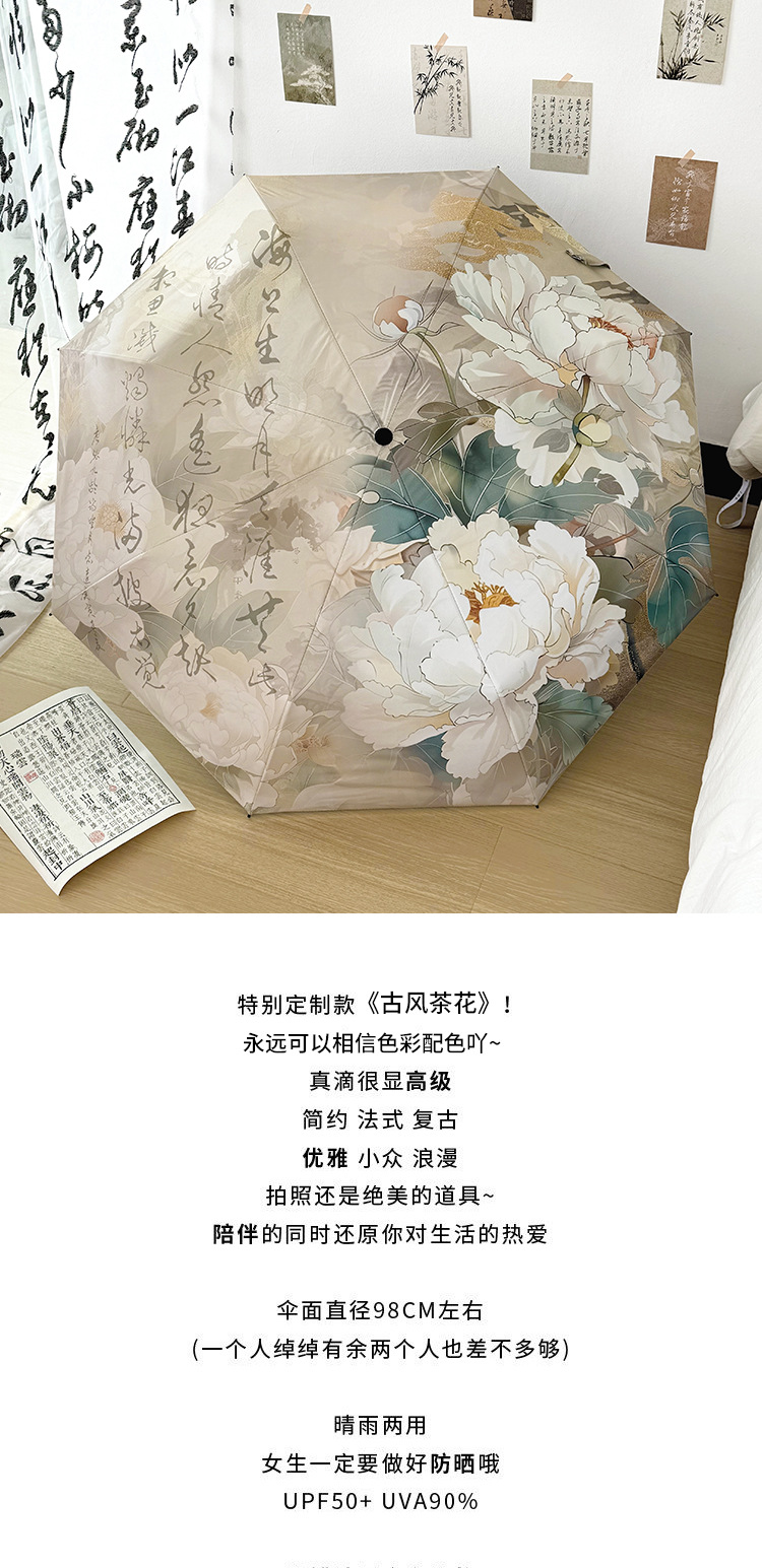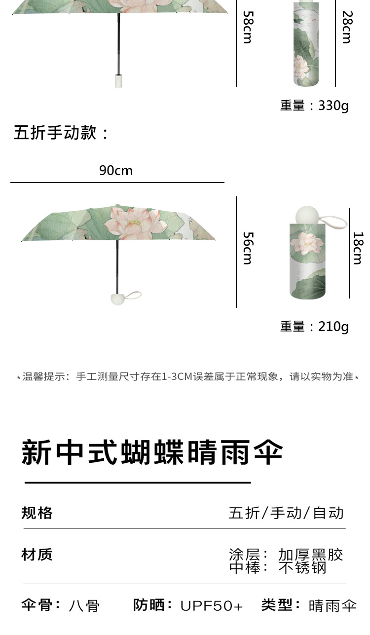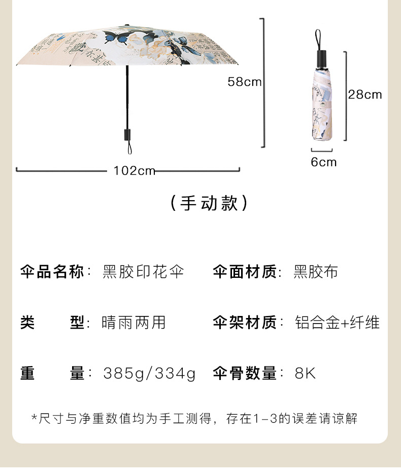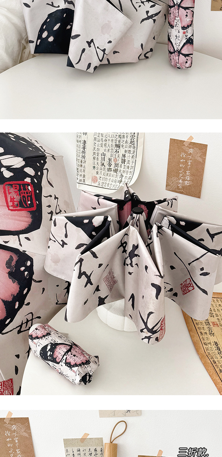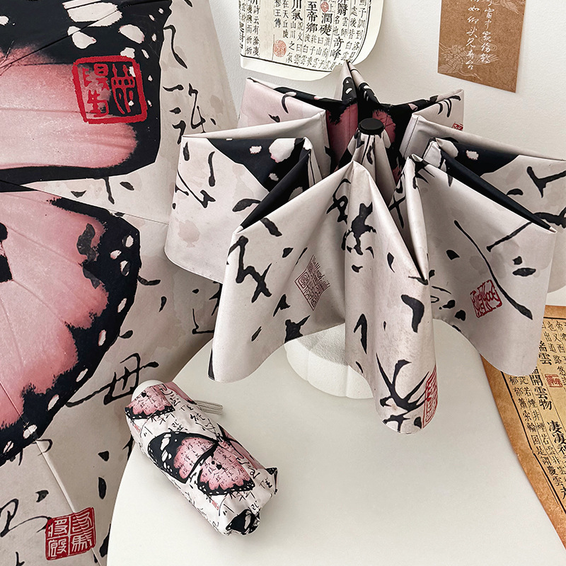新国风蝴蝶雨伞女防晒防紫外线晴雨两用全自动学生折叠便携太阳伞