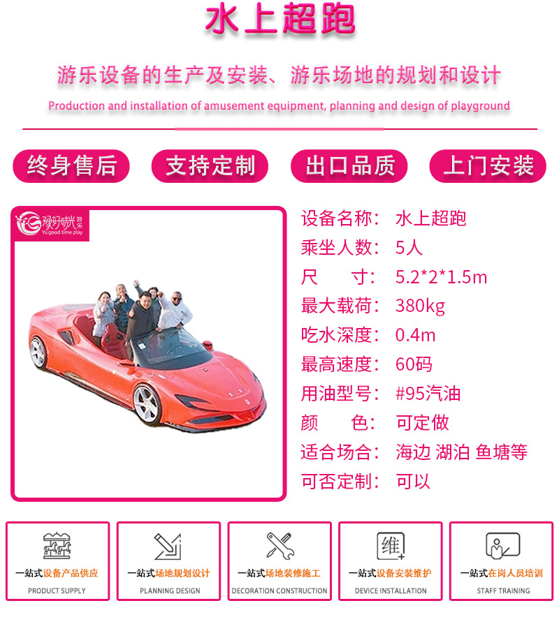 网红水上法拉利超跑船旅游船豪华休闲海上冲浪快艇水上跑车卡丁船