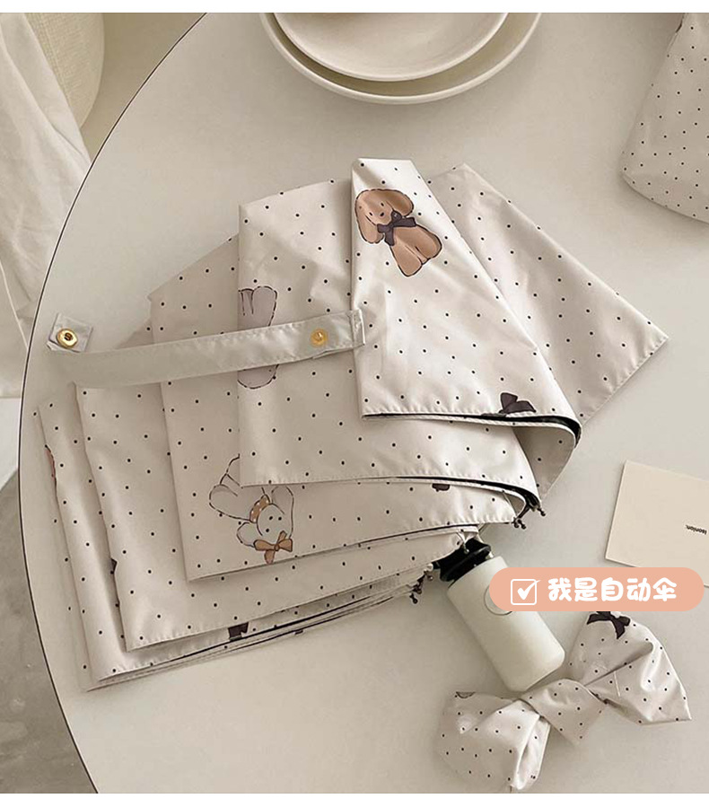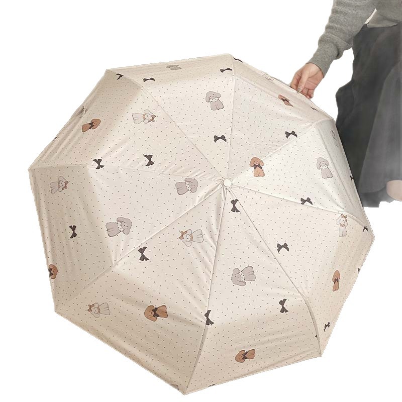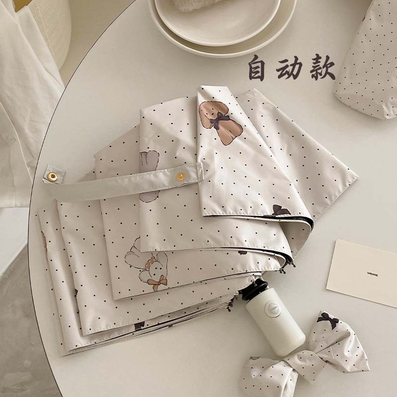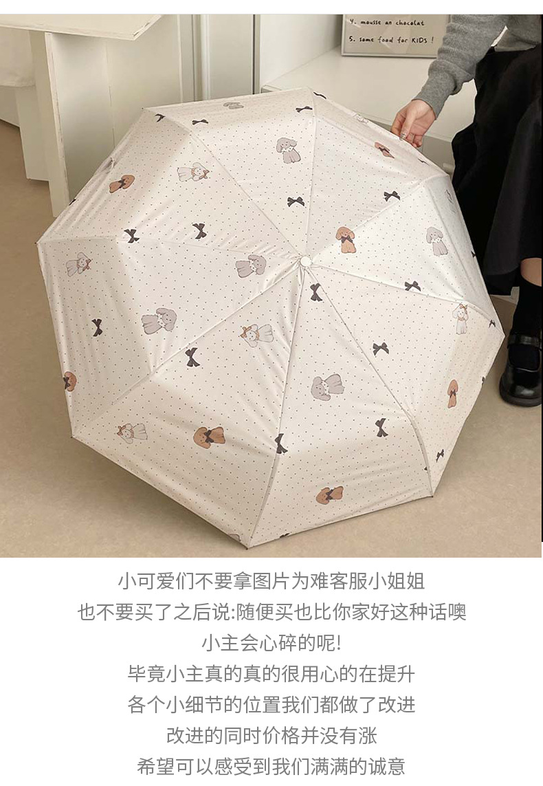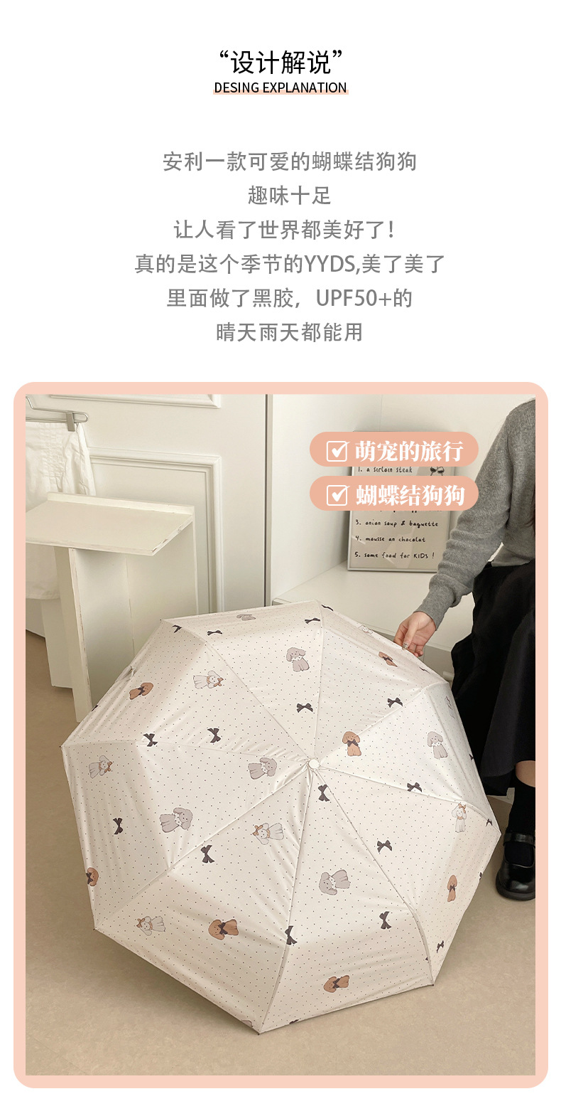 蝴蝶结狗狗晴雨两用折叠伞防晒防紫外线少女遮阳全自动黑胶太阳伞