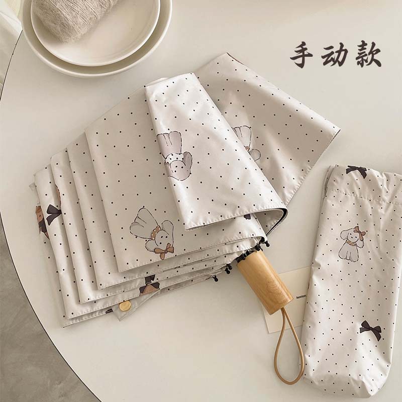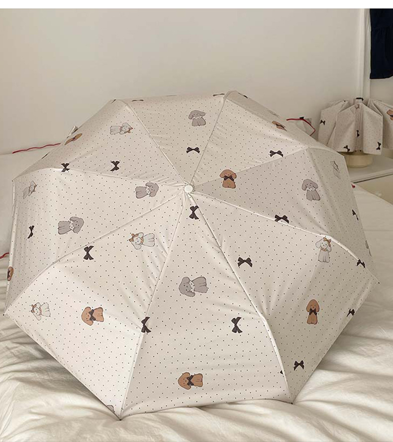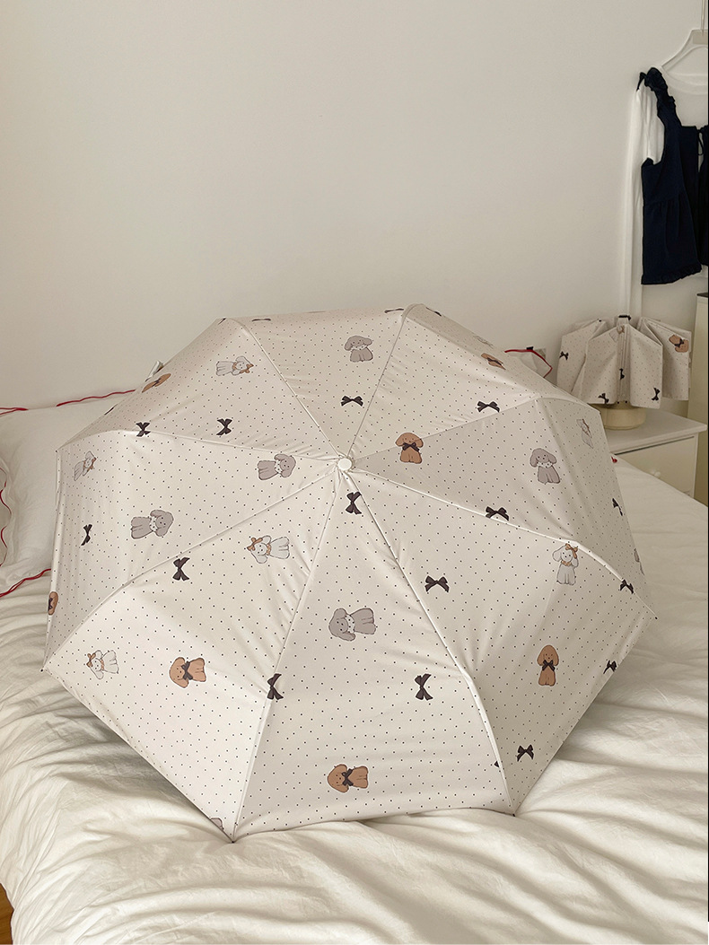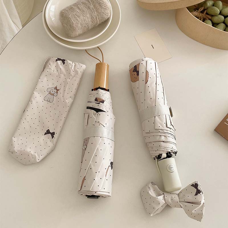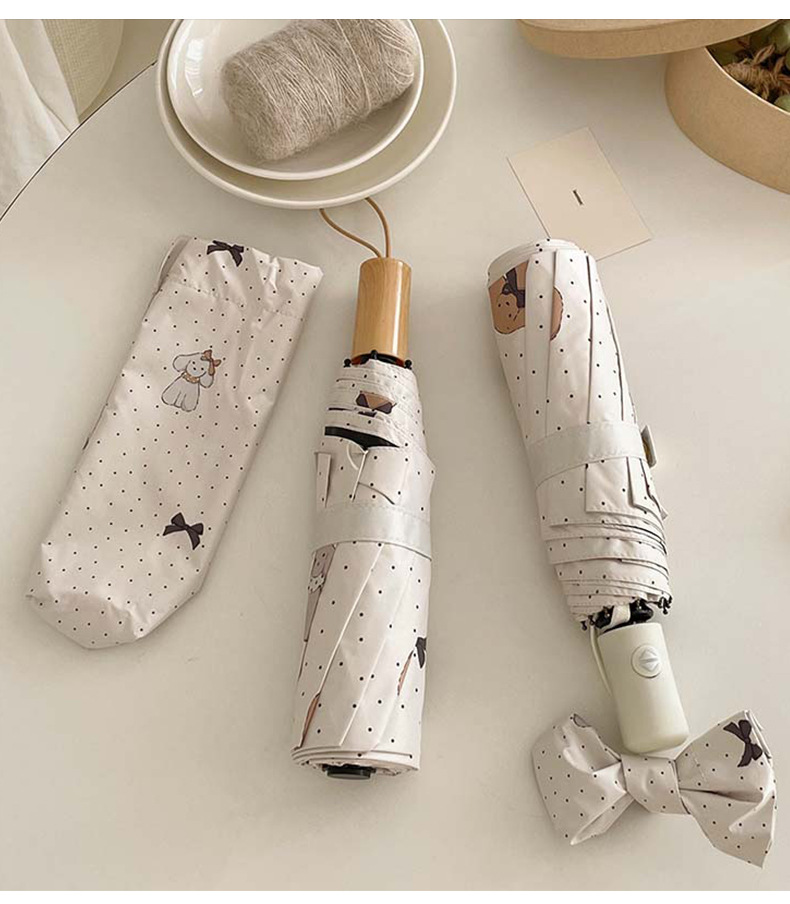 蝴蝶结狗狗晴雨两用折叠伞防晒防紫外线少女遮阳全自动黑胶太阳伞