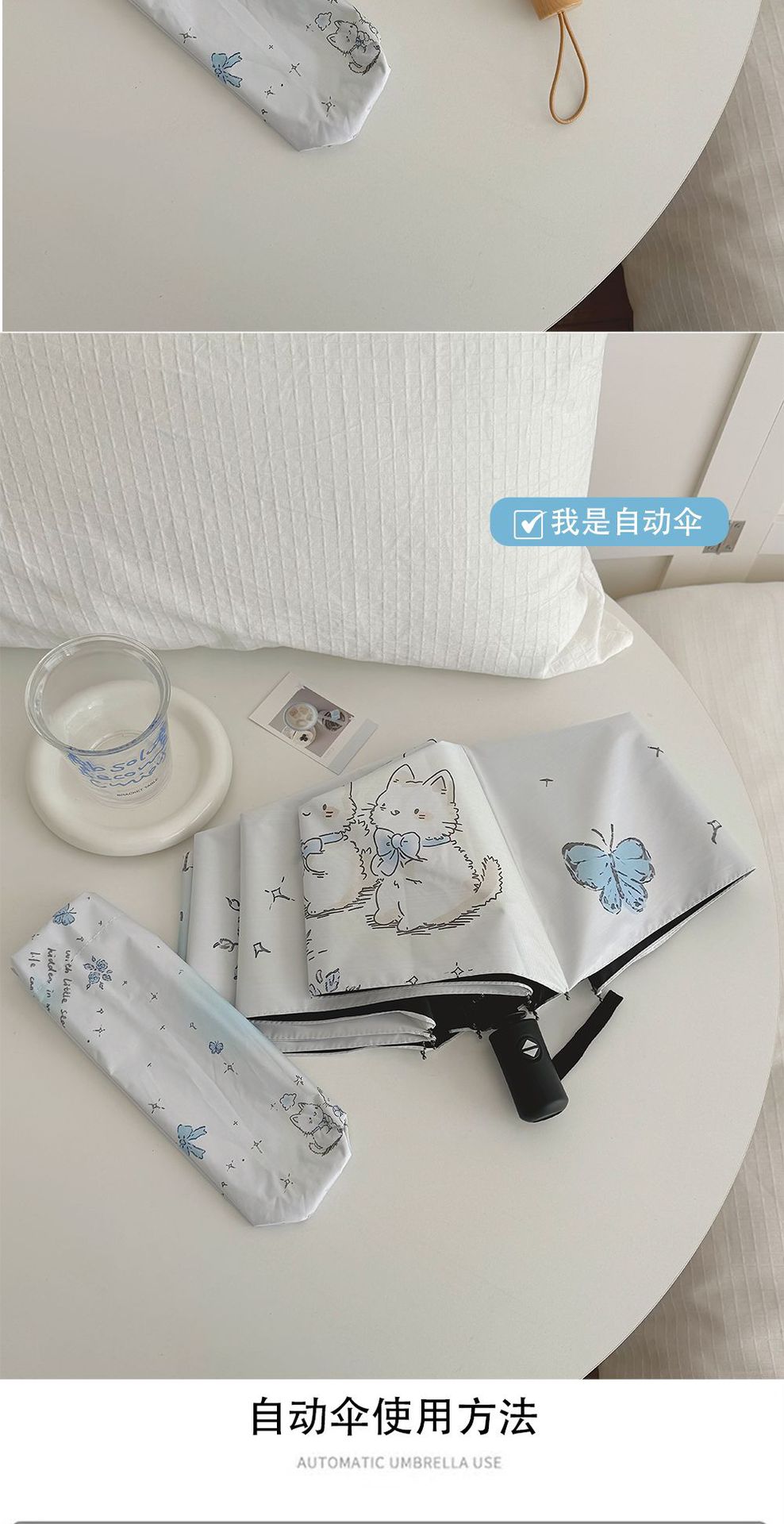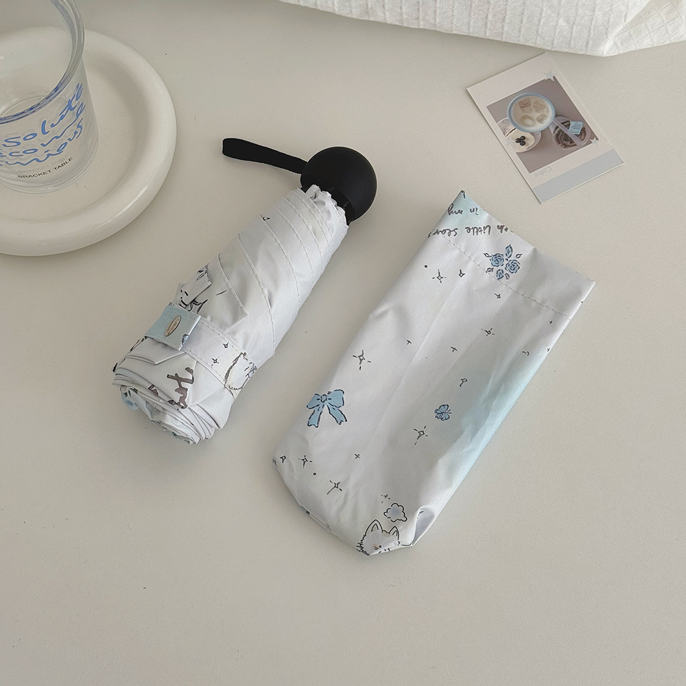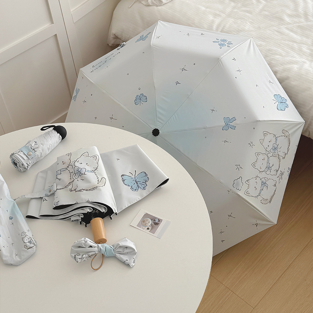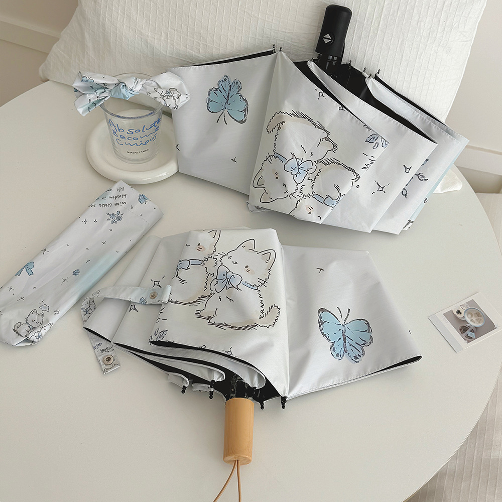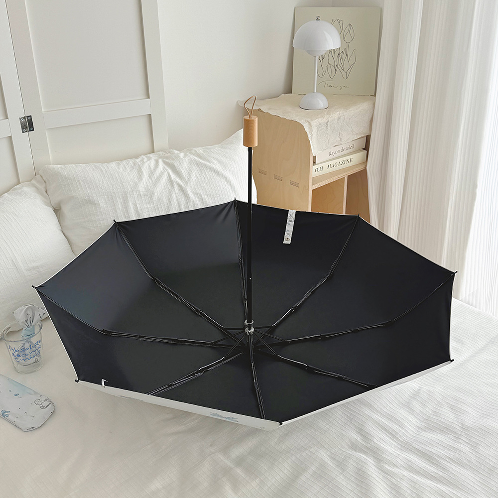 跨境日韩自动伞遮阳伞女小清新花色防晒伞晴雨两用黑胶五折太阳伞