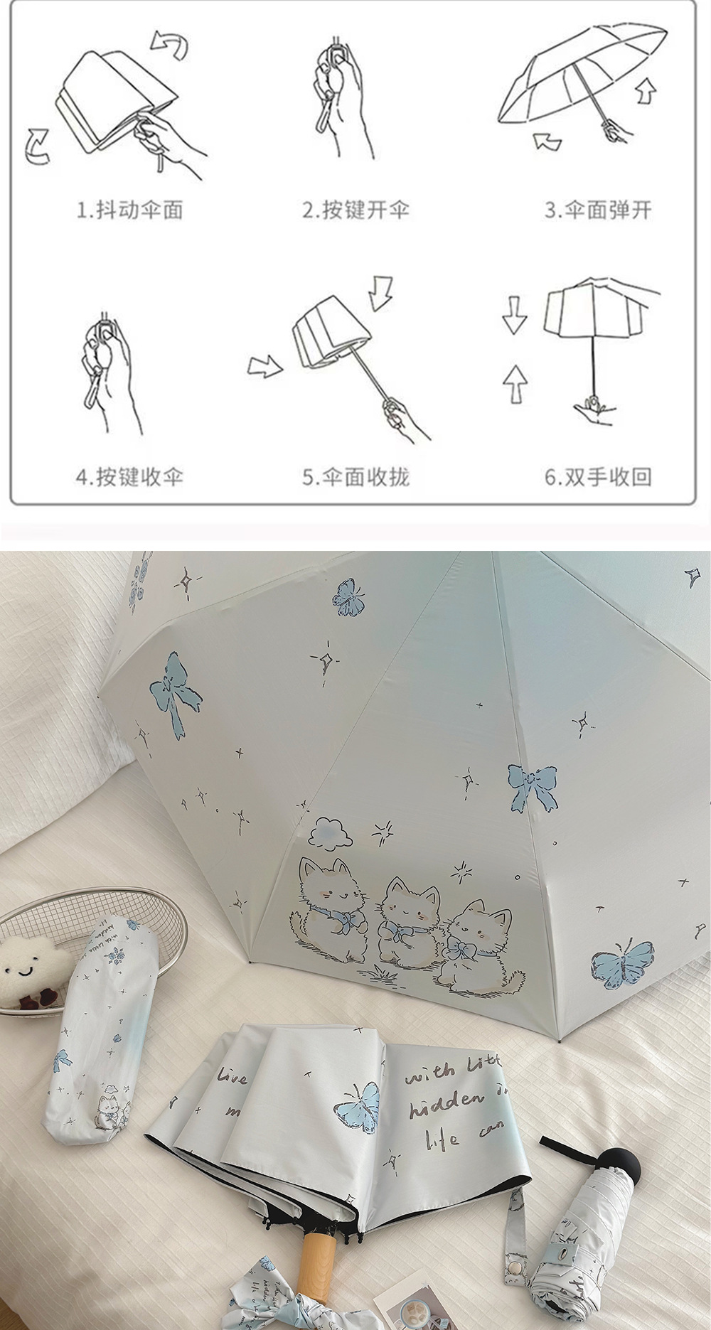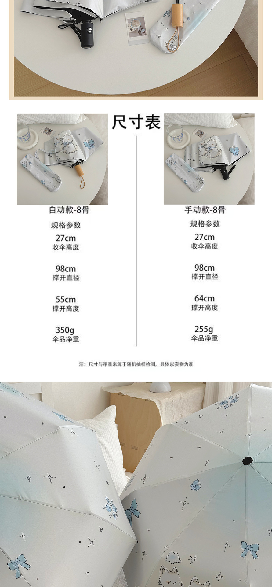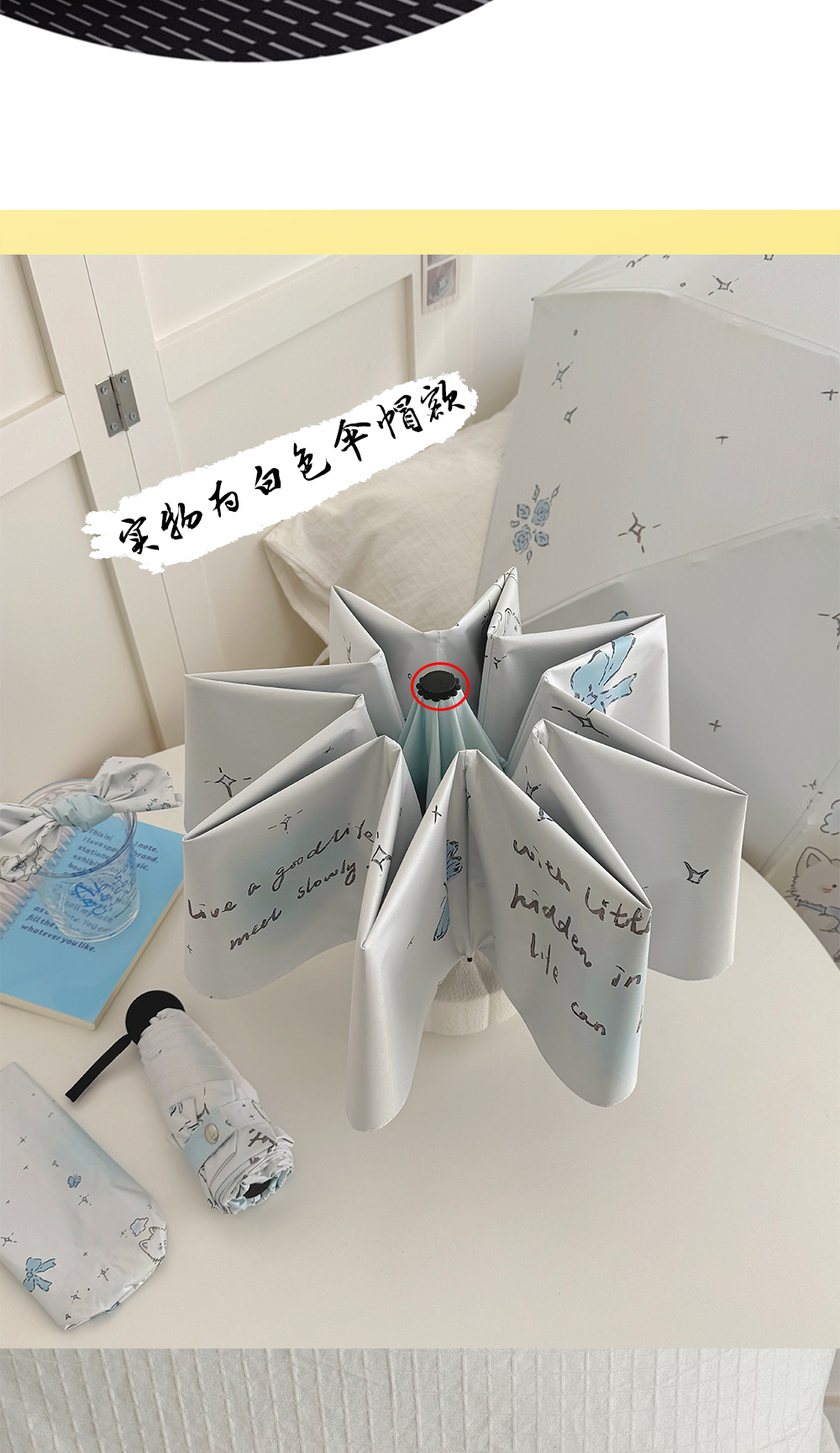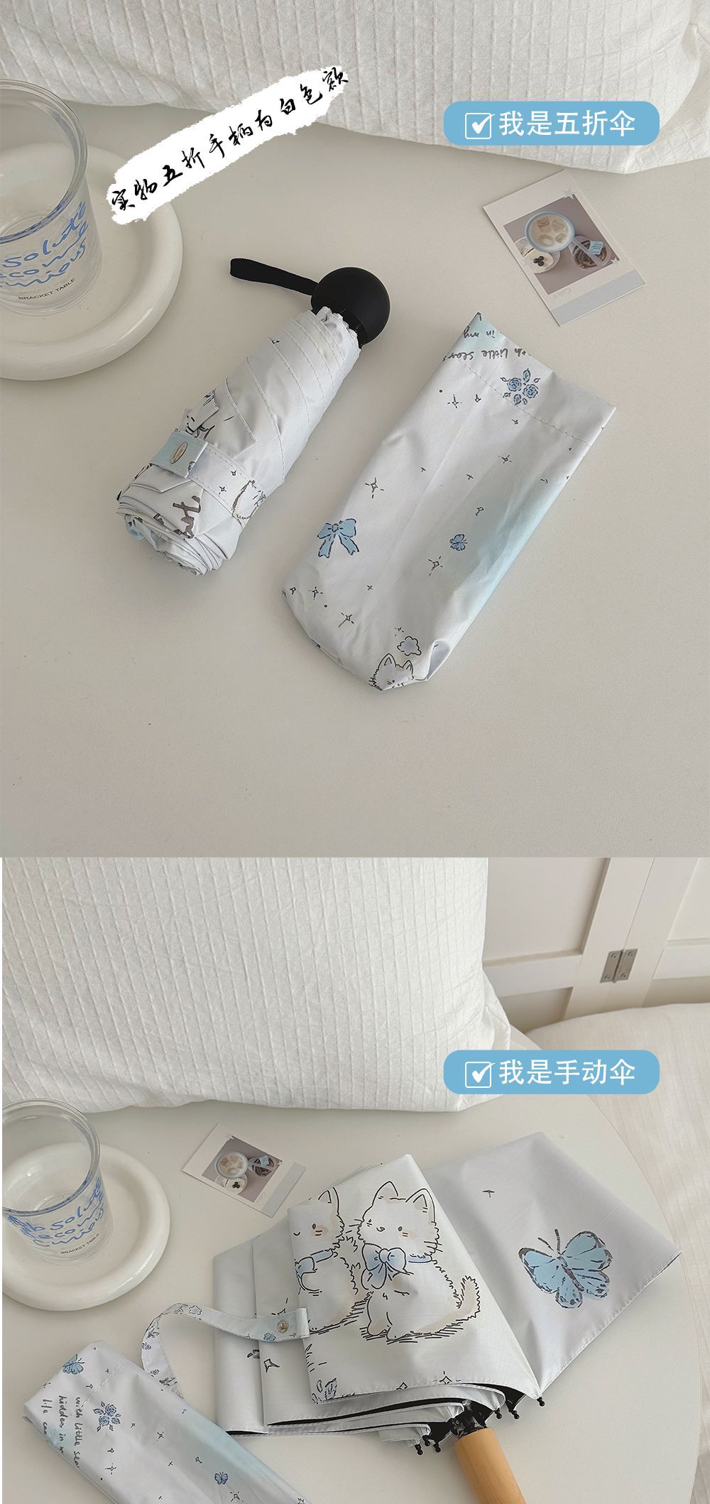 跨境日韩自动伞遮阳伞女小清新花色防晒伞晴雨两用黑胶五折太阳伞