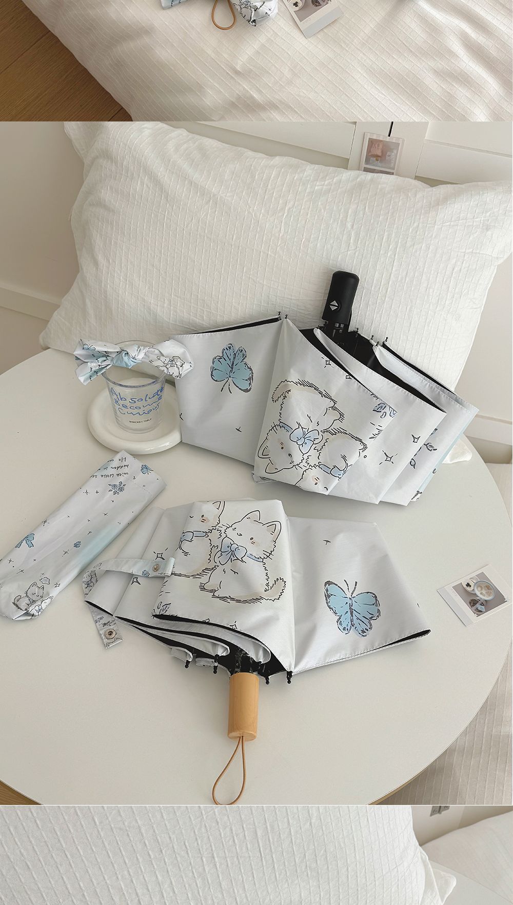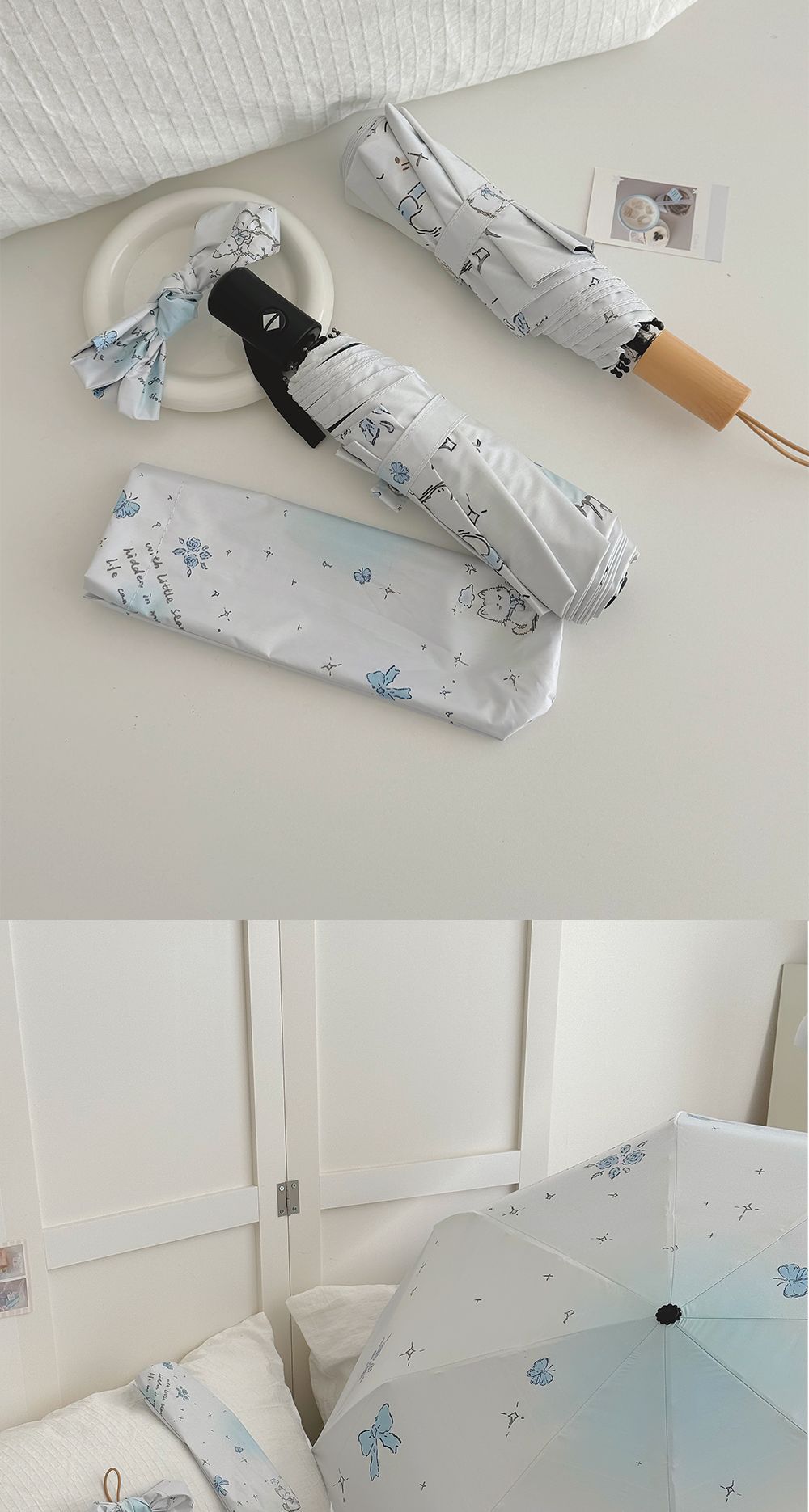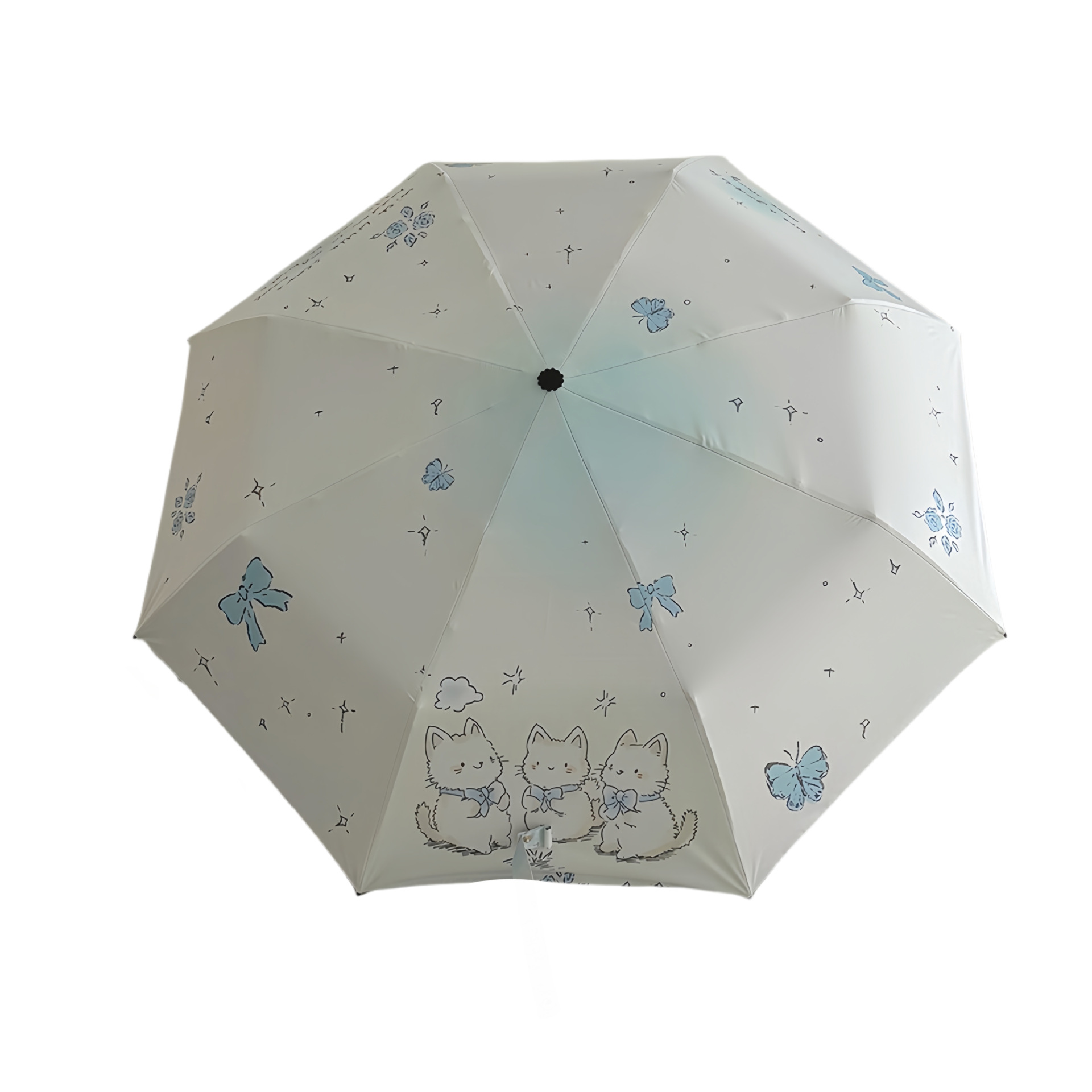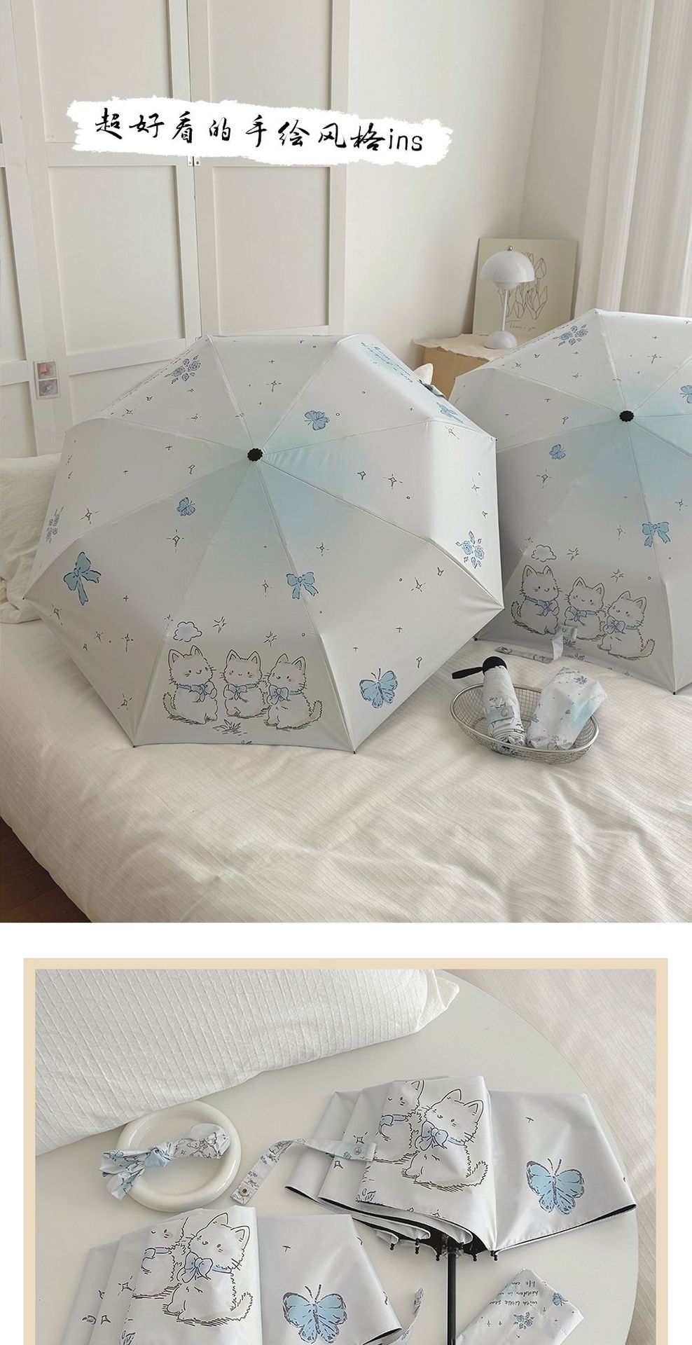 跨境日韩自动伞遮阳伞女小清新花色防晒伞晴雨两用黑胶五折太阳伞