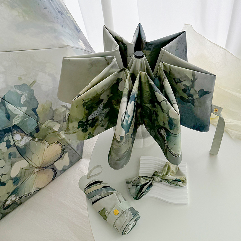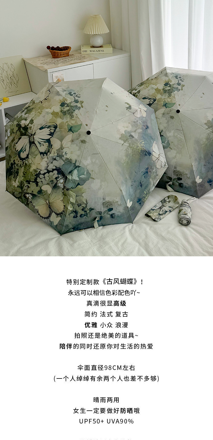 油画风梵高全自动折叠五折两用晴雨伞女防晒遮阳伞太阳伞可印logo