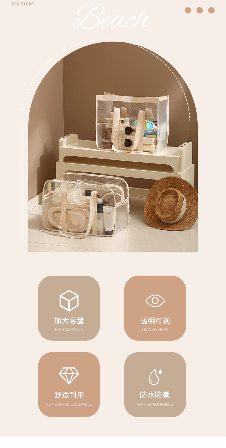 防水防污游泳沙滩包透明果冻包手提便携洗漱包大容量化妆品收纳包