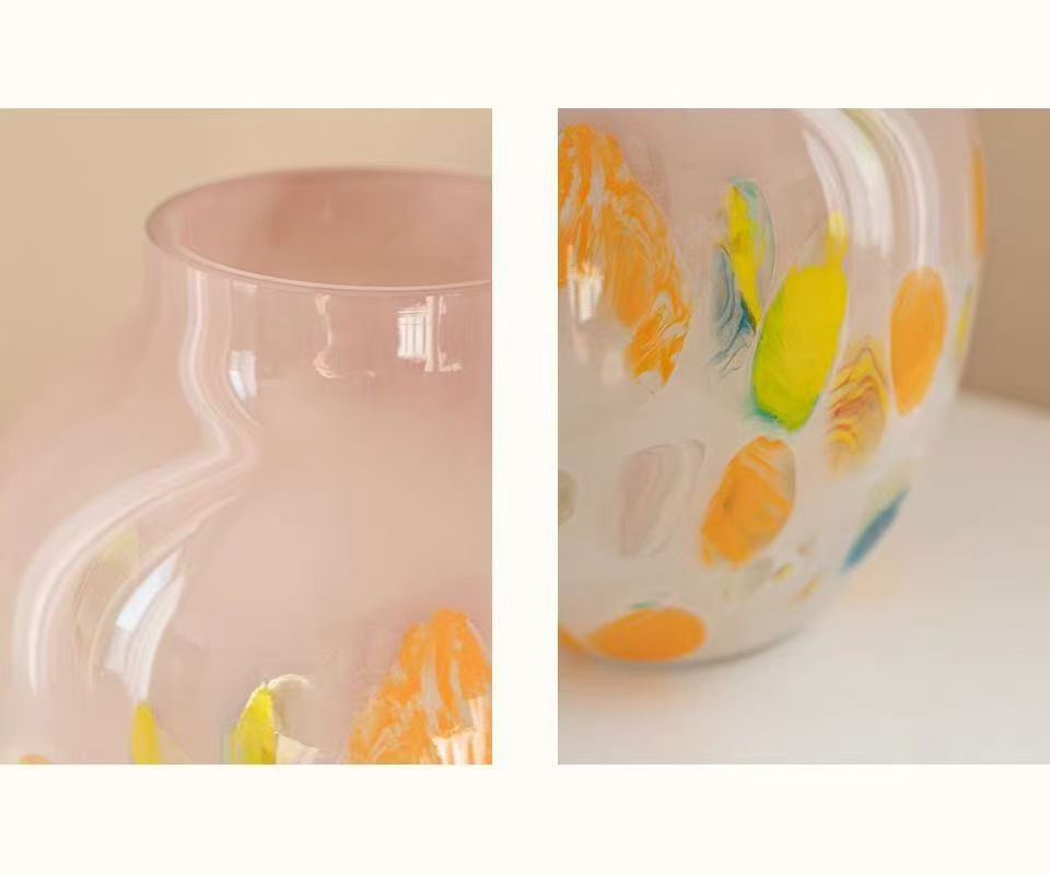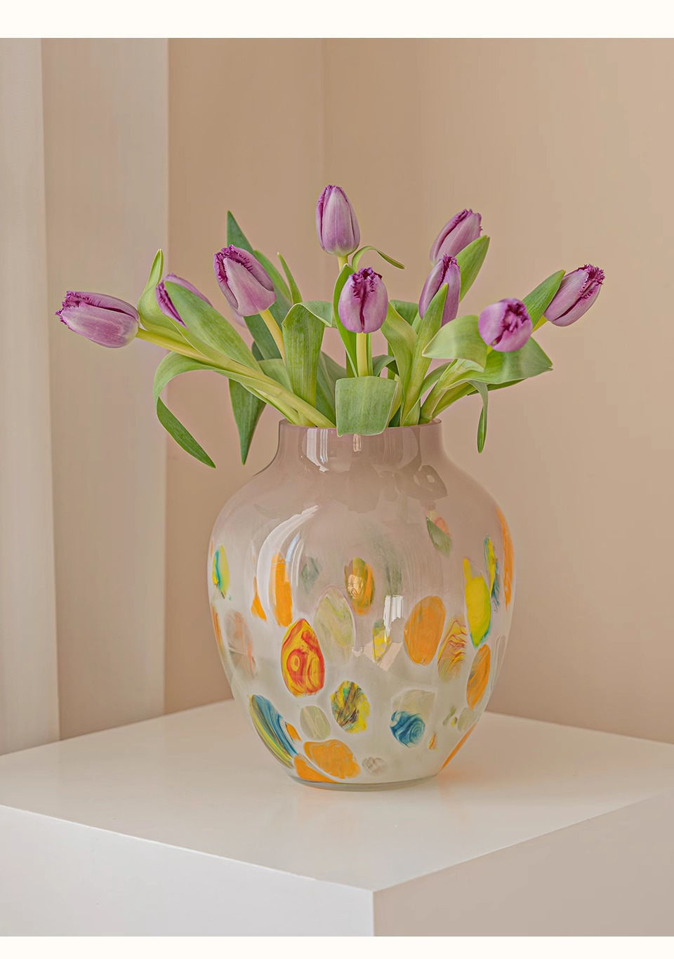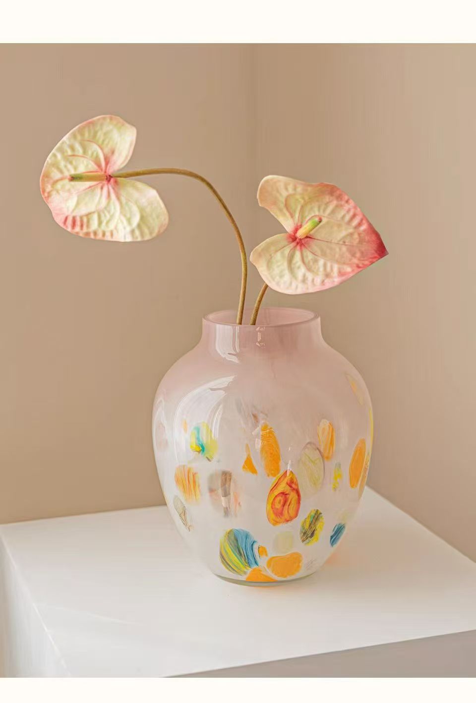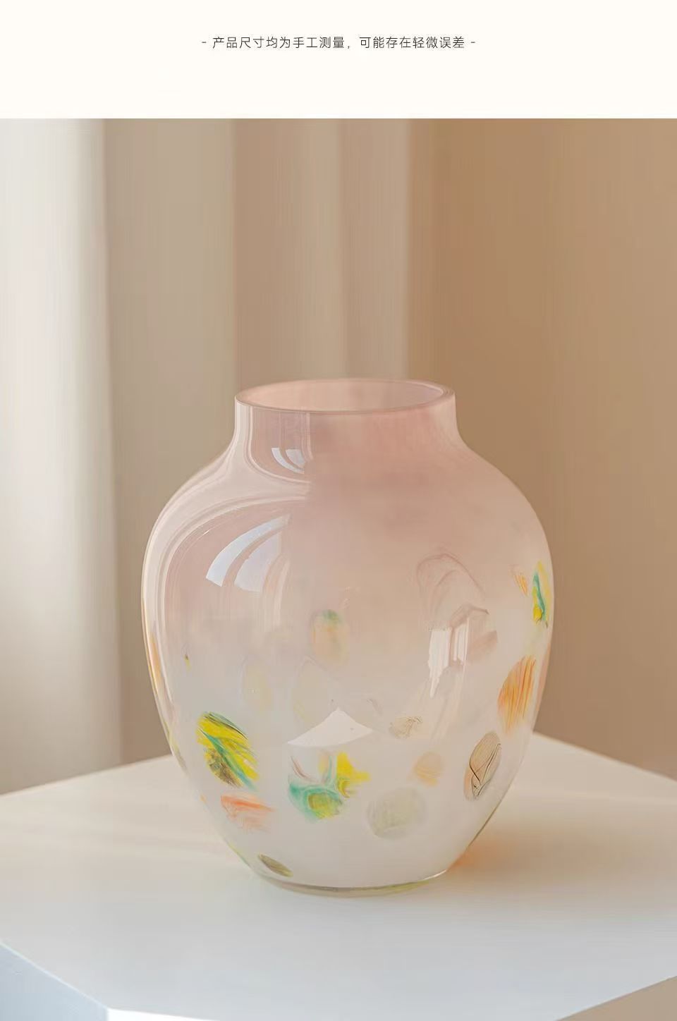 渐变波点彩色琉璃花瓶法式摆件插花复古客厅轻奢琉璃花瓶装饰摆件
