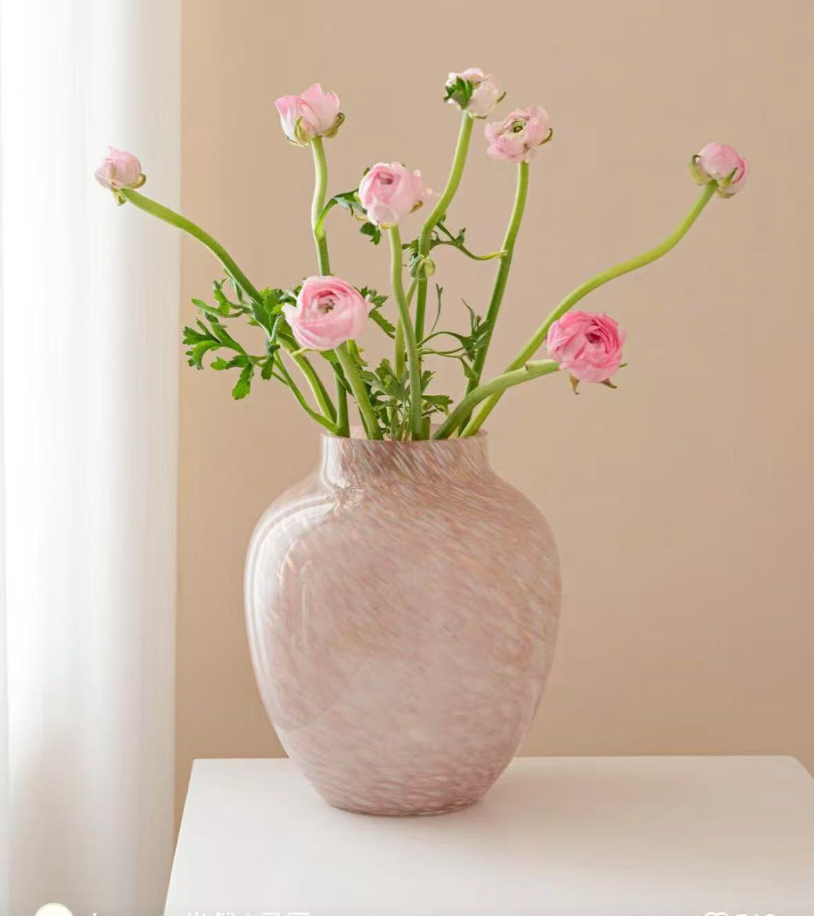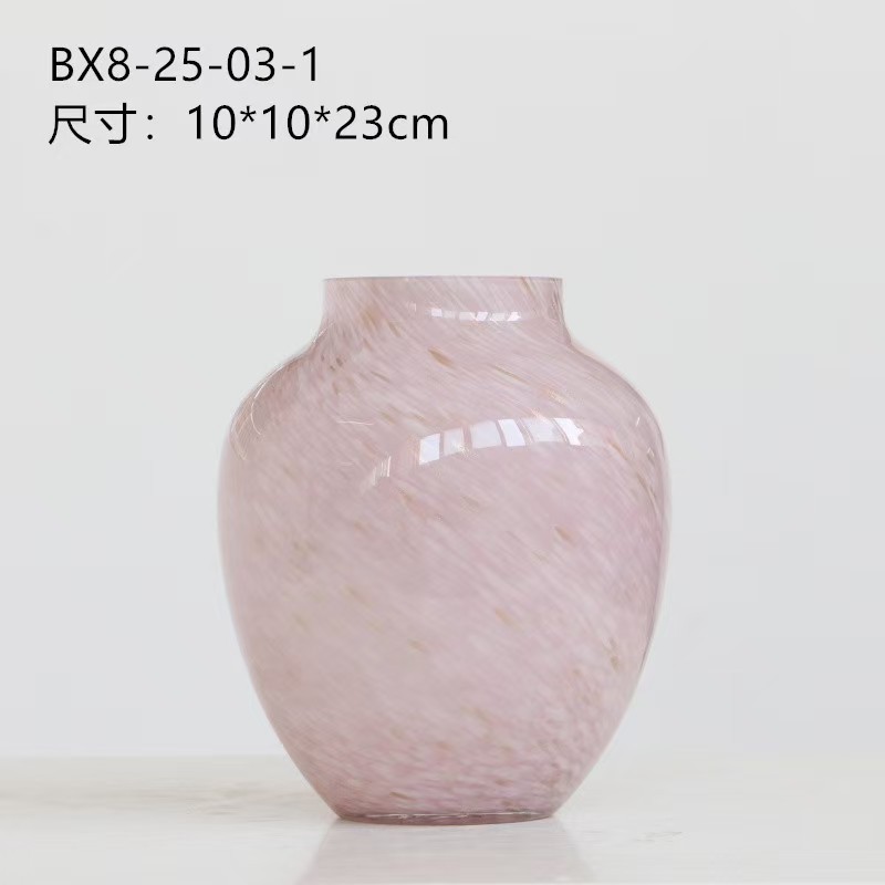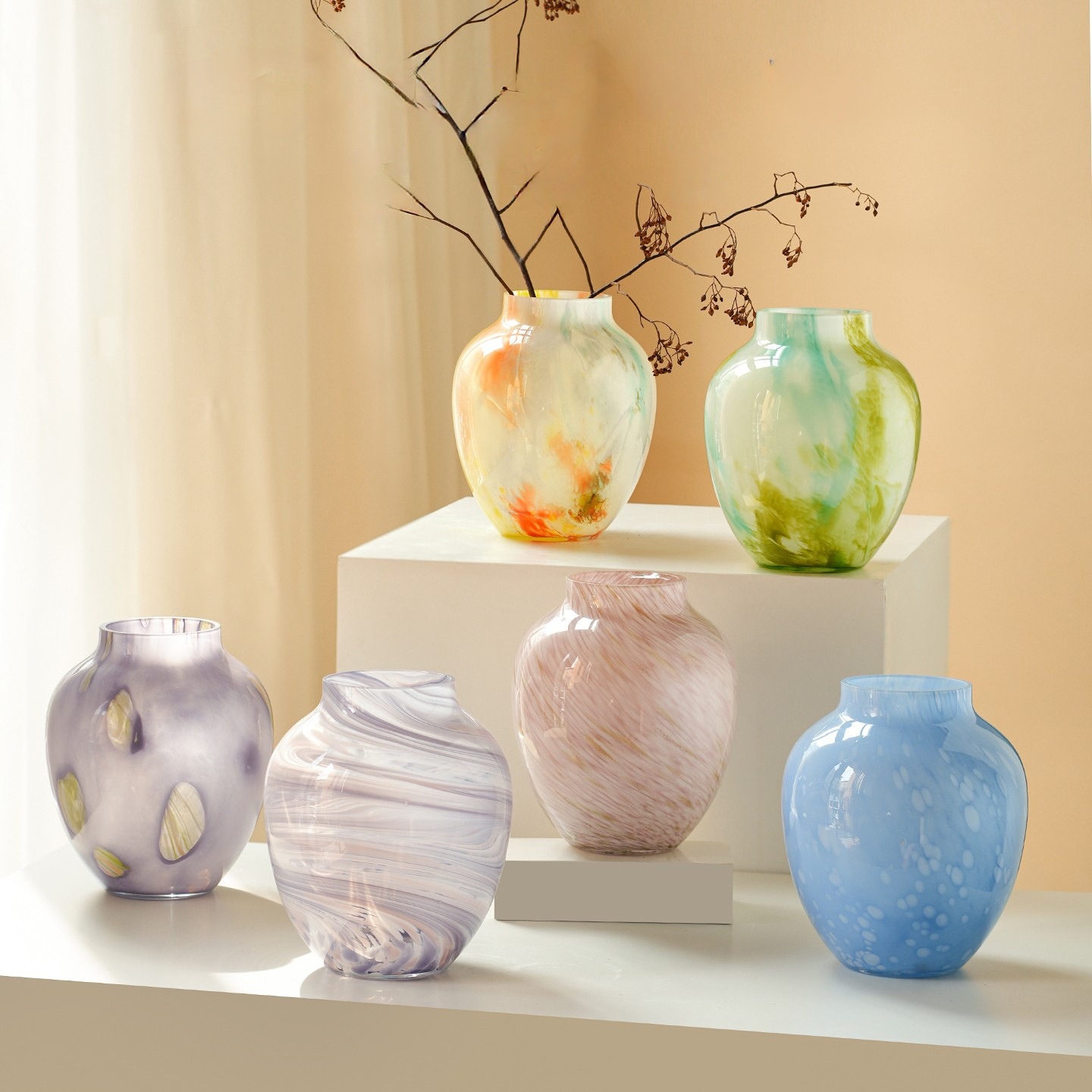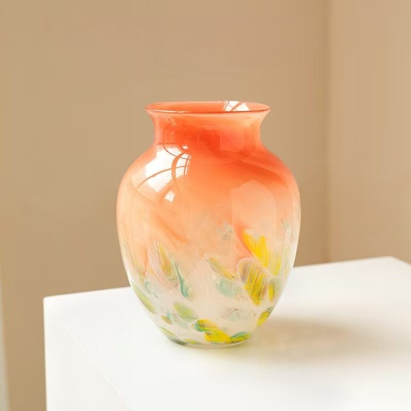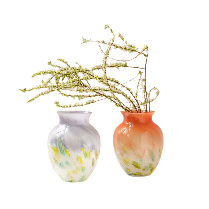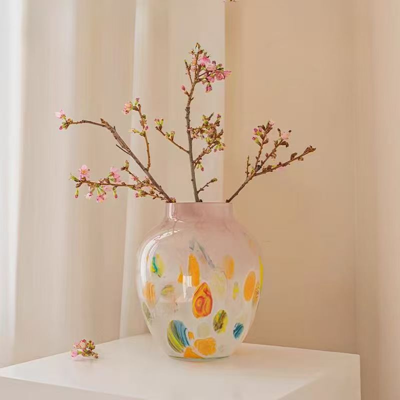 渐变波点彩色琉璃花瓶法式摆件插花复古客厅轻奢琉璃花瓶装饰摆件