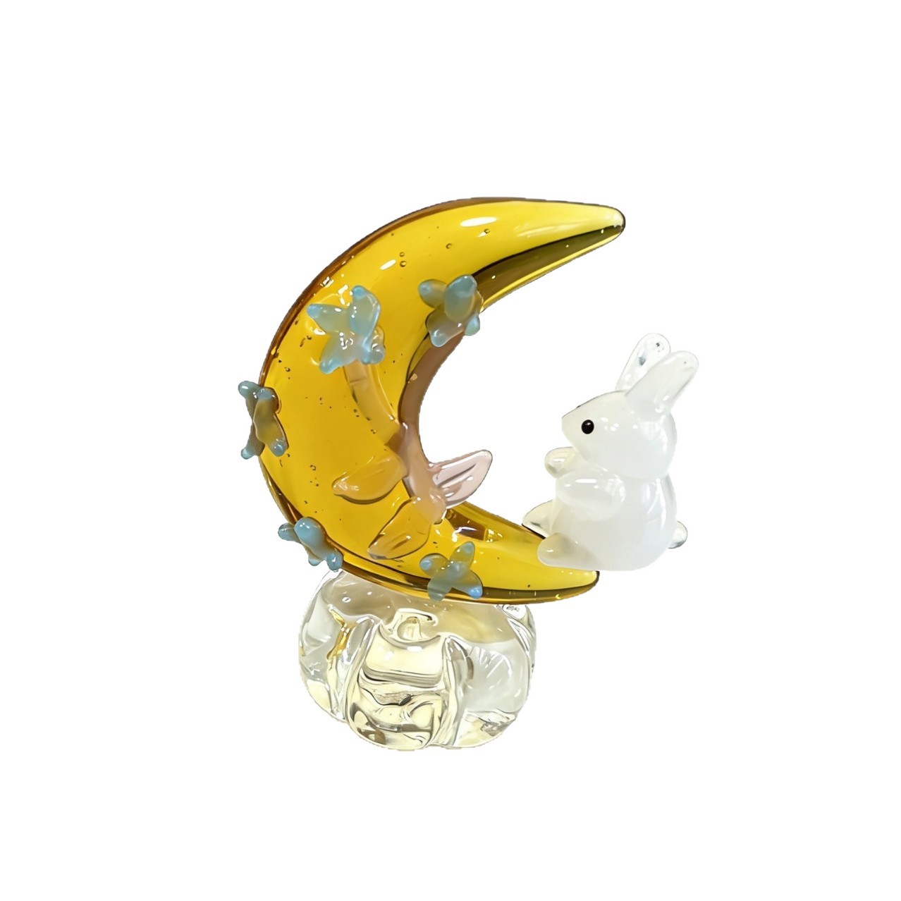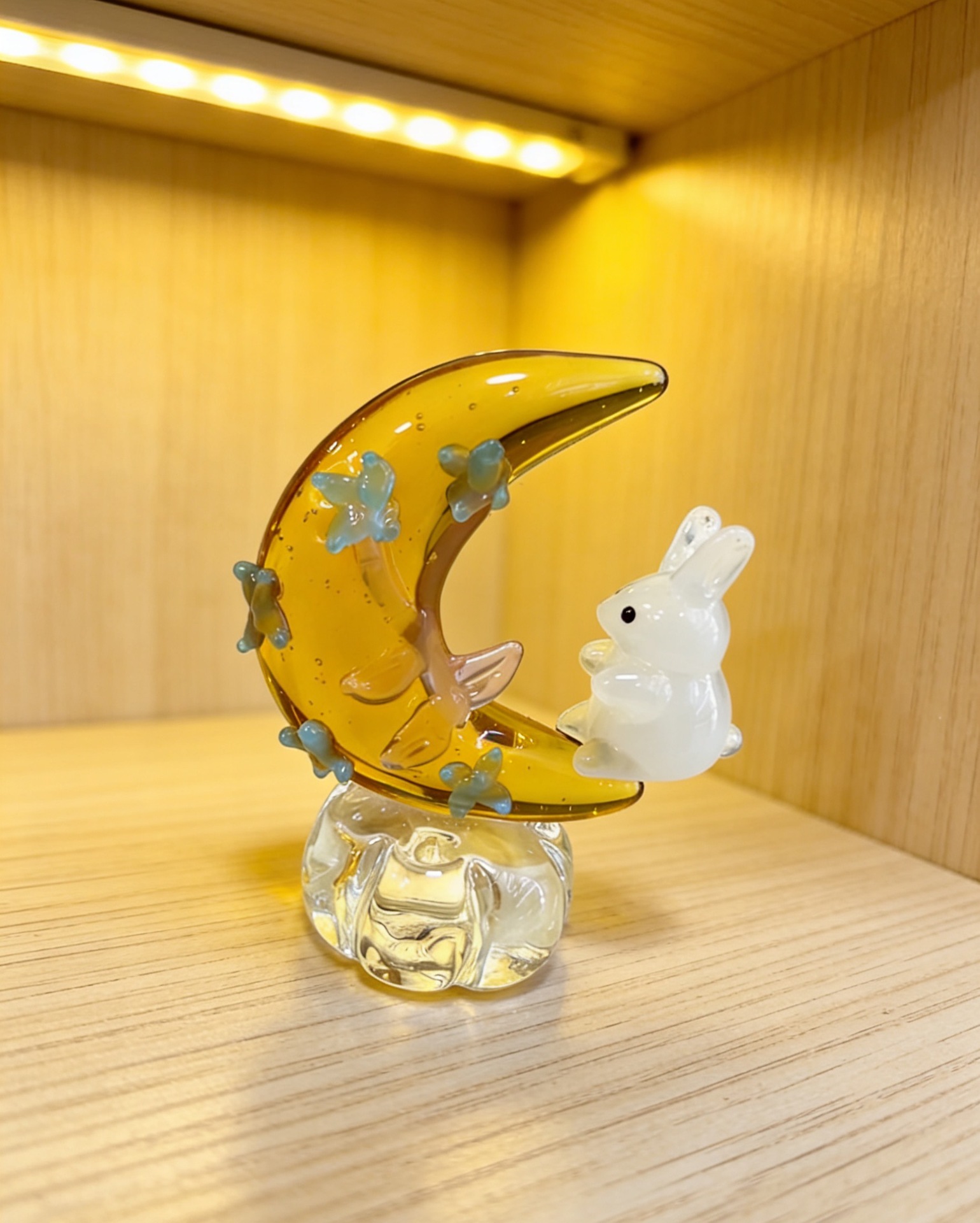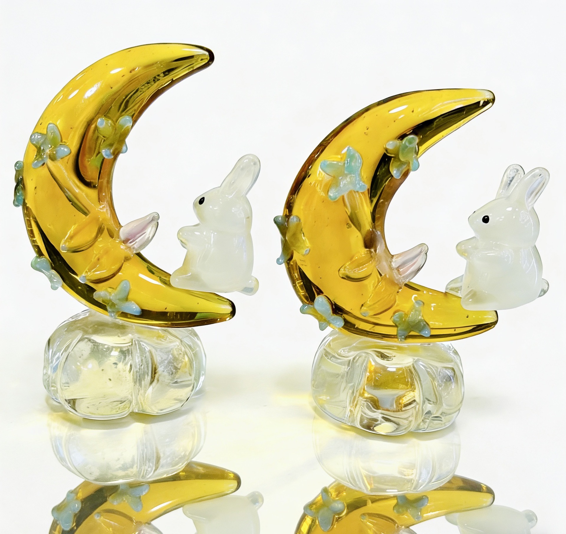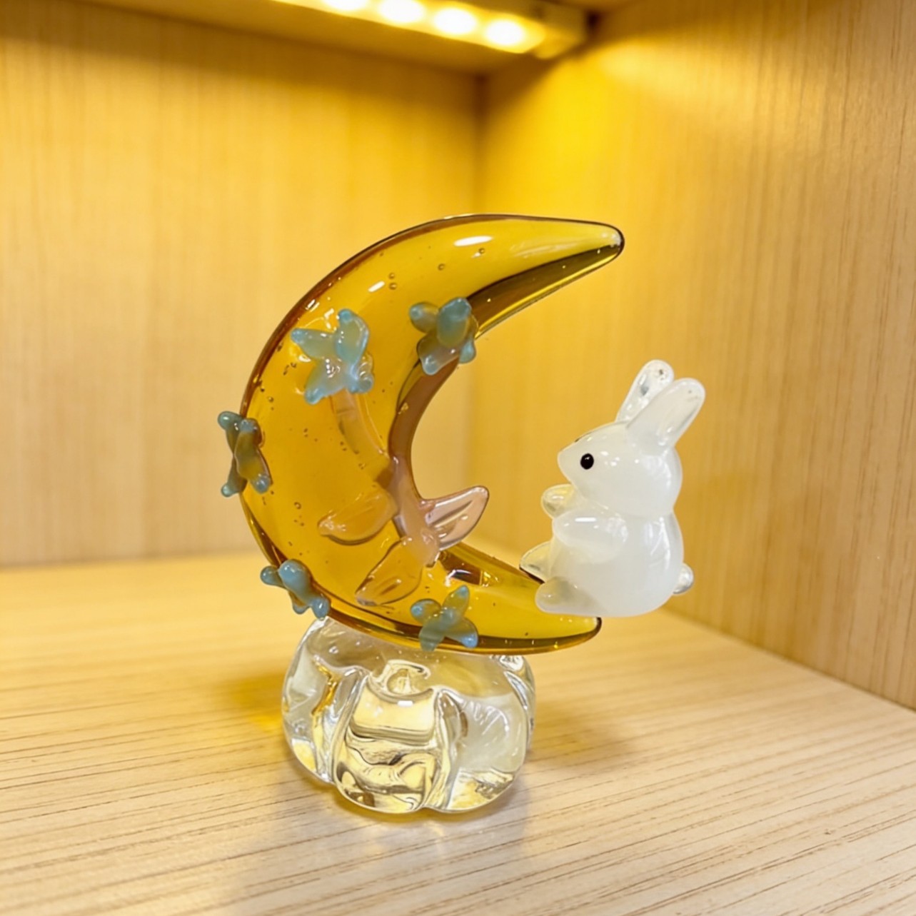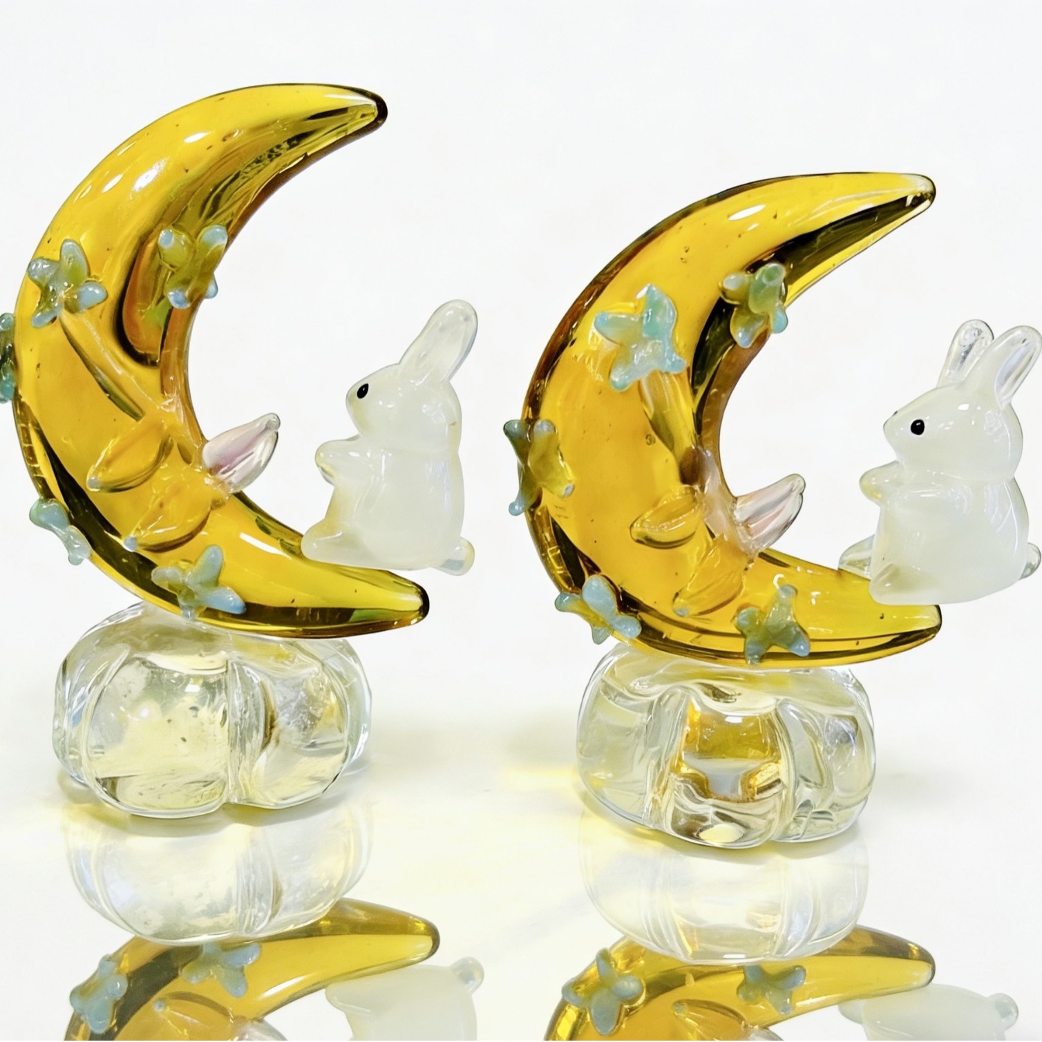 新款月亮桂花兔淄博琉璃灯工琉璃手工制品桌面摆件车载玻璃工艺品