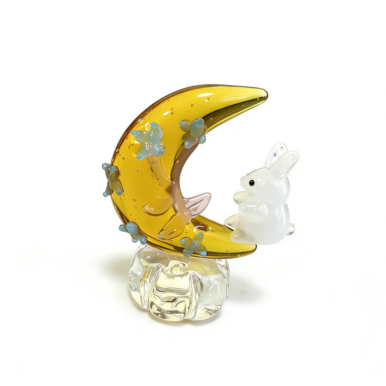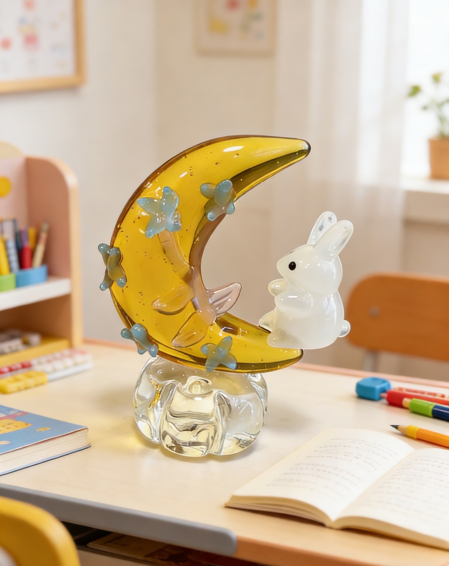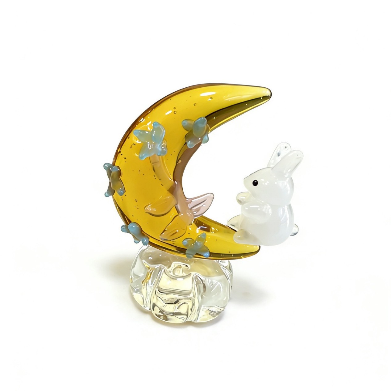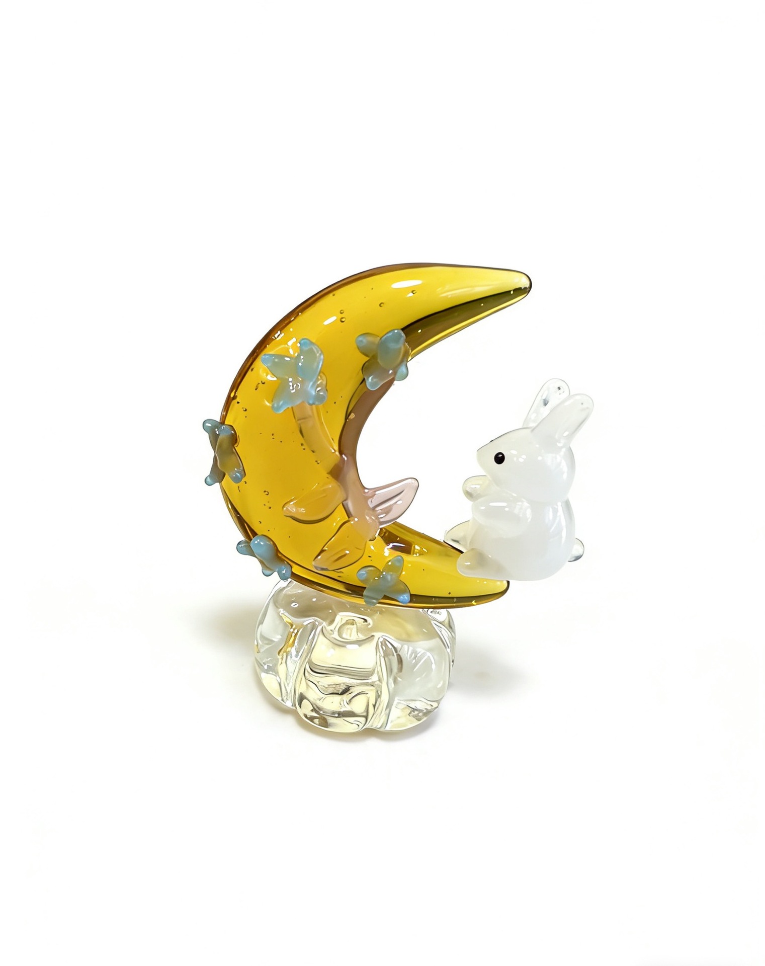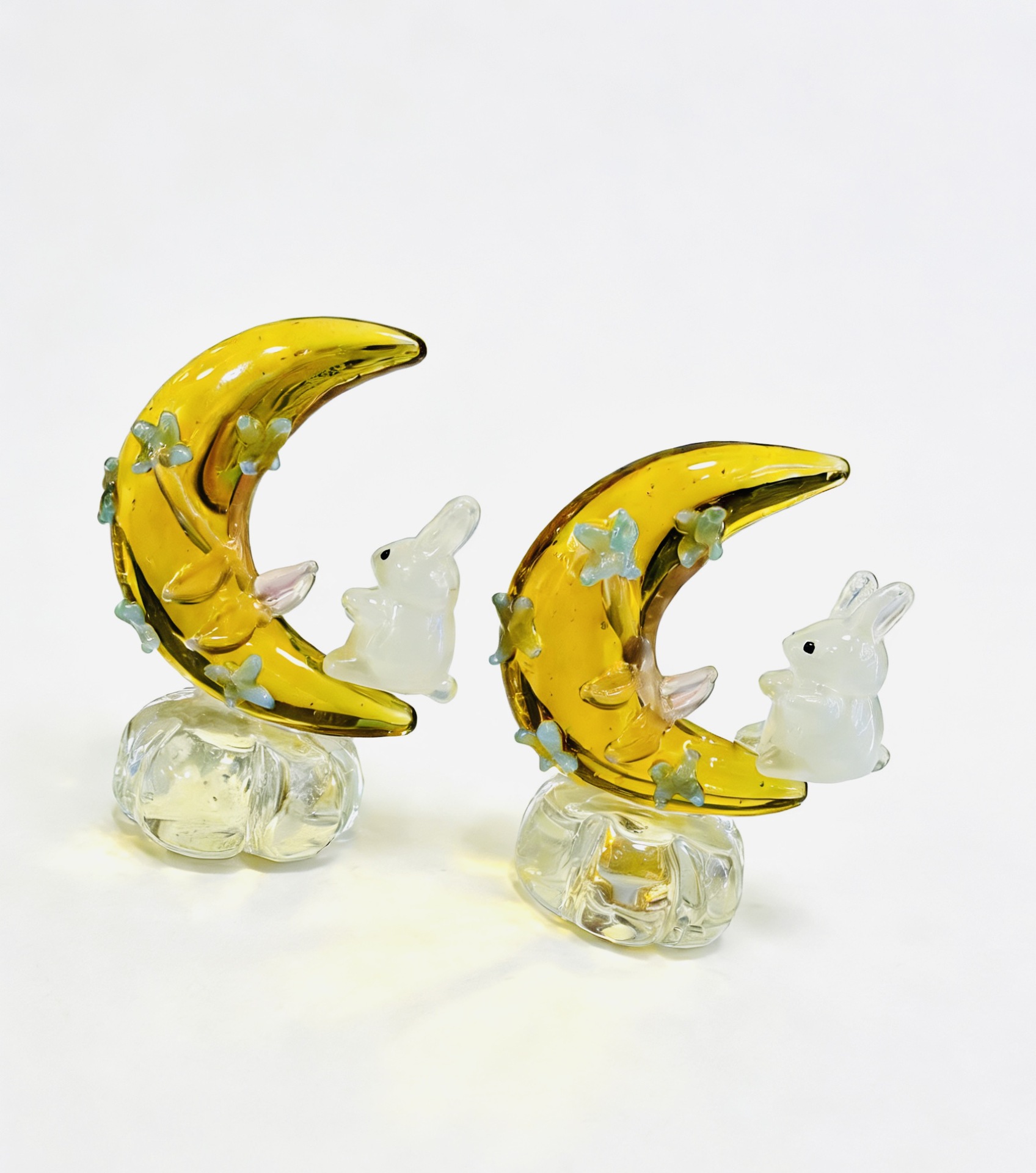 新款月亮桂花兔淄博琉璃灯工琉璃手工制品桌面摆件车载玻璃工艺品