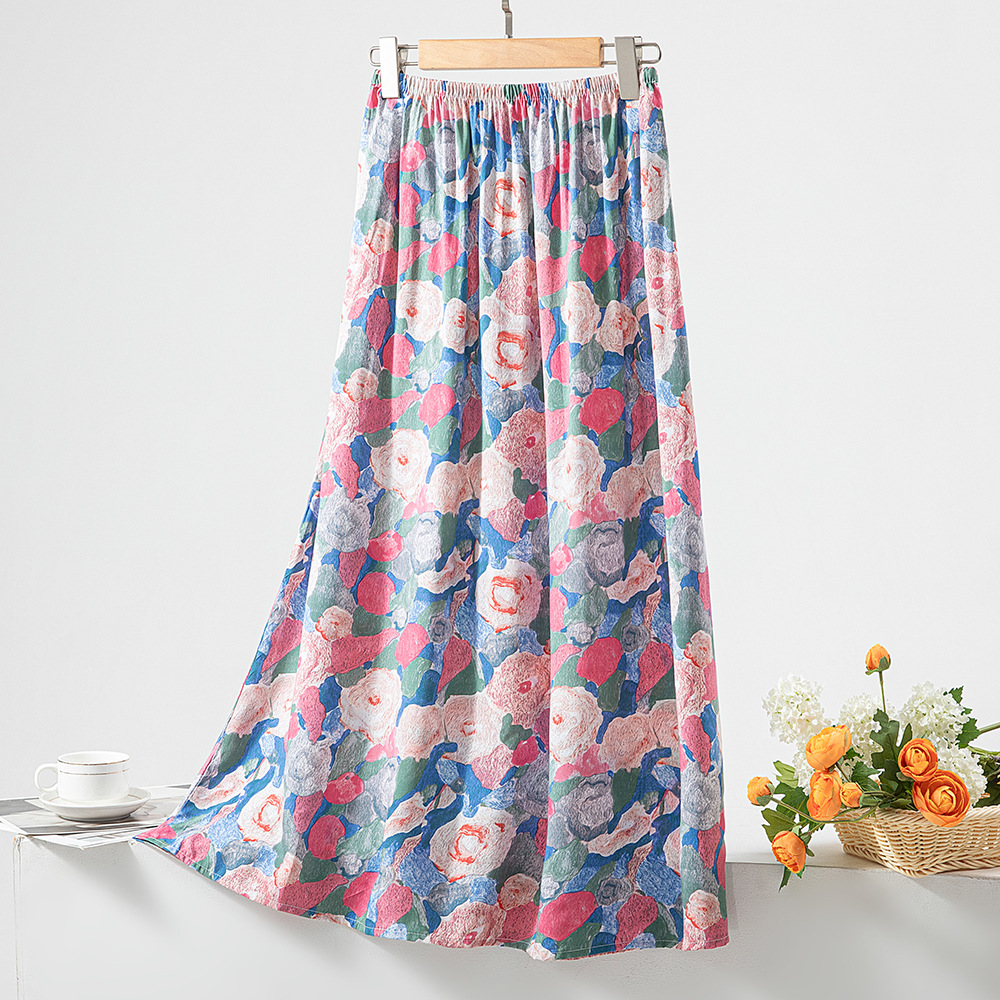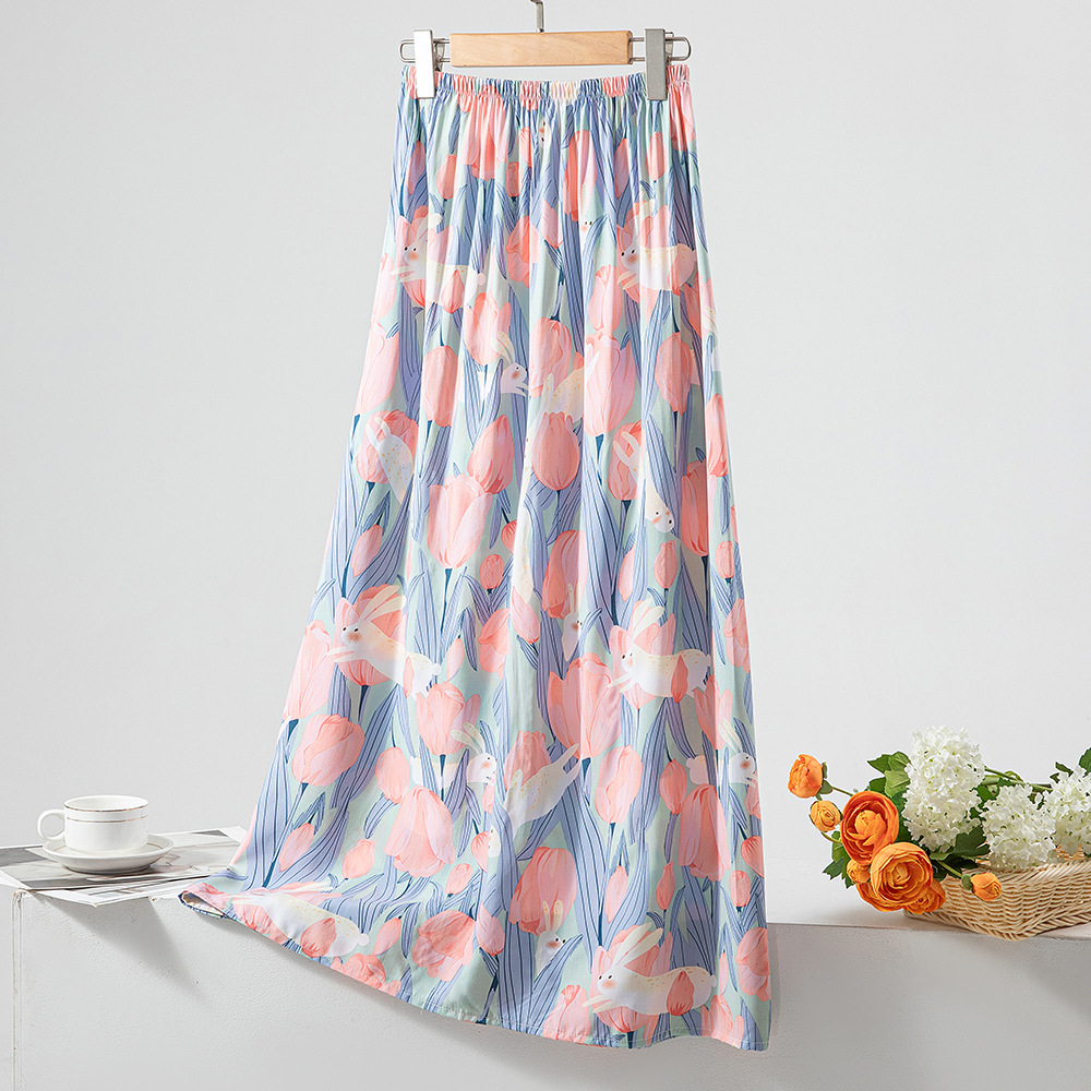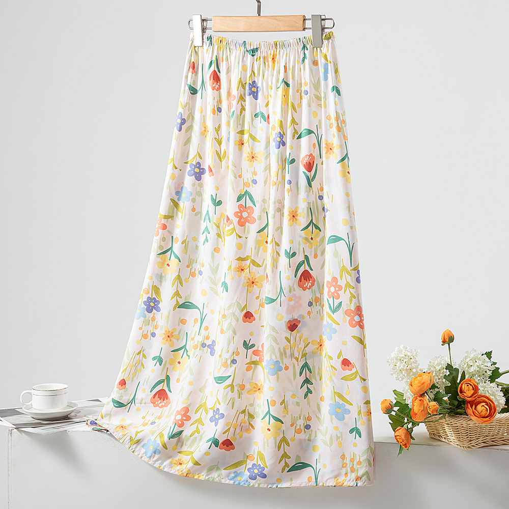 棉绸睡裙女夏季薄款甜美半身裙新款宽松人造棉长裙大码沙滩裙睡衣