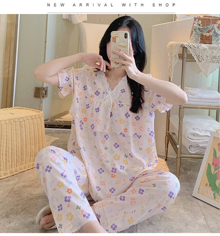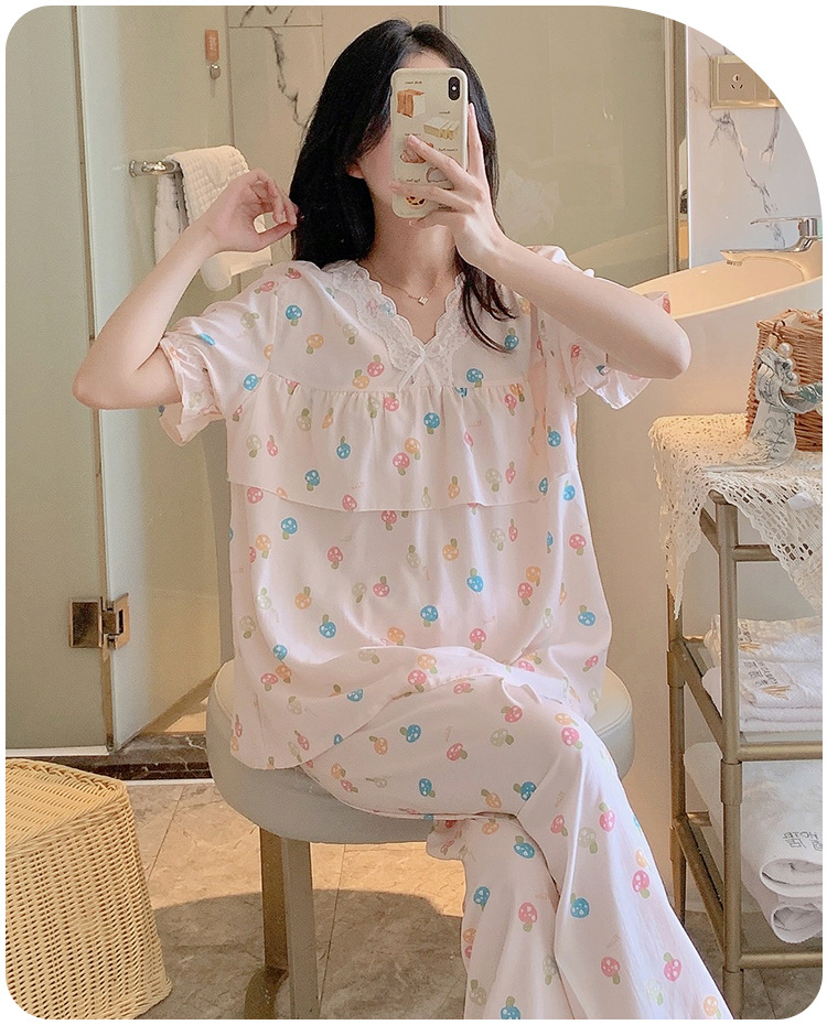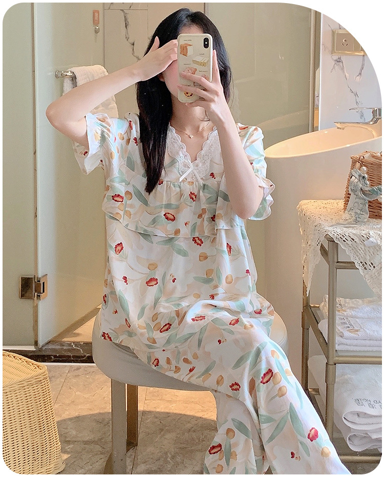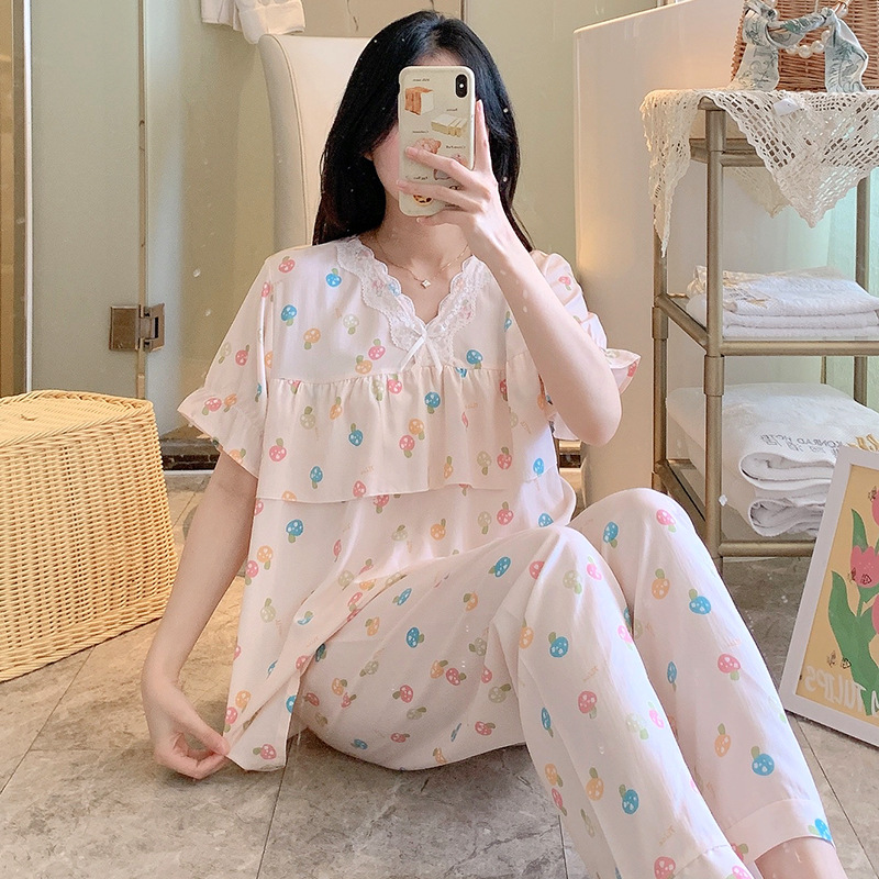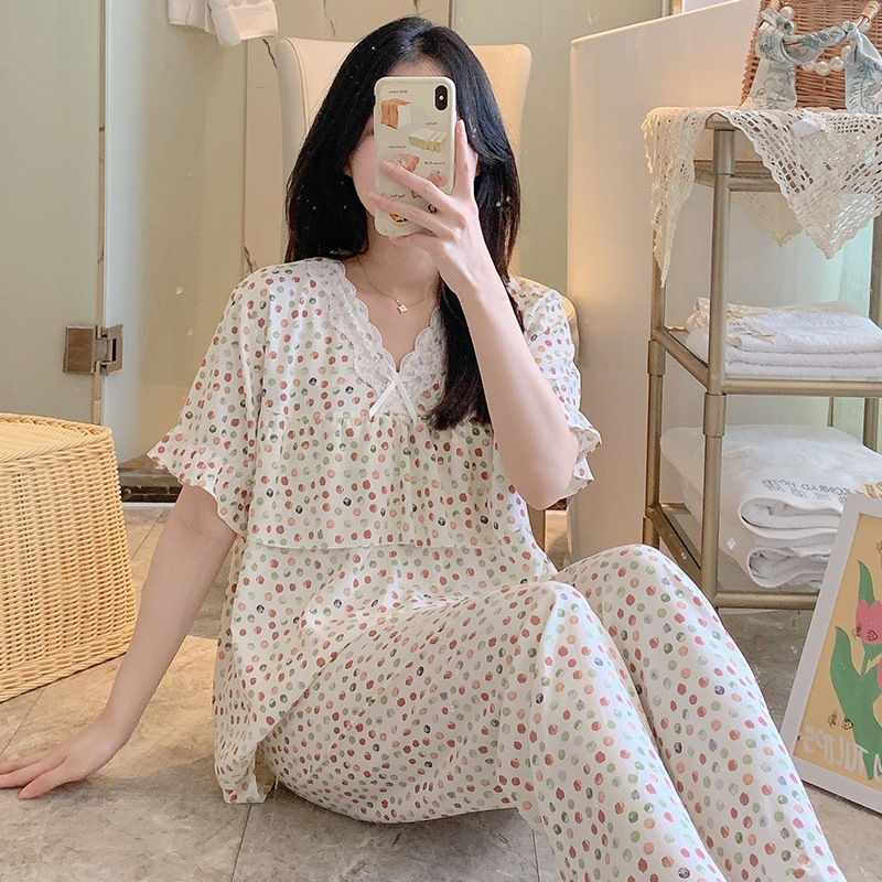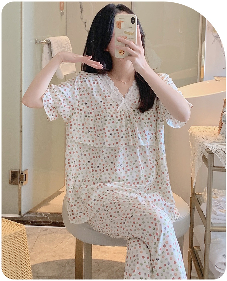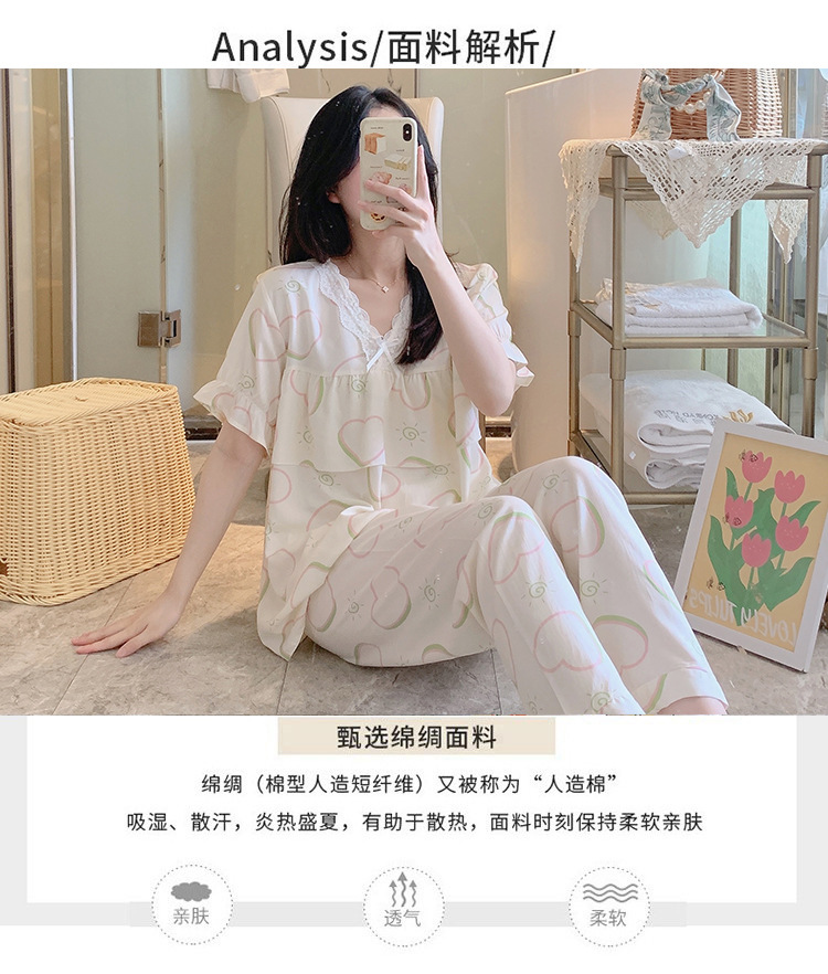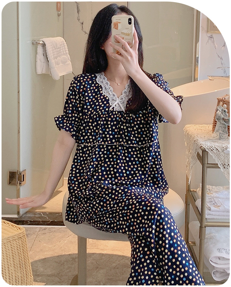 棉绸睡衣女夏季薄款防凸点短袖人造棉套装大码外穿宽松韩版家居服