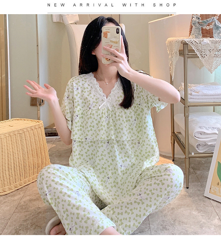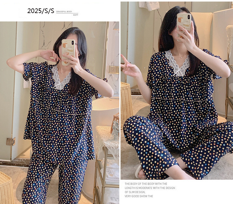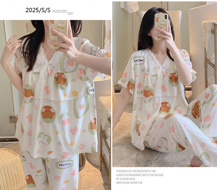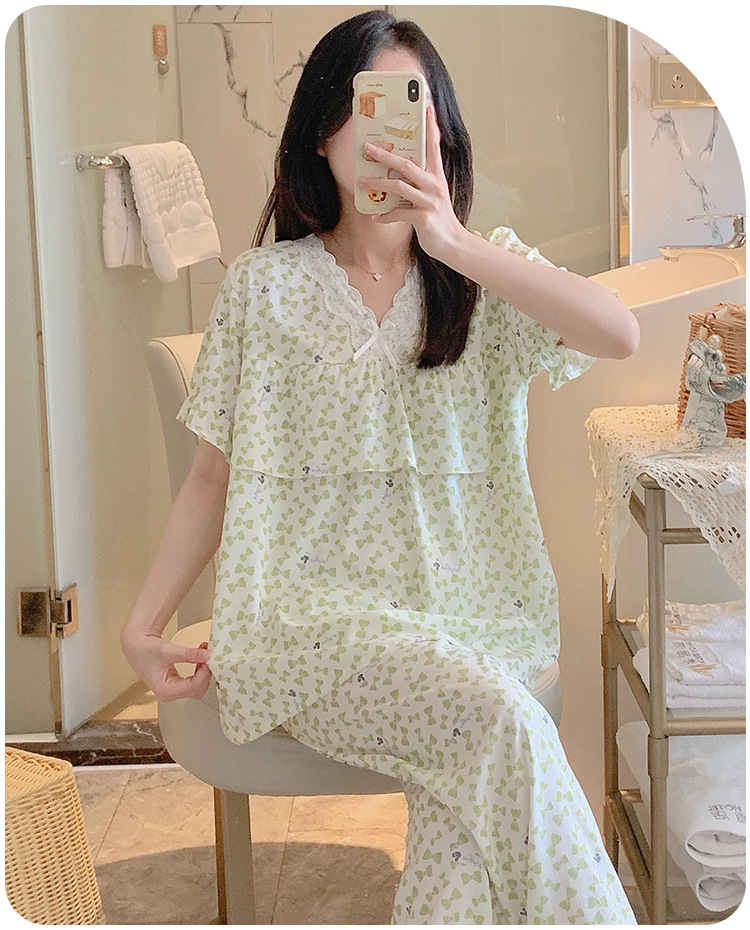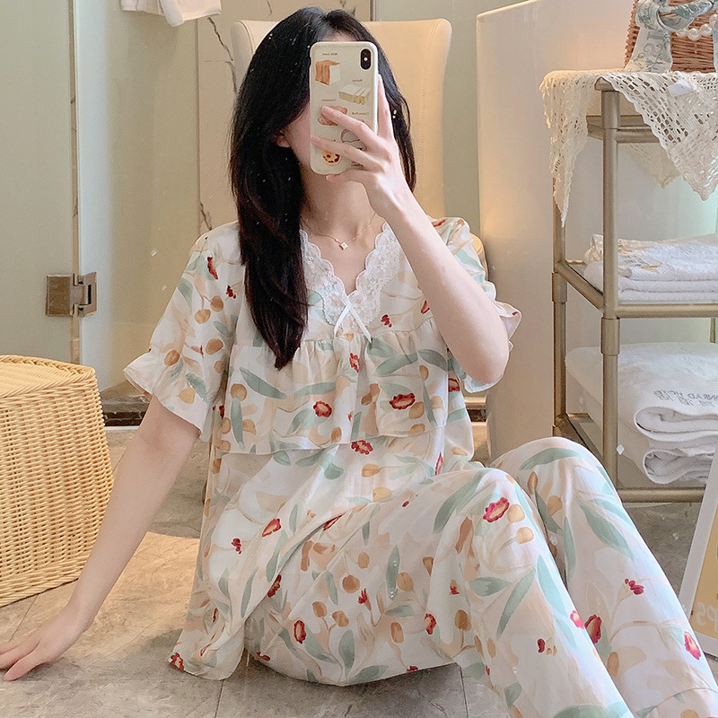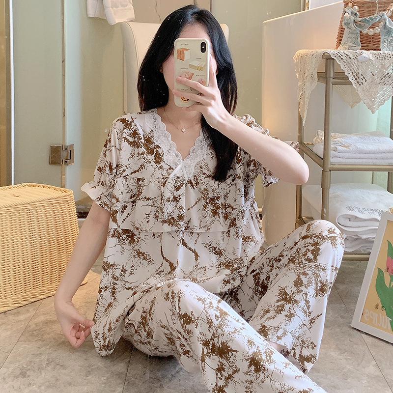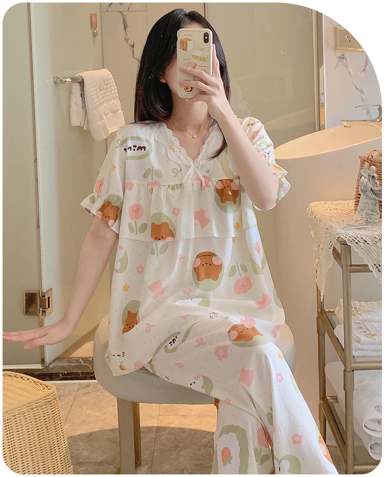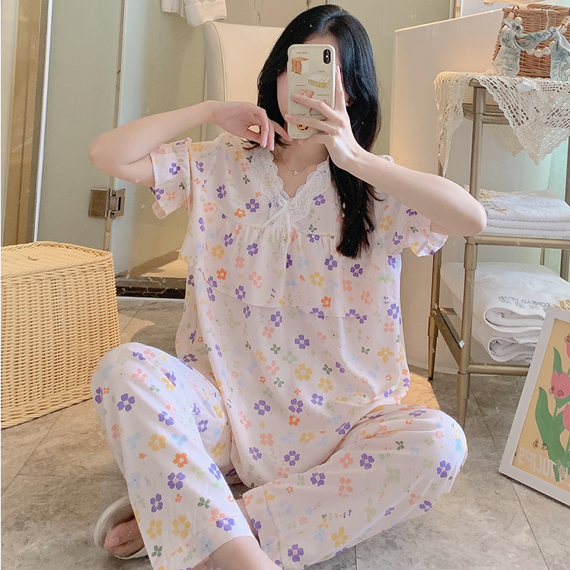 棉绸睡衣女夏季薄款防凸点短袖人造棉套装大码外穿宽松韩版家居服