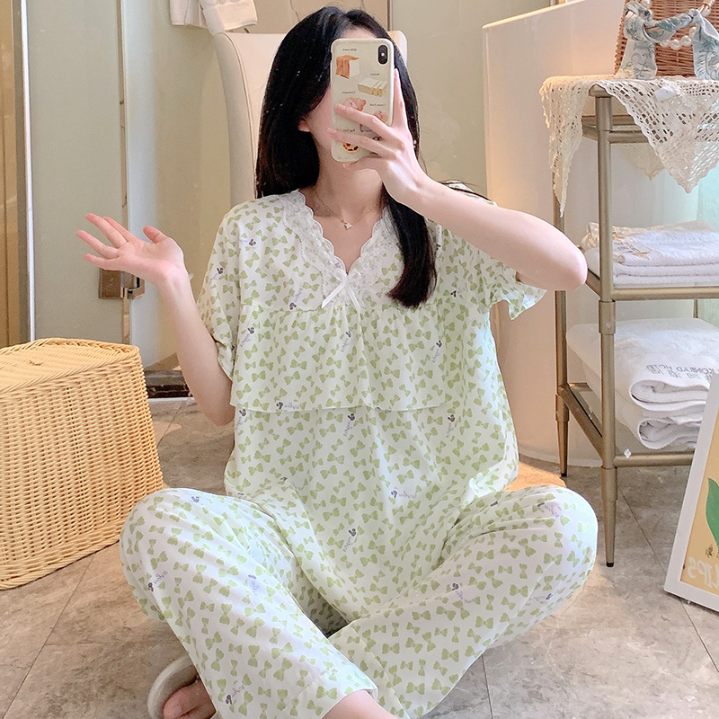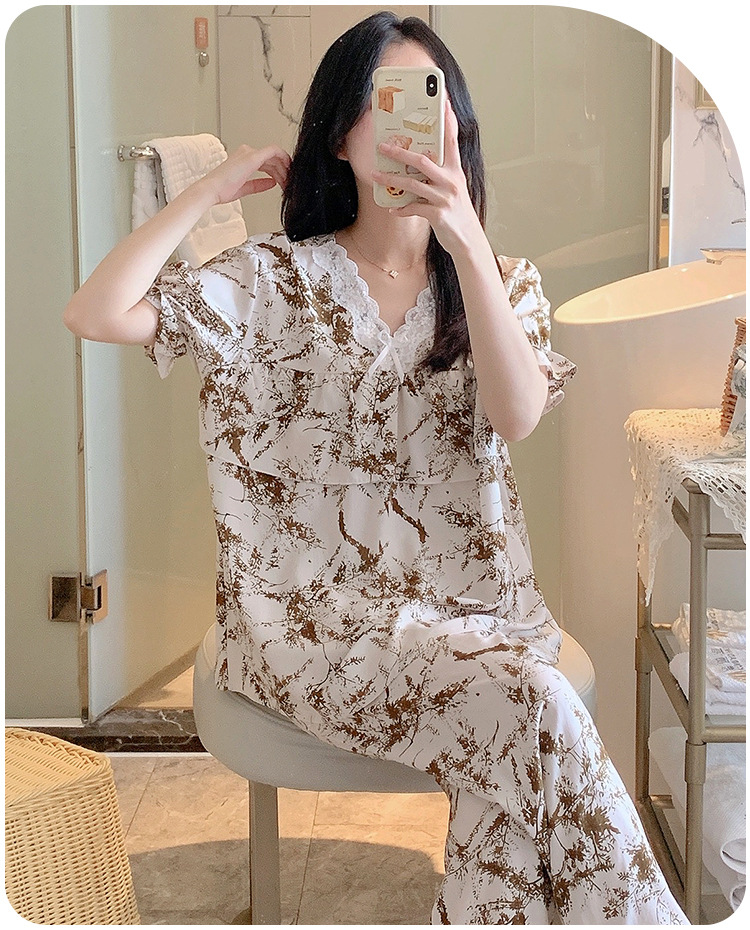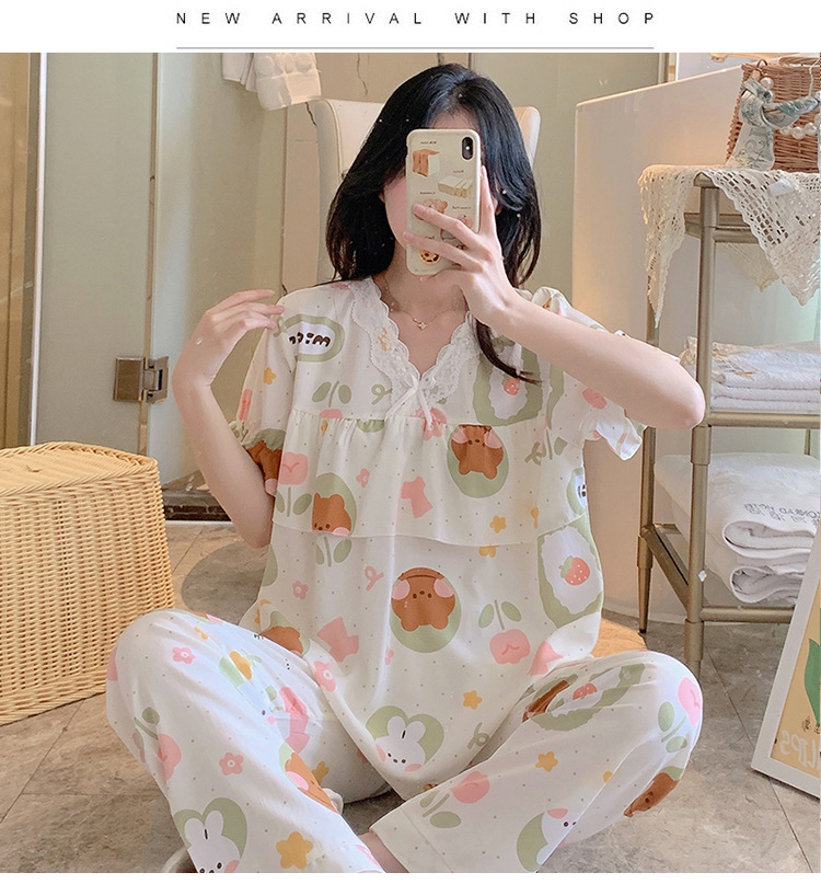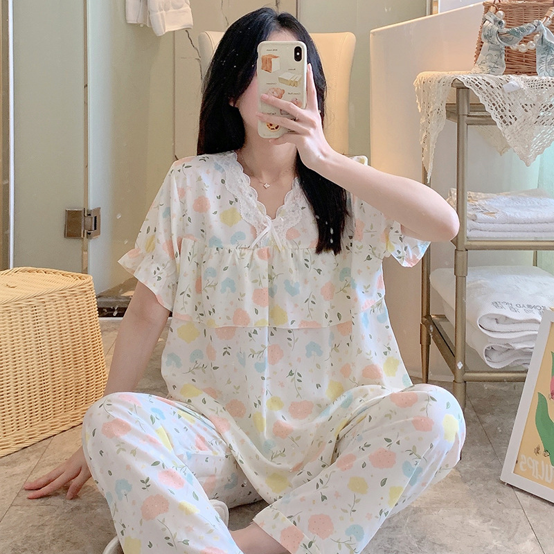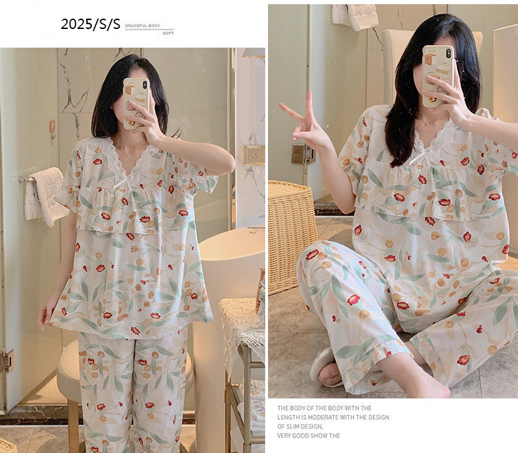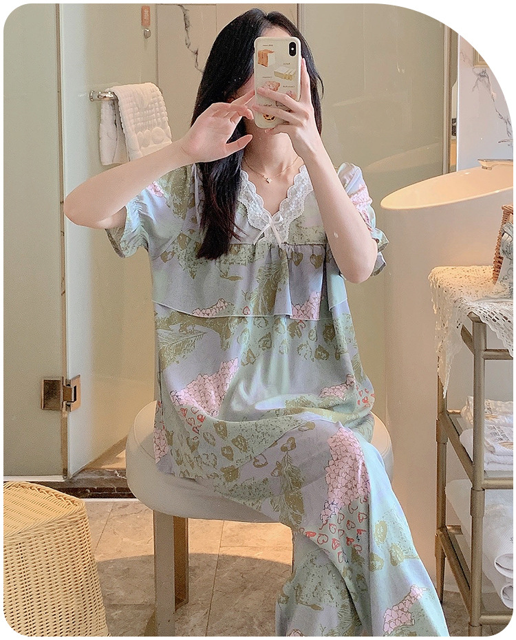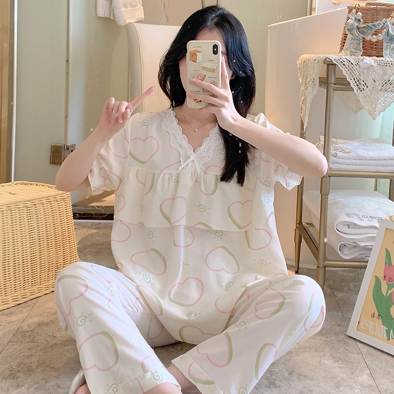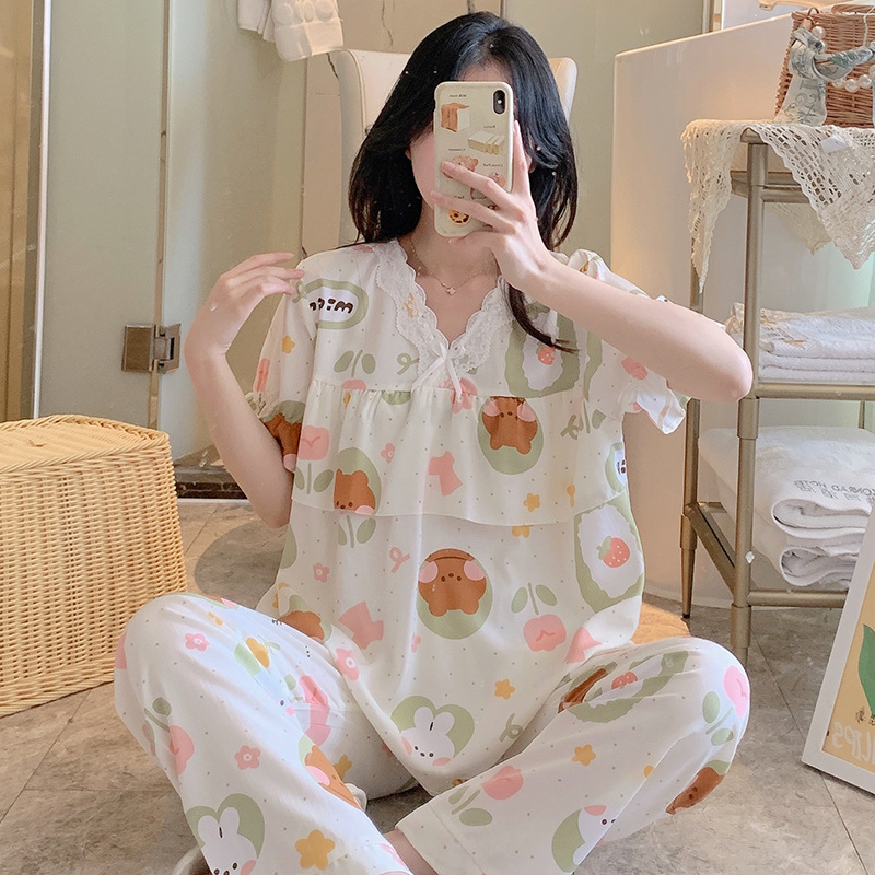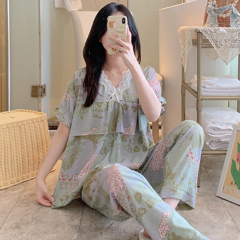 棉绸睡衣女夏季薄款防凸点短袖人造棉套装大码外穿宽松韩版家居服