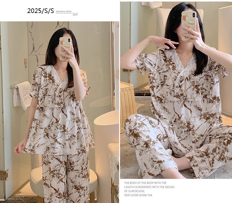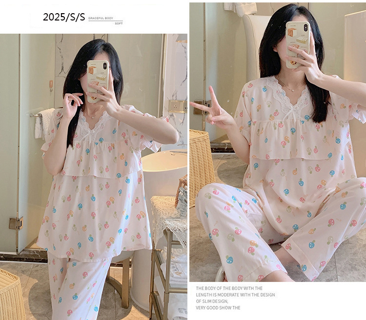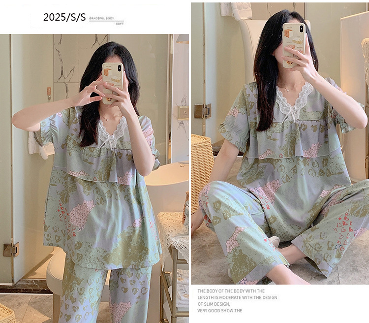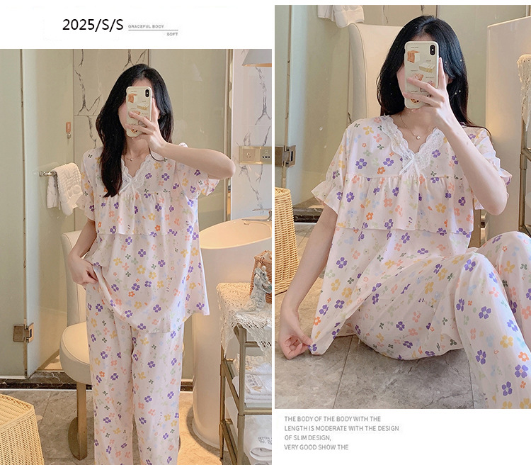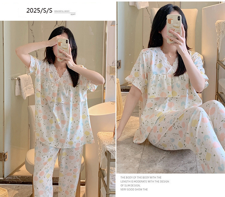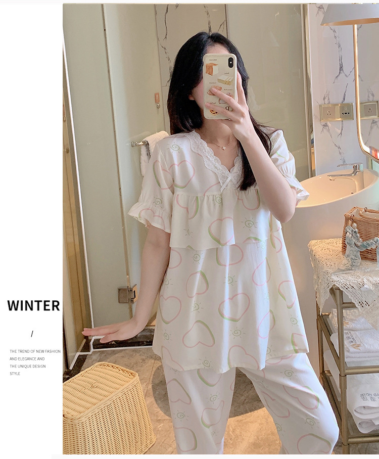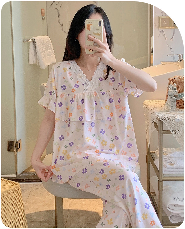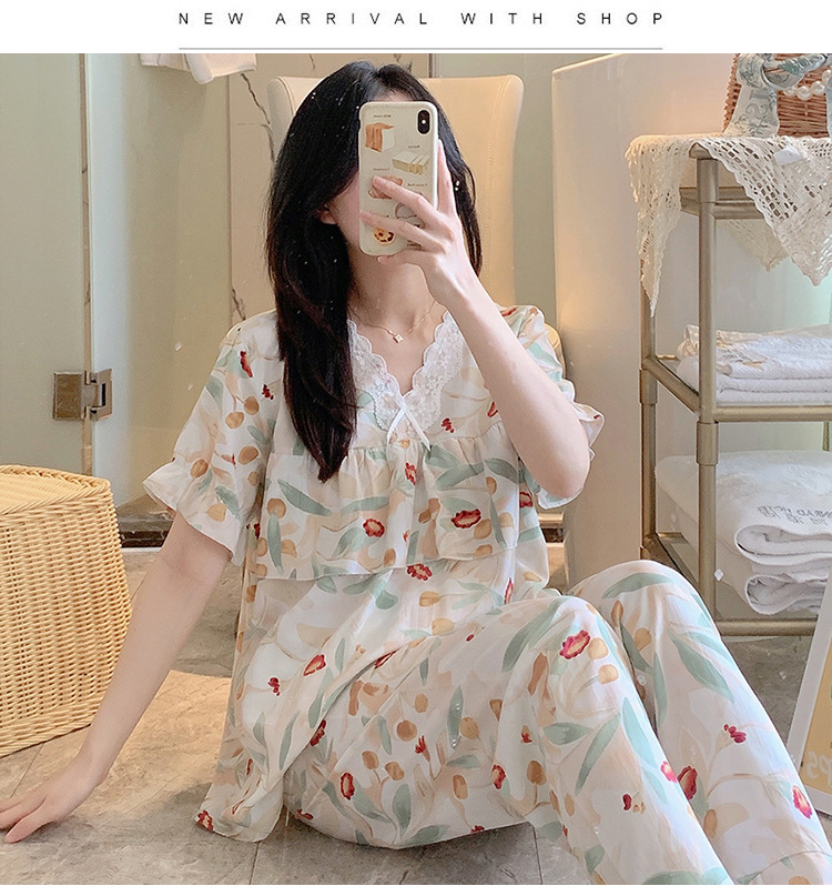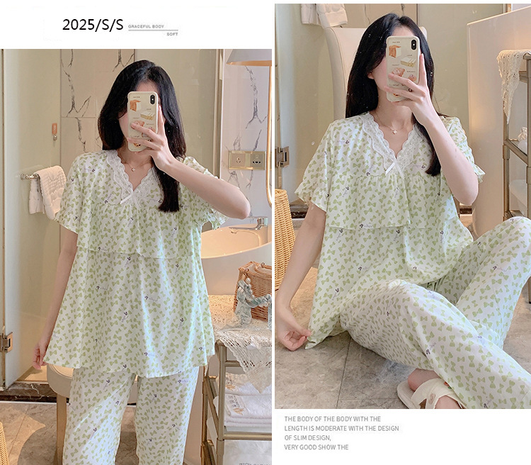 棉绸睡衣女夏季薄款防凸点短袖人造棉套装大码外穿宽松韩版家居服