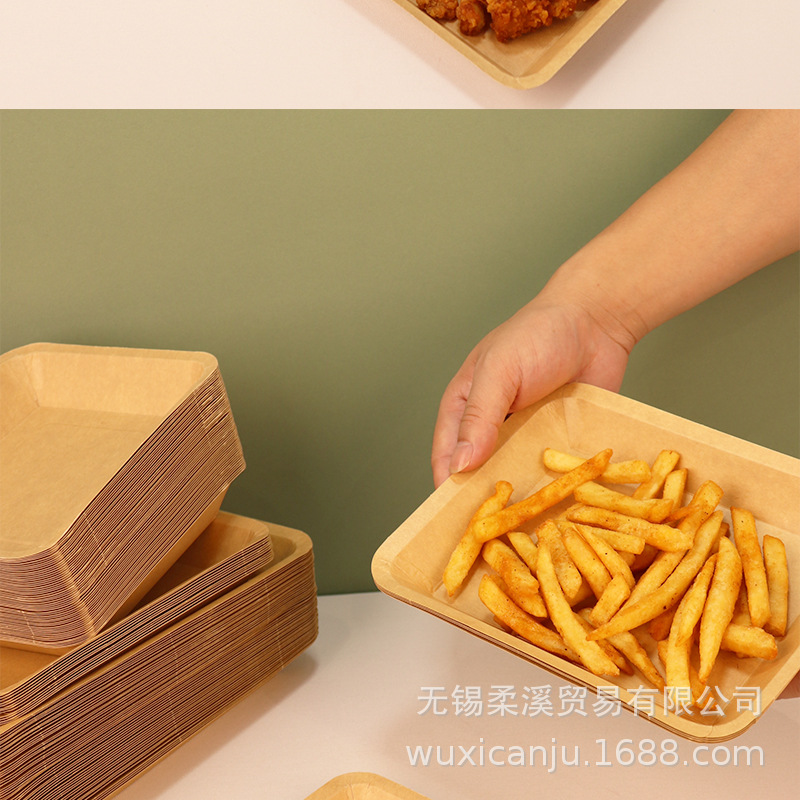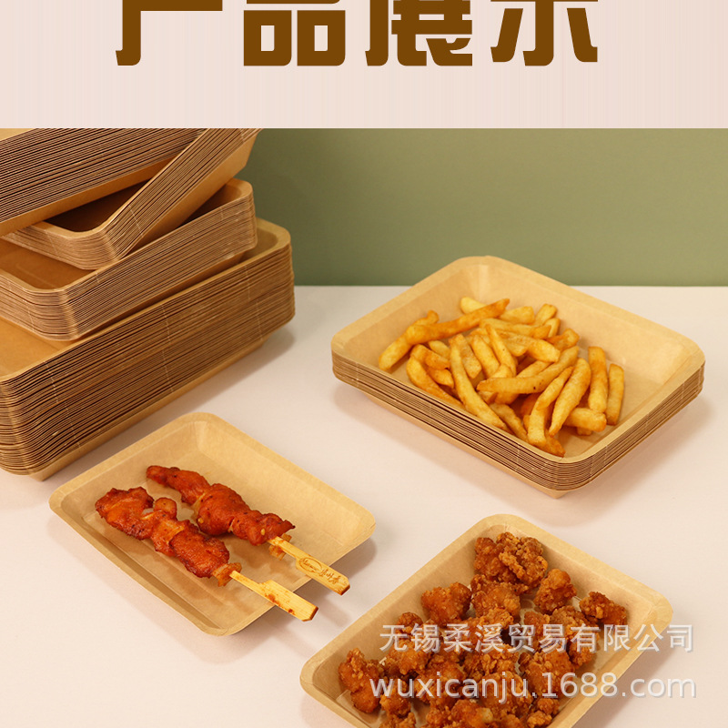 一次性牛皮纸托盘餐盘烧烤盘薯条小吃烧烤打包餐盒