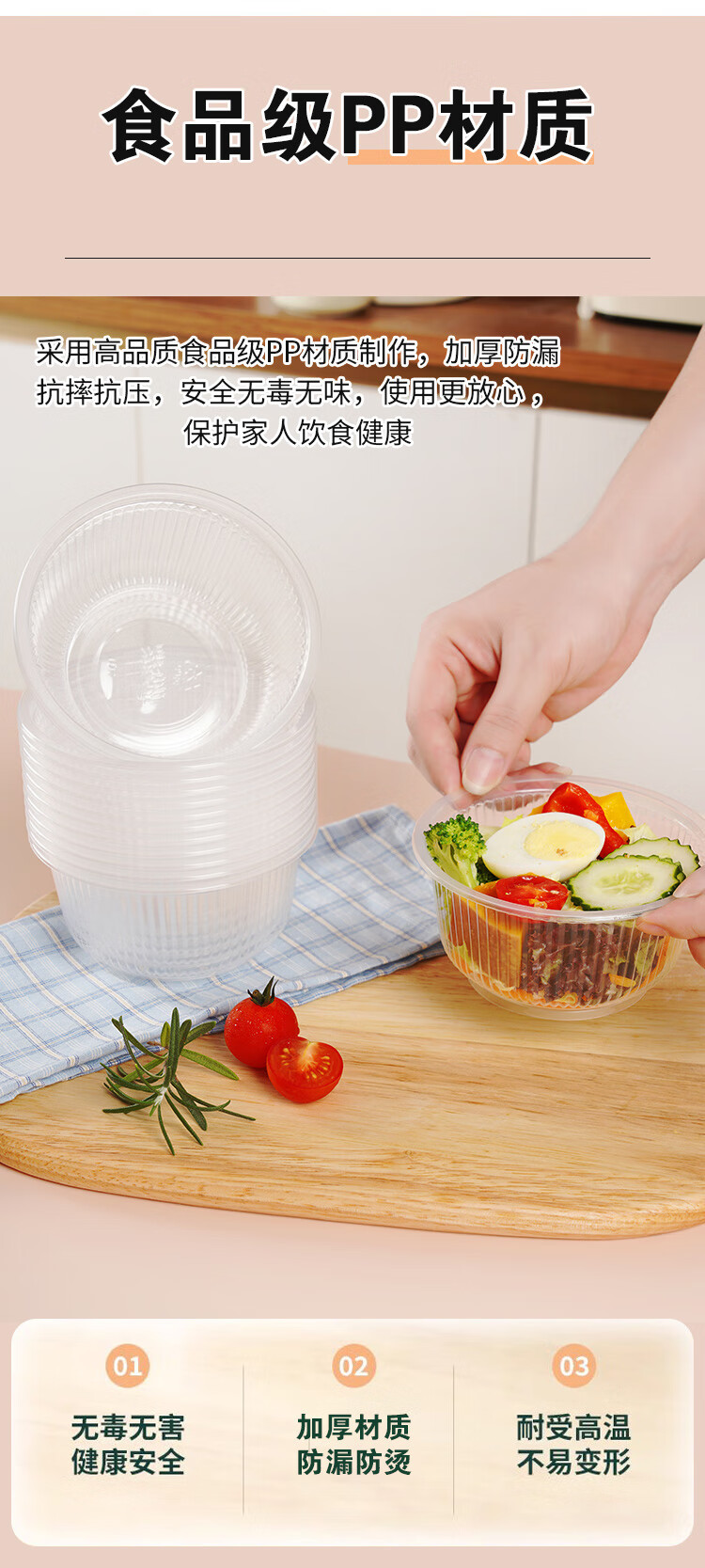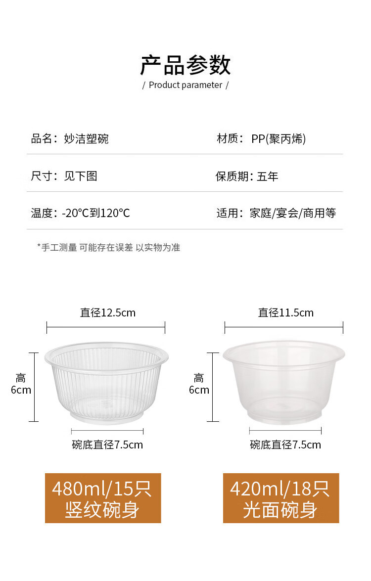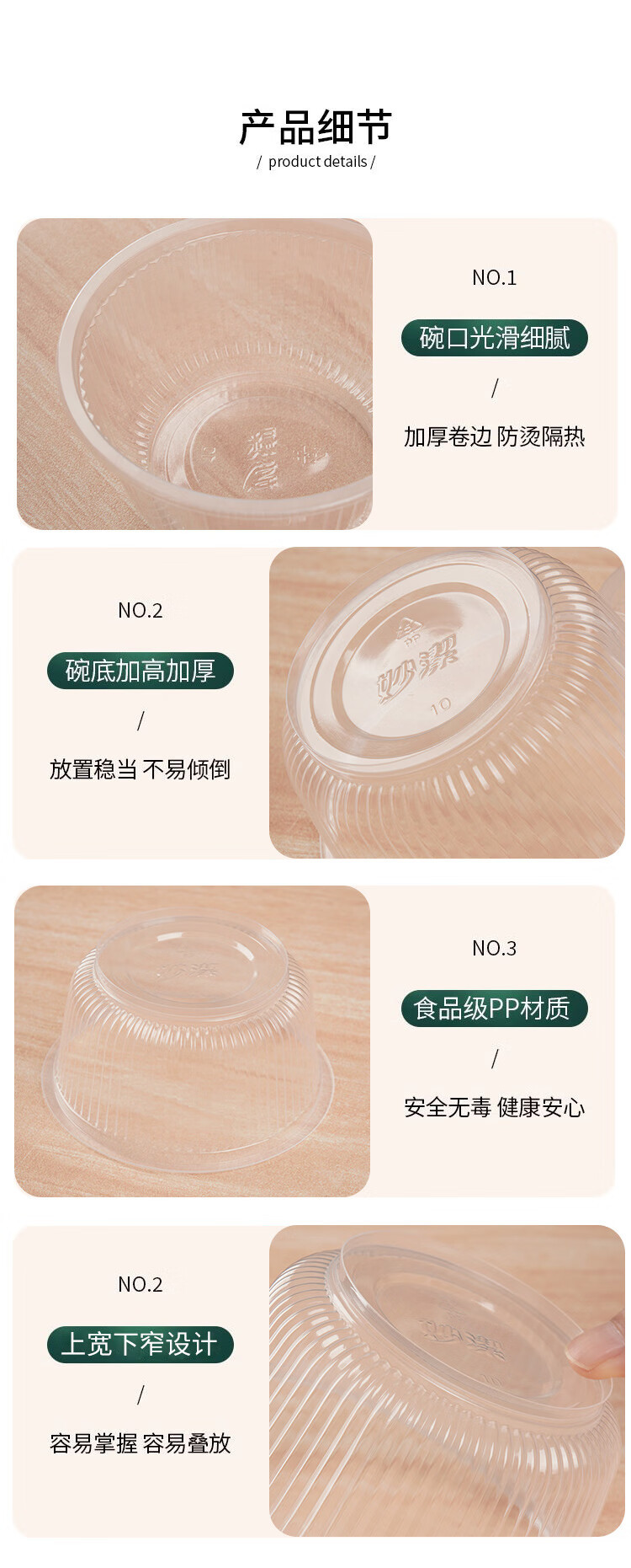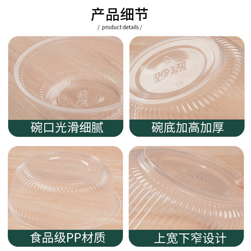 妙洁一次性碗家用不带盖塑料圆形餐碗饭店餐馆宴席饭碗打包盒批发