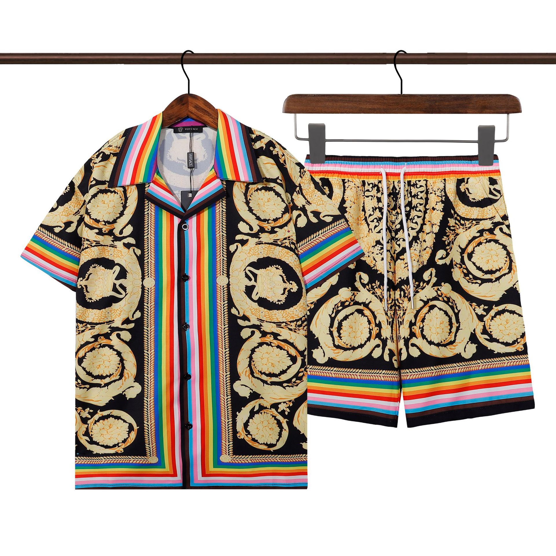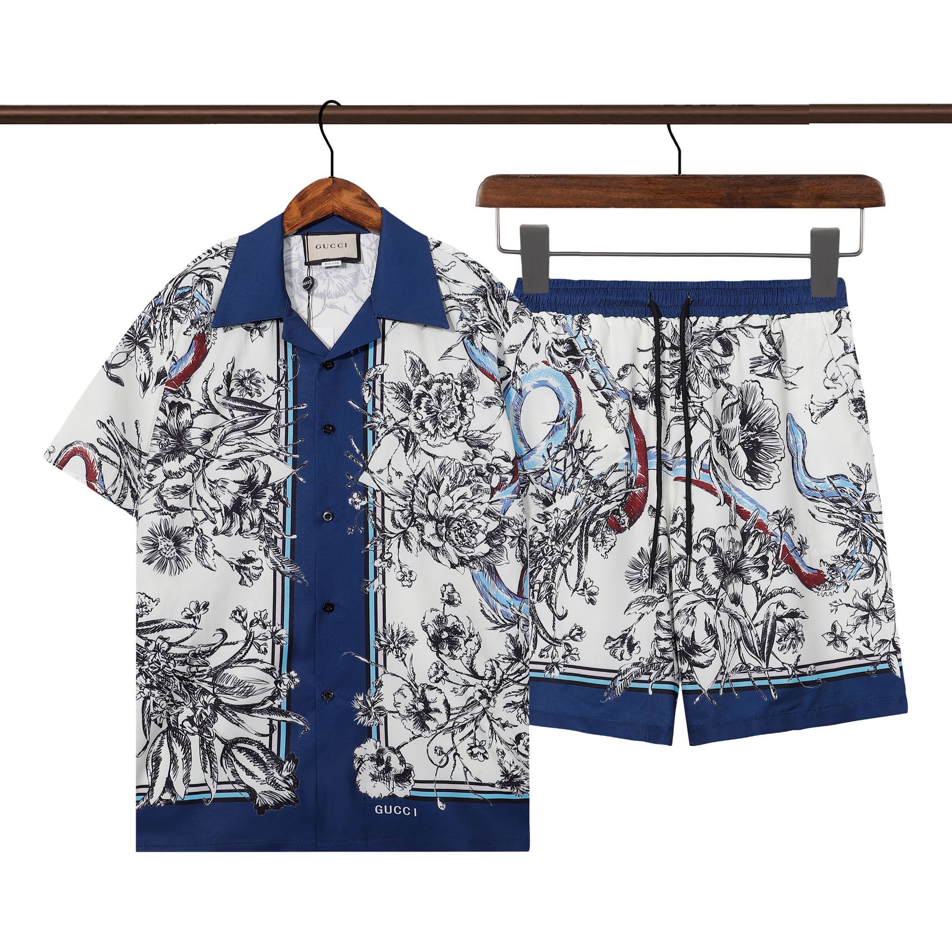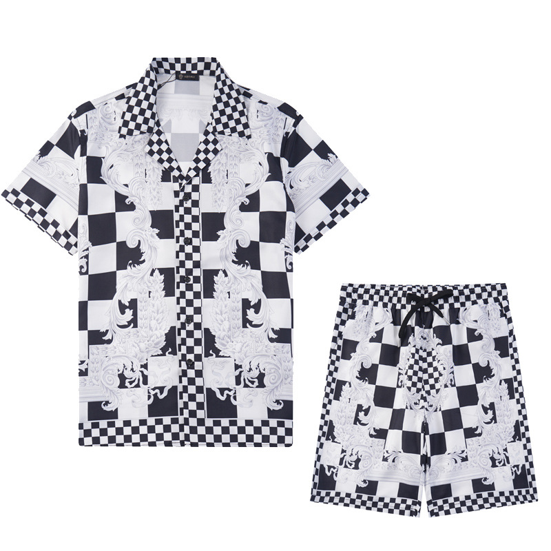跨境夏季Amiri套装经典腰果花纹印花amiri休闲短裤衬衣运动男女装