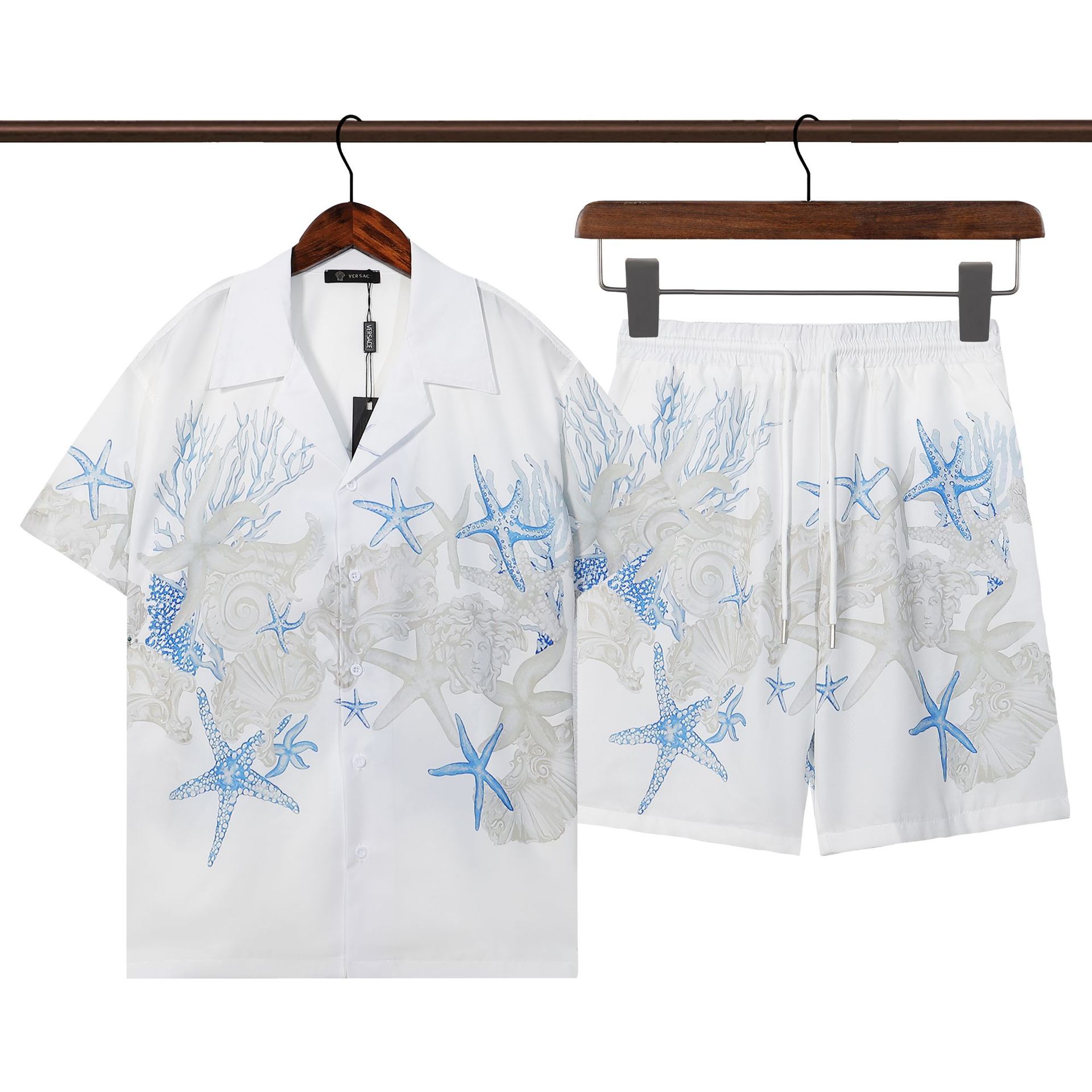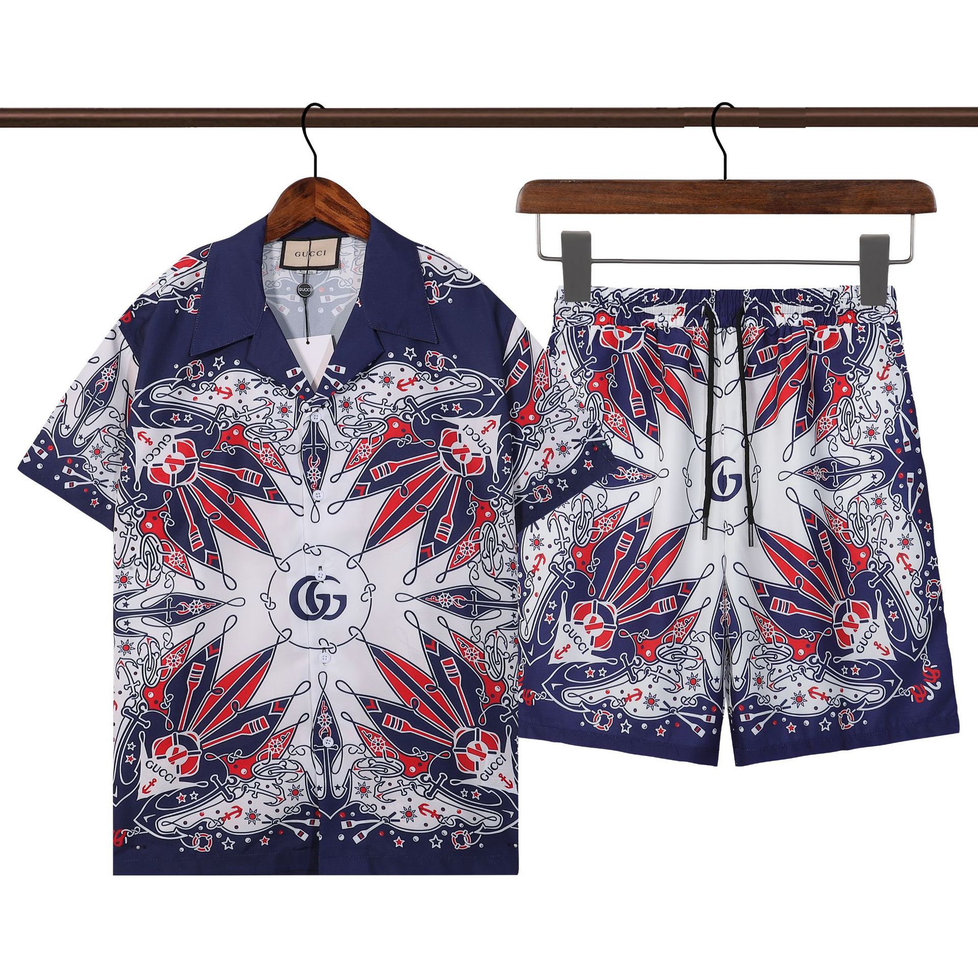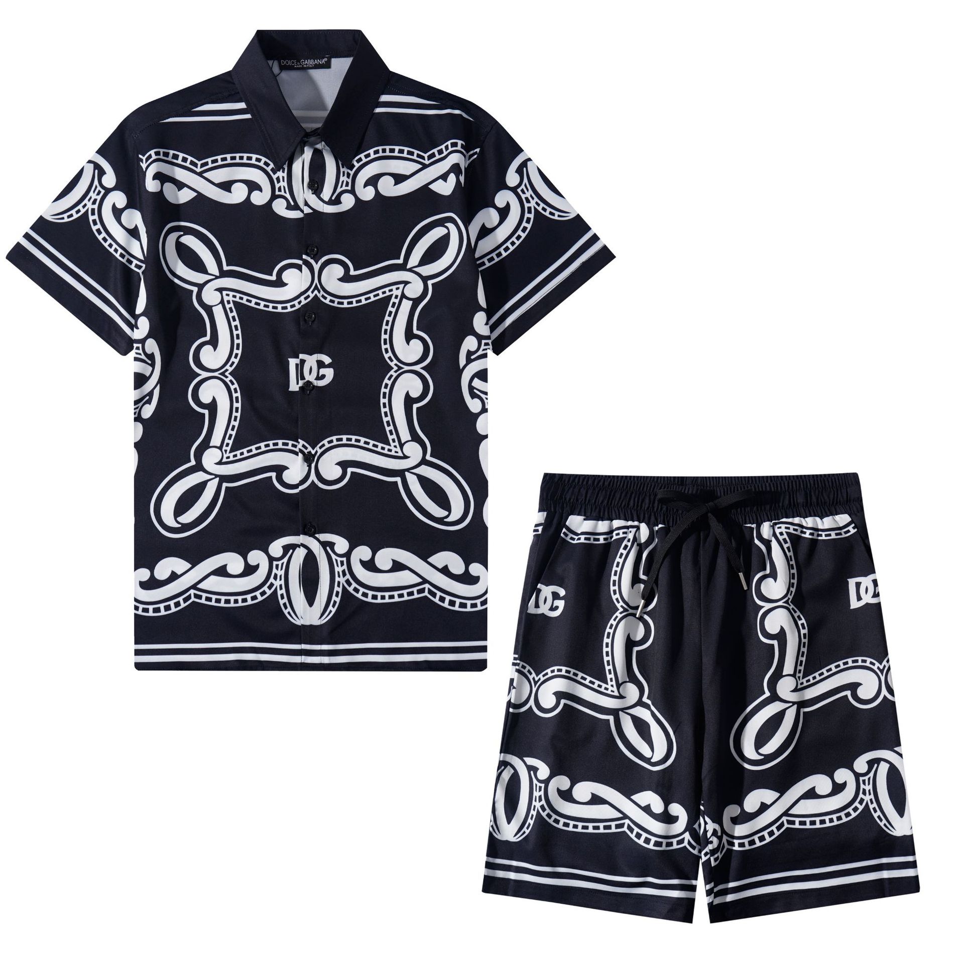 跨境夏季Amiri套装经典腰果花纹印花amiri休闲短裤衬衣运动男女装