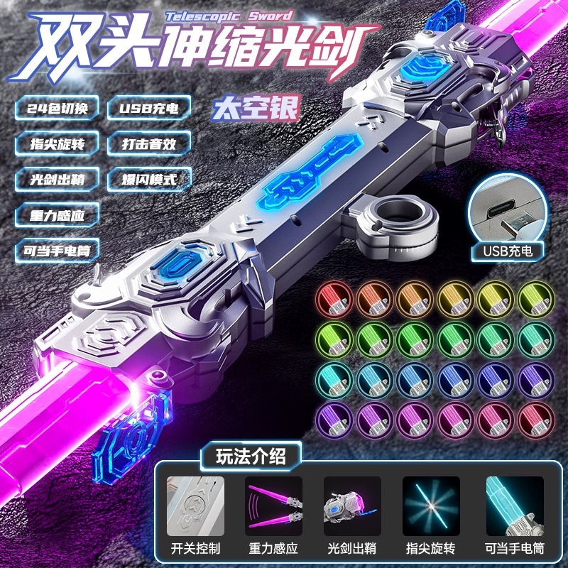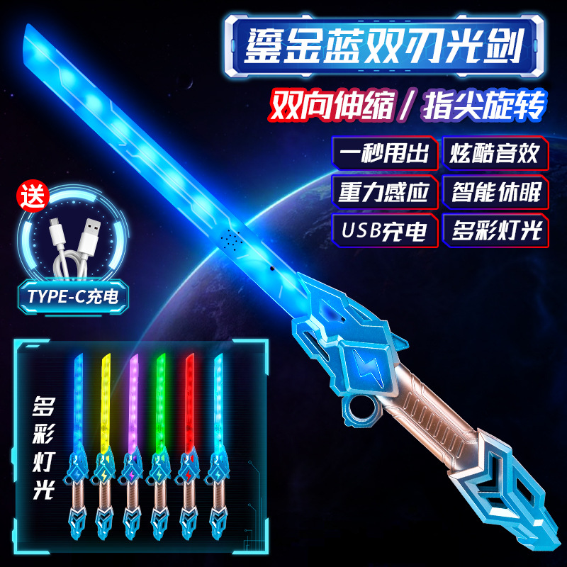 爆款激光剑星球大战伸缩光剑金箍棒儿童双刃火花光剑发光玩具批发