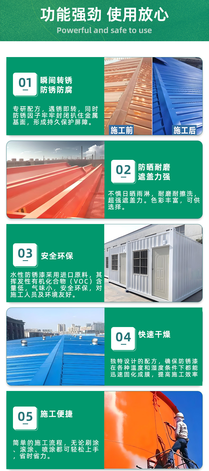 水性防锈漆免除锈防水防腐彩色翻新改色涂料彩钢瓦屋顶钢铁棚厂房