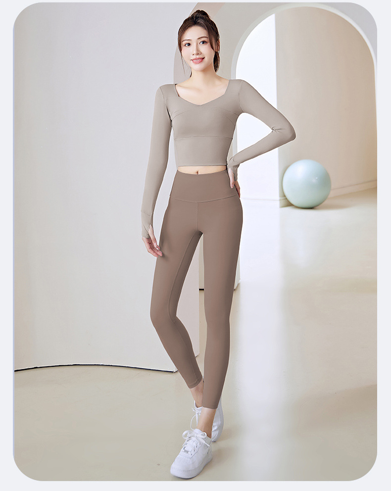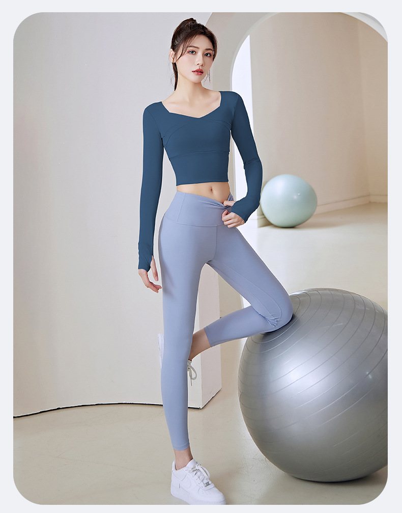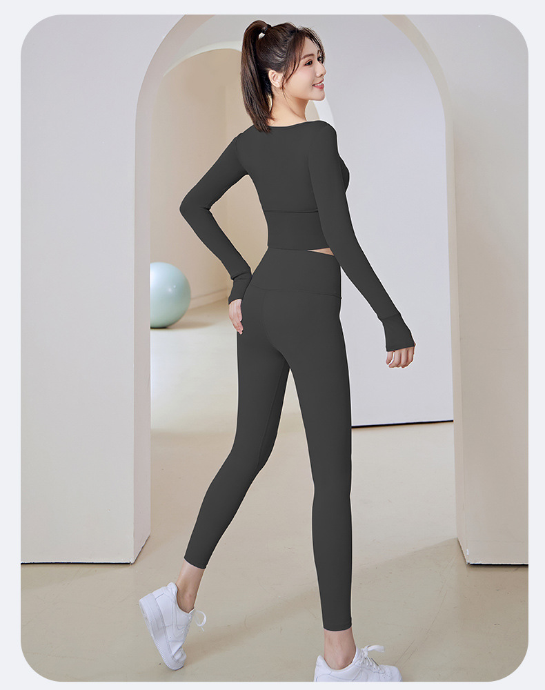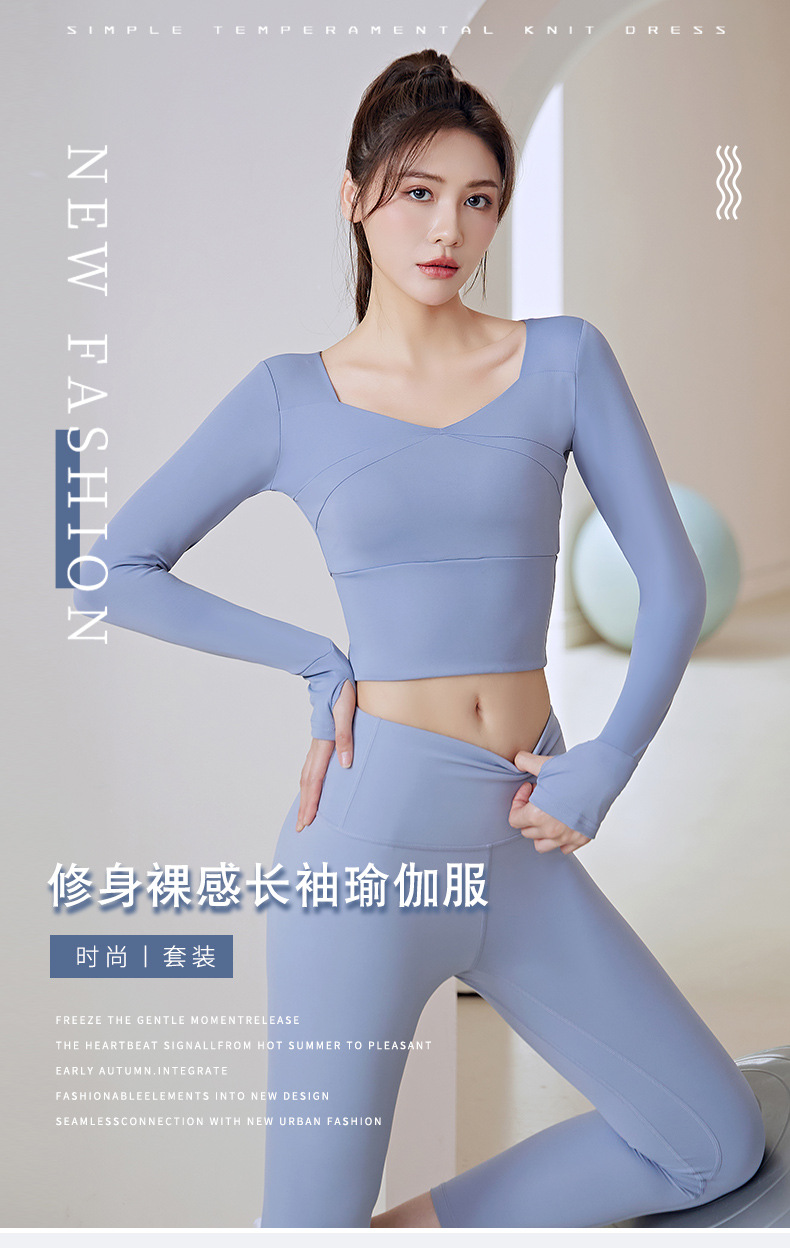 聚衣堂新款女跑步训练裸感紧身运动健身长袖长裤瑜伽服套装