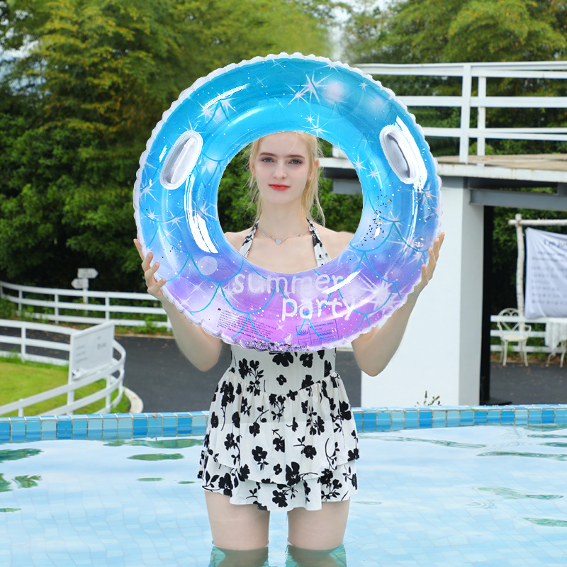跨境新款网红亮片星空游泳圈户外游泳救生圈成人加厚水上泳圈批发