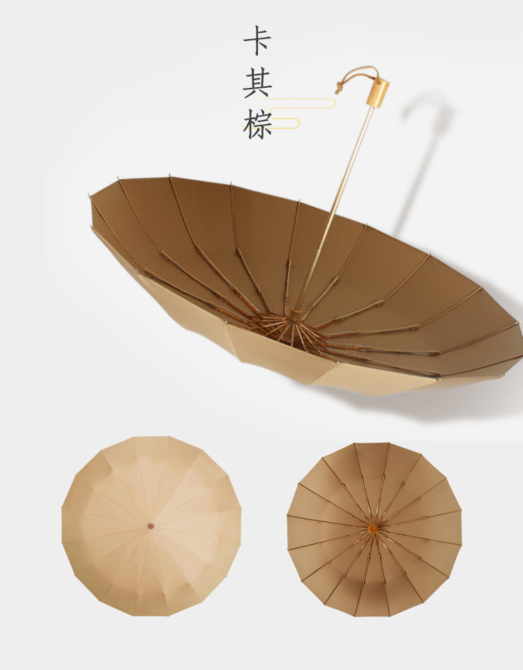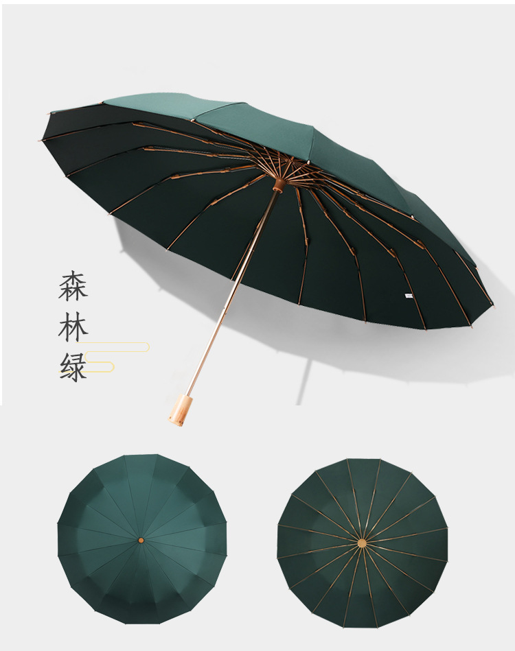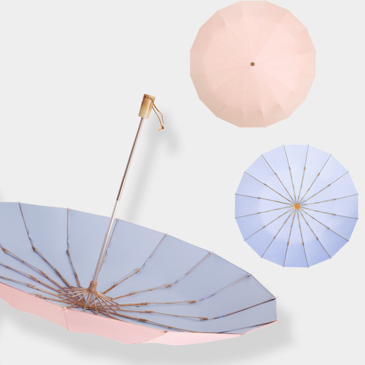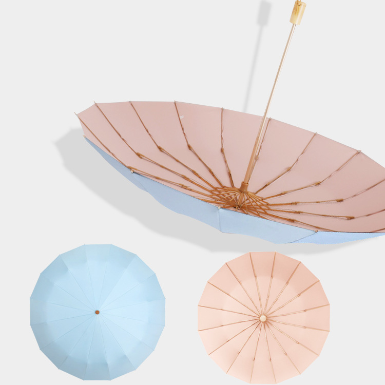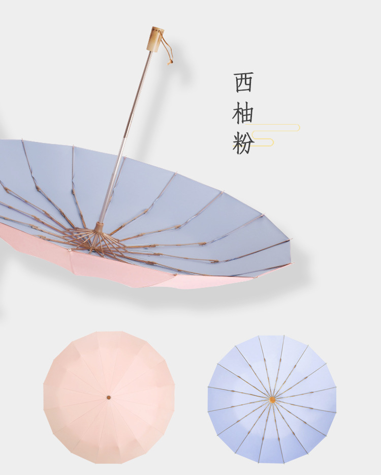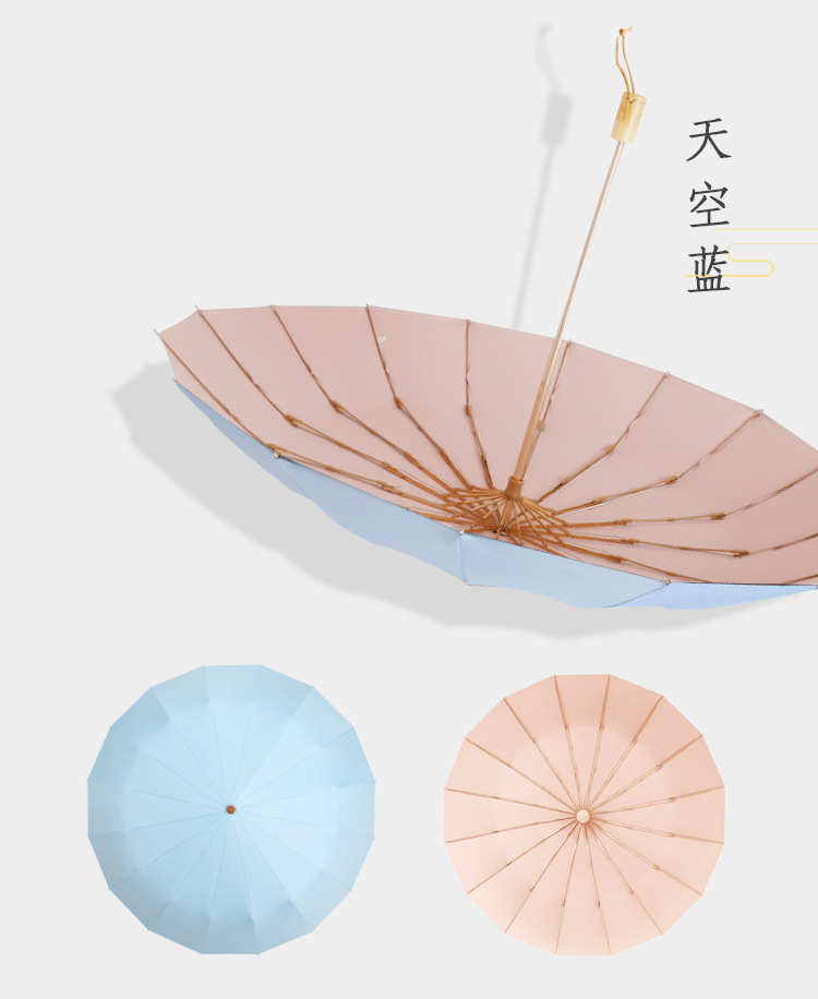 加固16骨素色折叠伞小清新彩胶三折遮阳伞复古木柄手动礼品伞定制