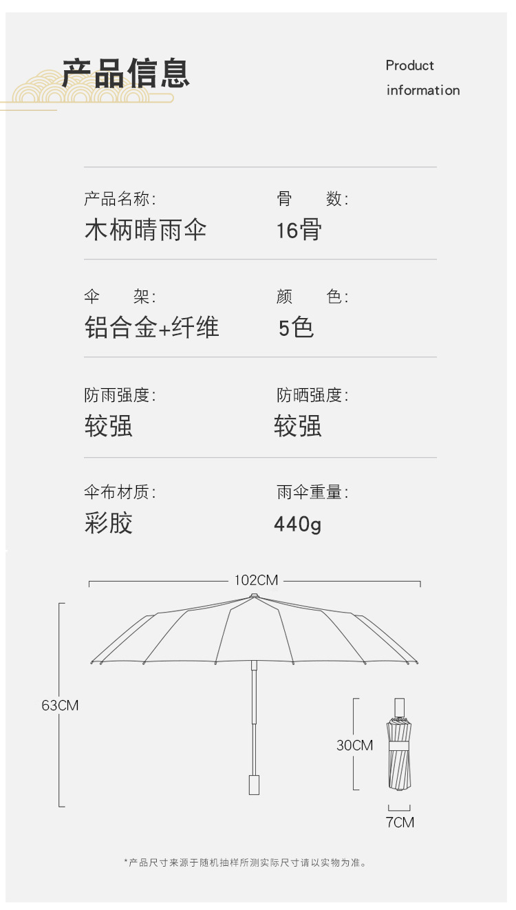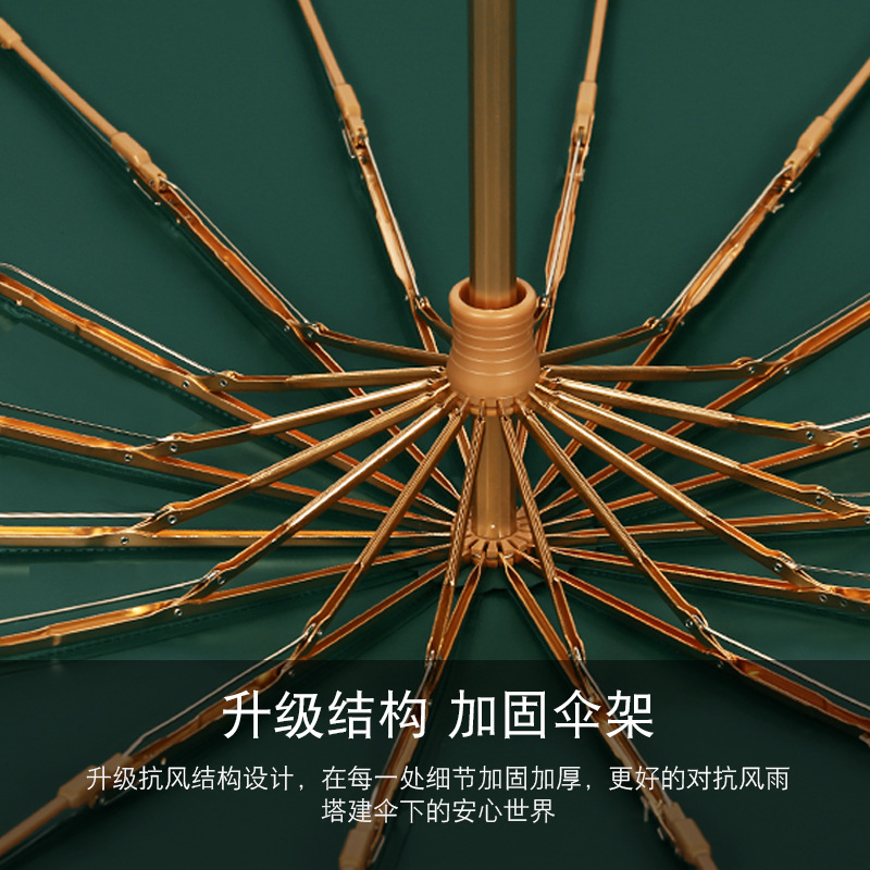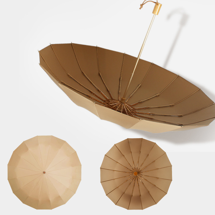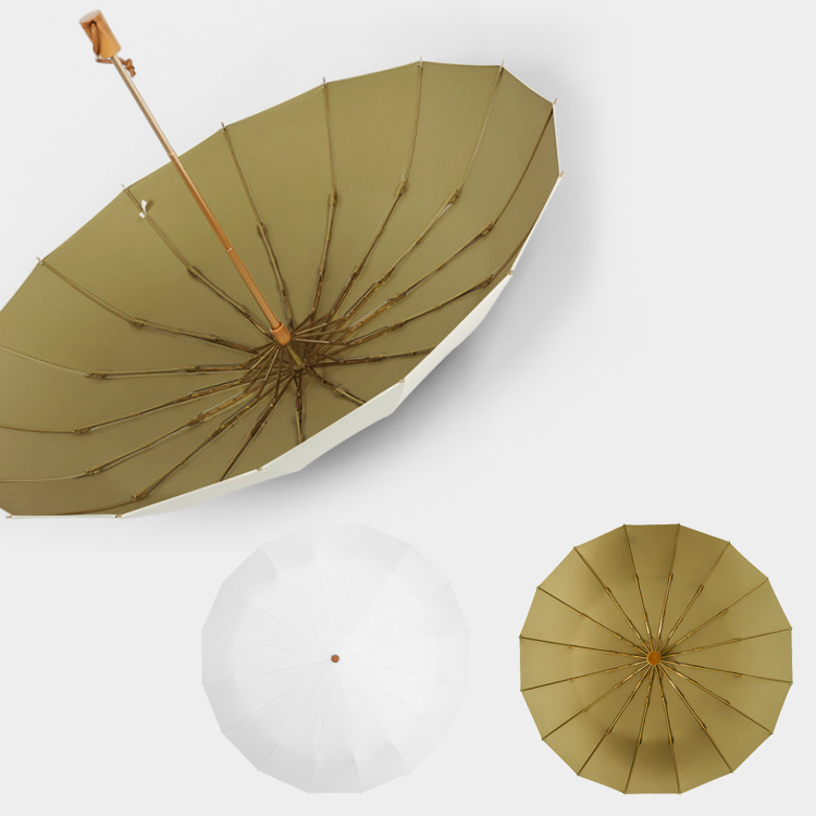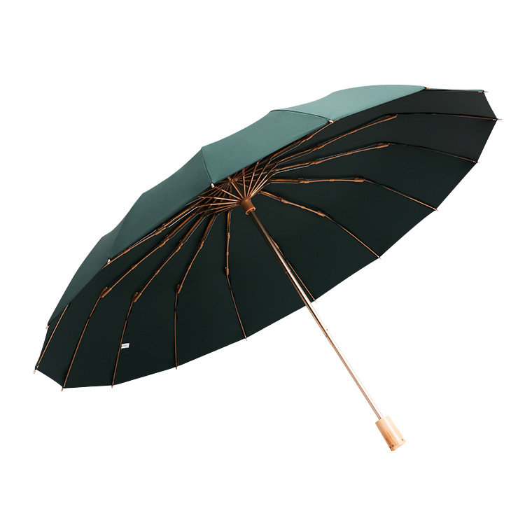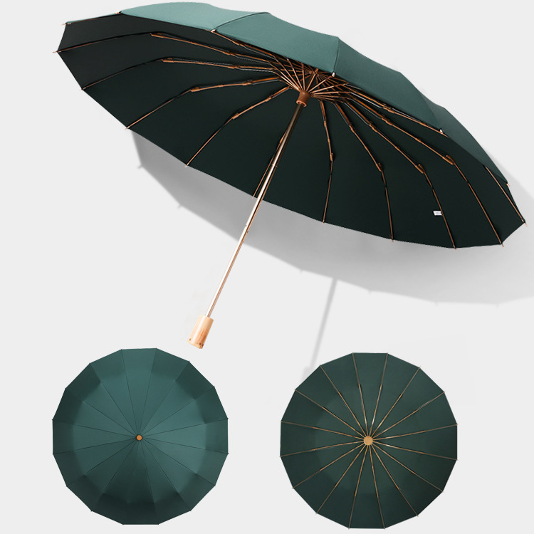 加固16骨素色折叠伞小清新彩胶三折遮阳伞复古木柄手动礼品伞定制