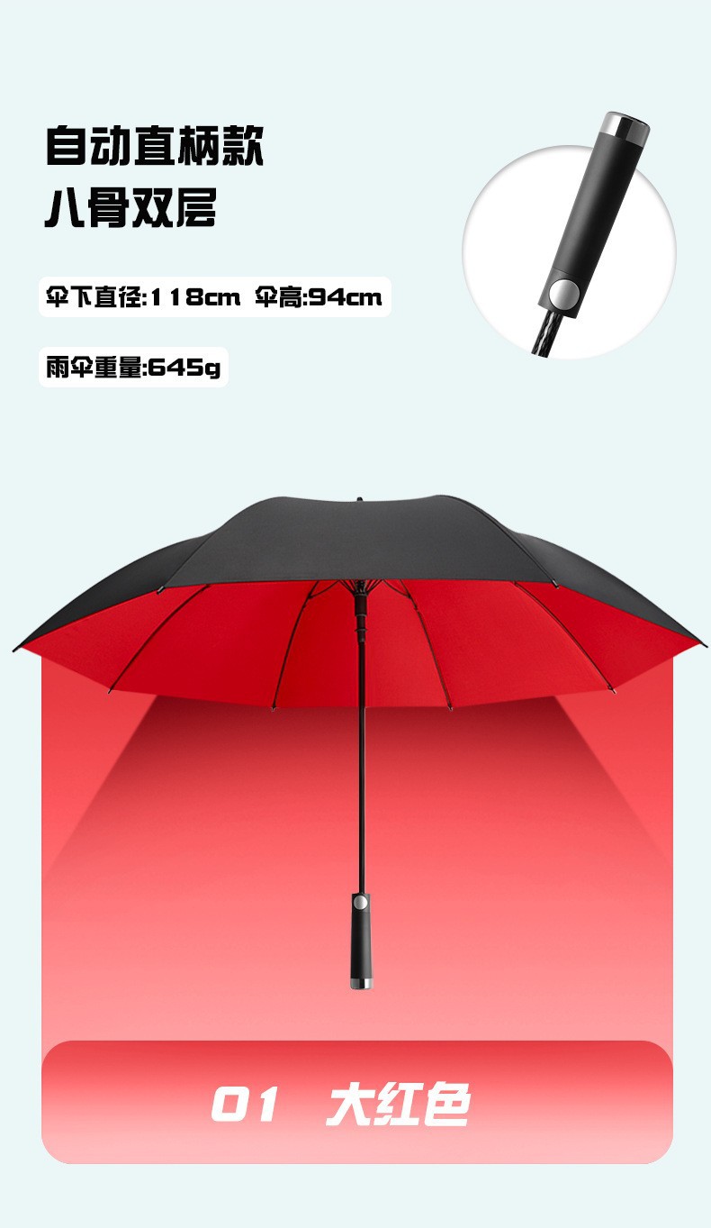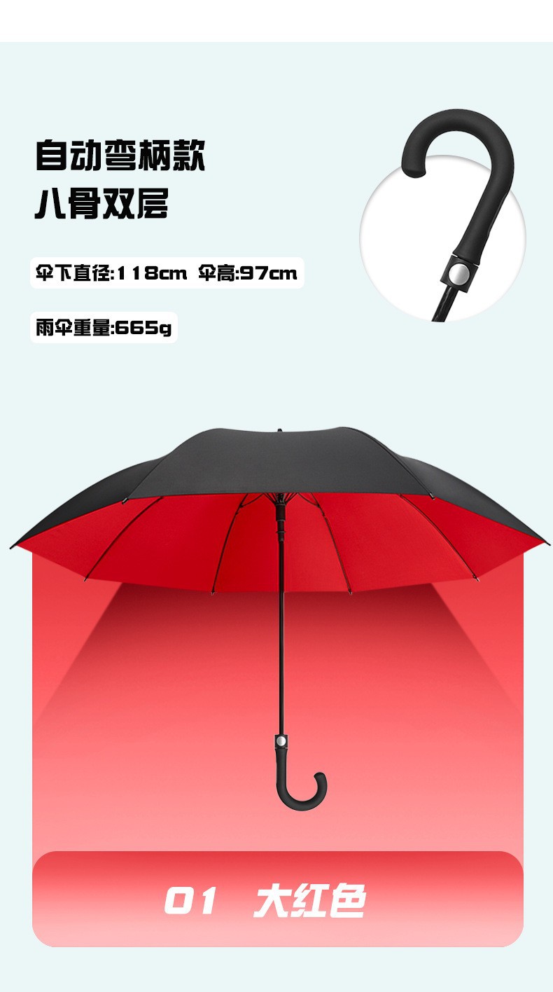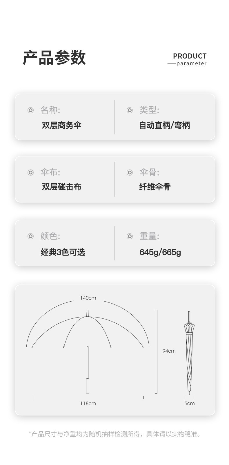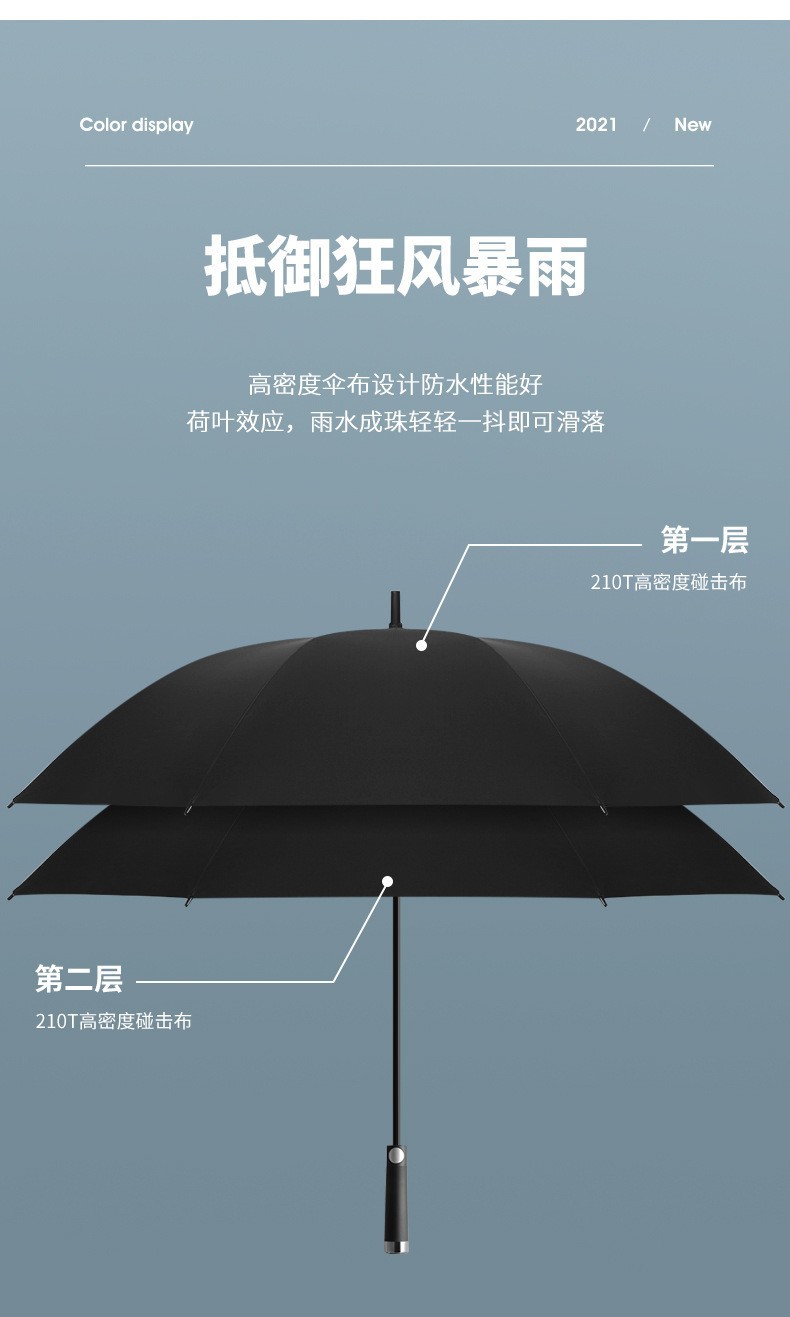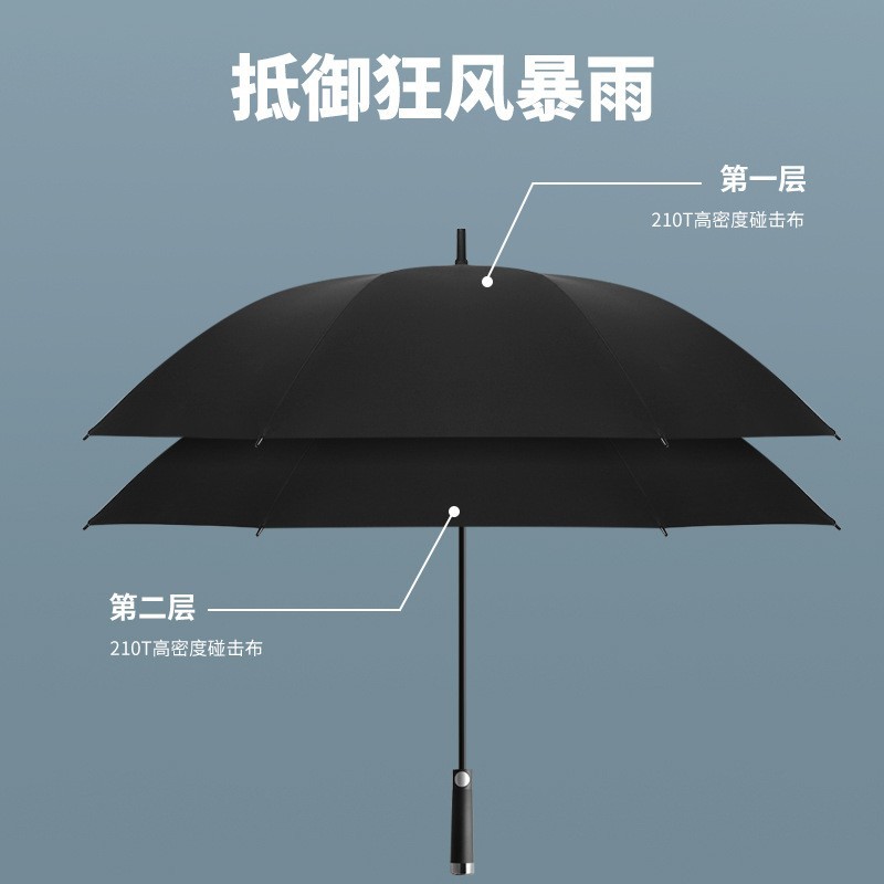 双层伞布高尔夫弯柄雨伞双人纤维遮阳长柄可定制伞全纤维直杆雨伞