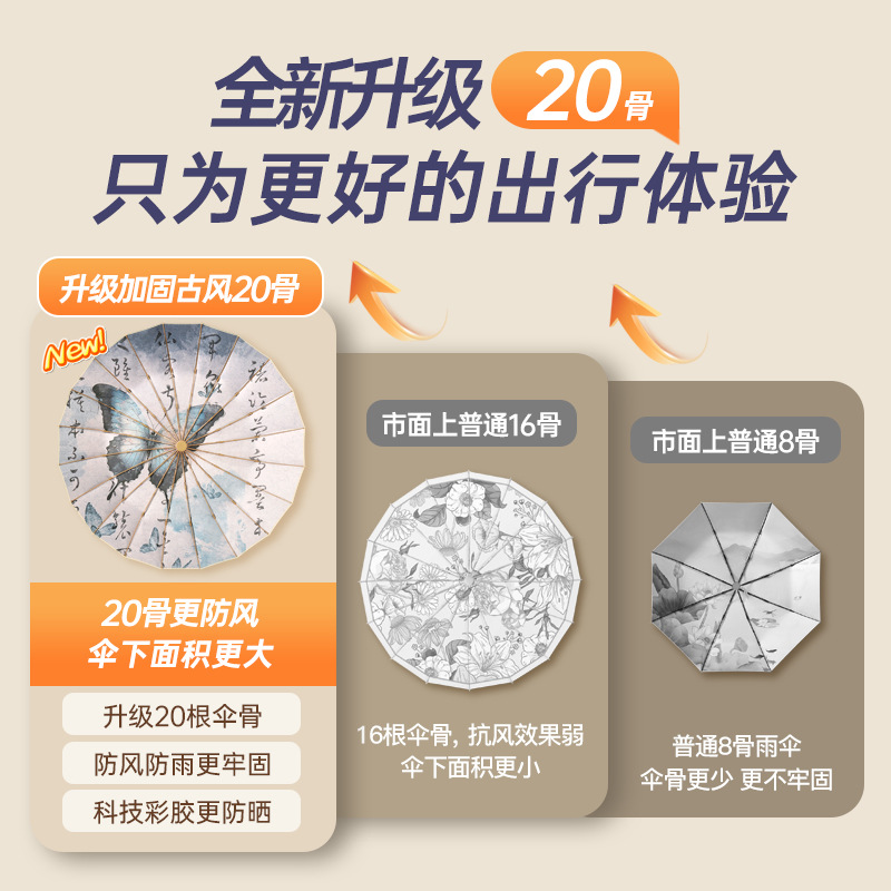 20骨三折遮阳伞新款彩胶防晒女生防紫外线法式复古晴雨两用太阳伞