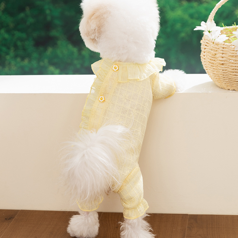春夏款花边网纱狗狗衣服舒适透气四脚衣家居服泰迪猫咪宠物包肚衣